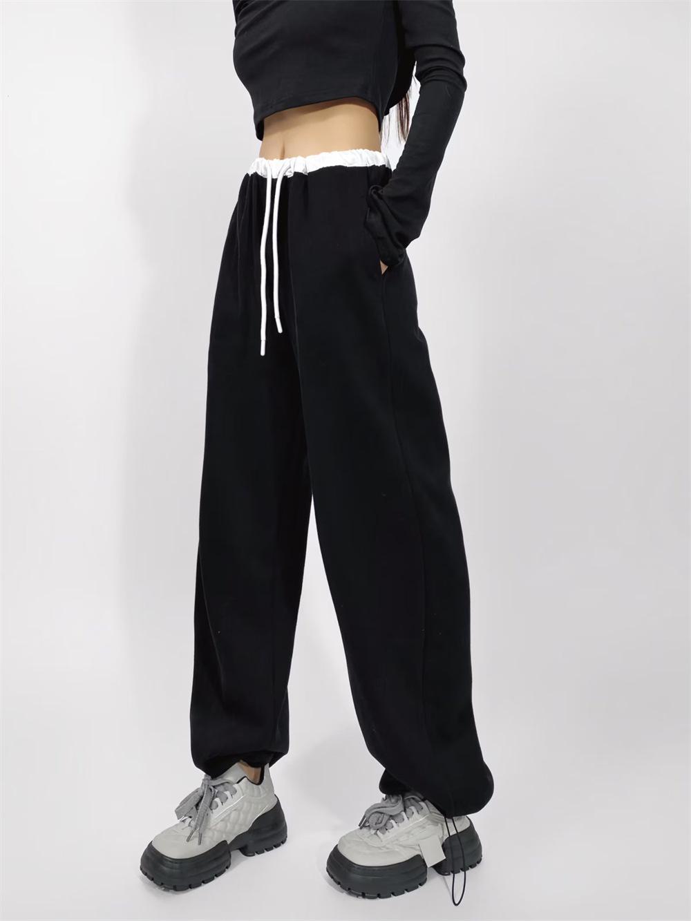 Pantalones deportivos YPFF de cintura elástica a juego con el color para mujer, pantalones deportivos de otoño e invierno, nuevos pantalones anchos y sueltos con cintura alta y cordón ajustable