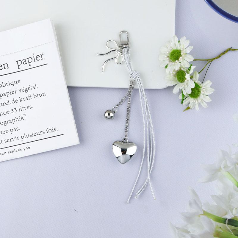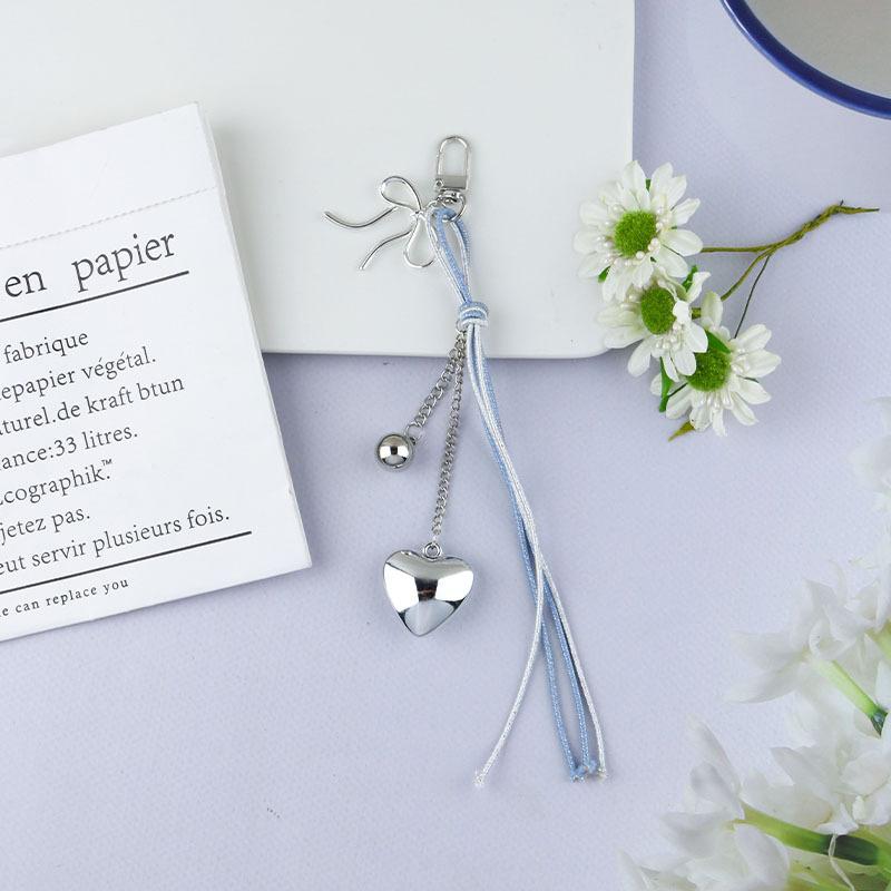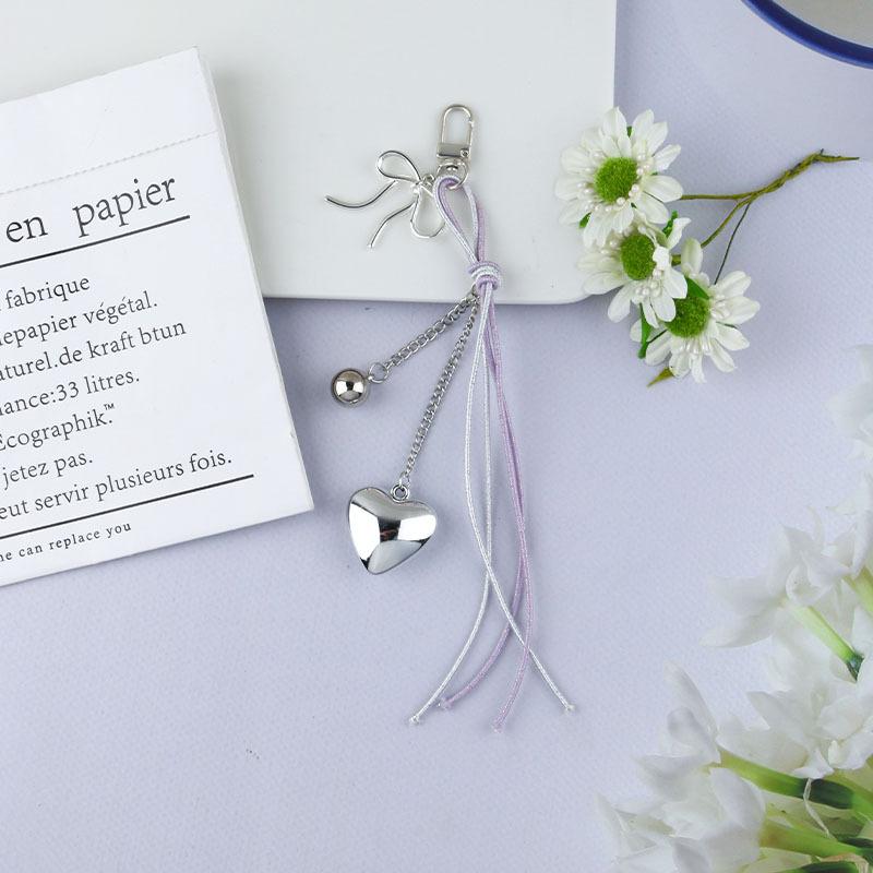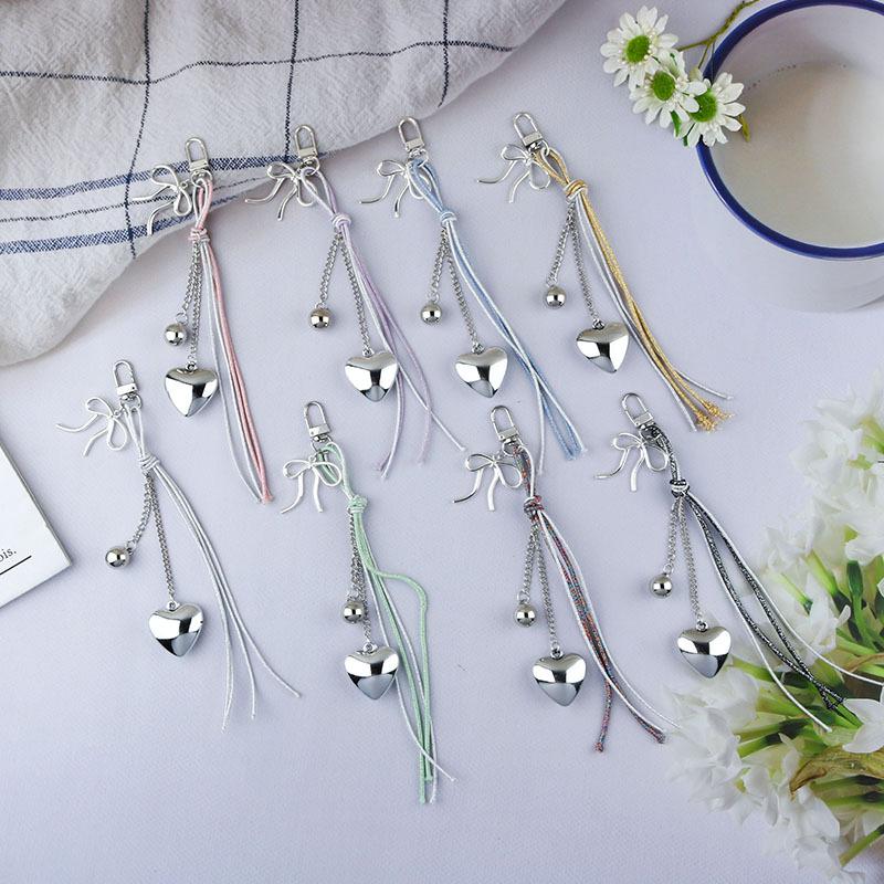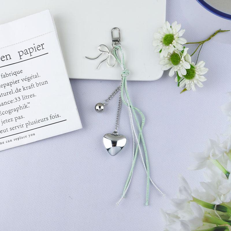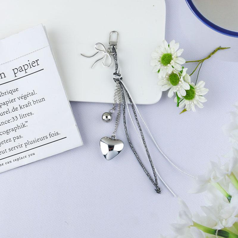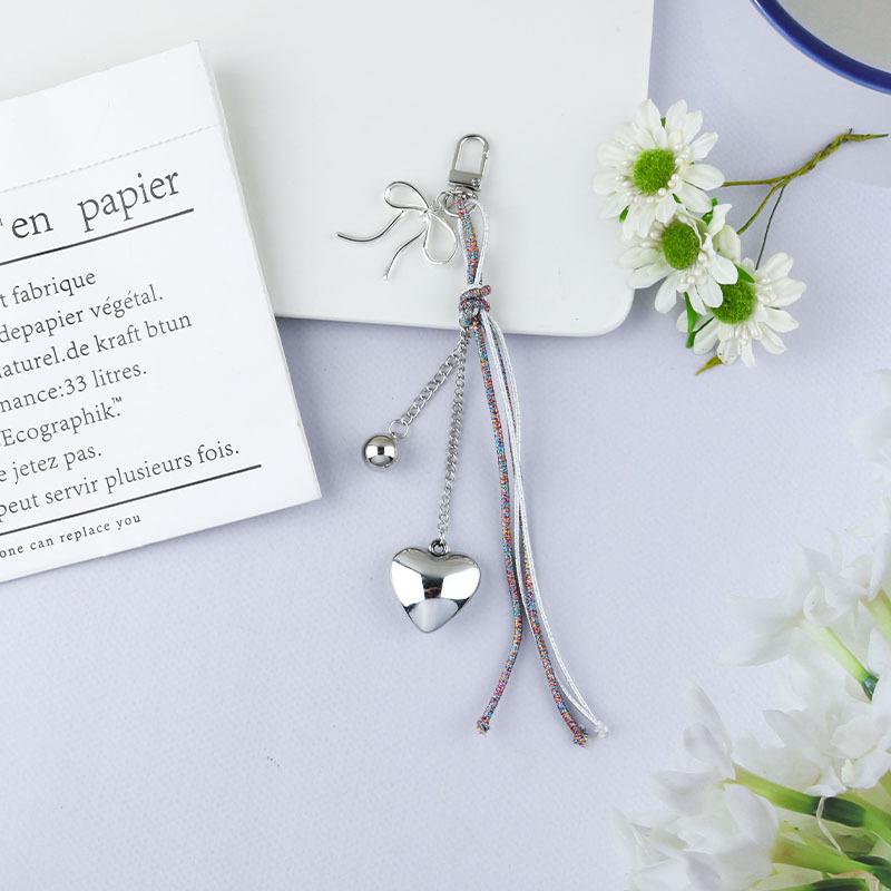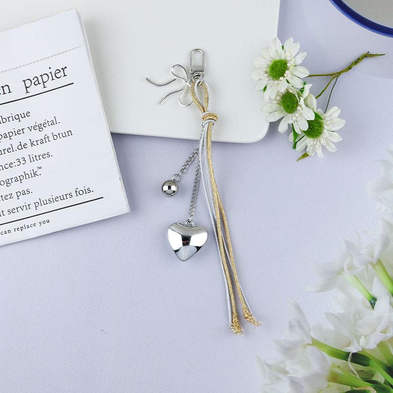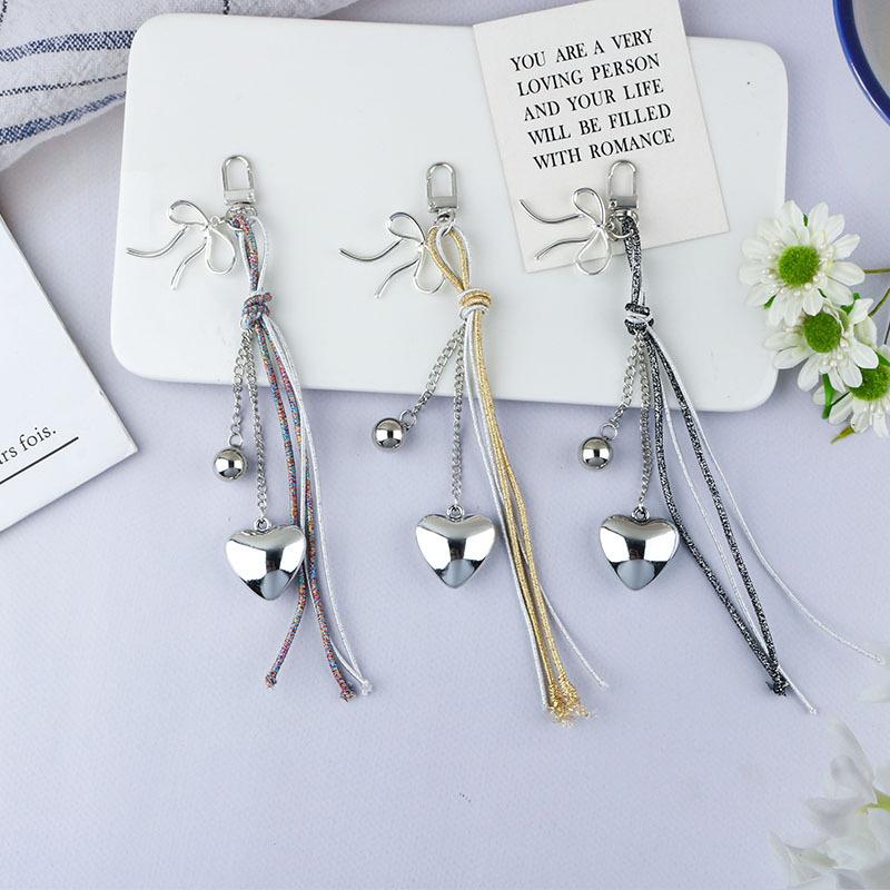 Llavero con colgante de aleación de estilo coreano con lazo de goma y cadena para colgar en pareja, decoración para funda de teléfono móvil