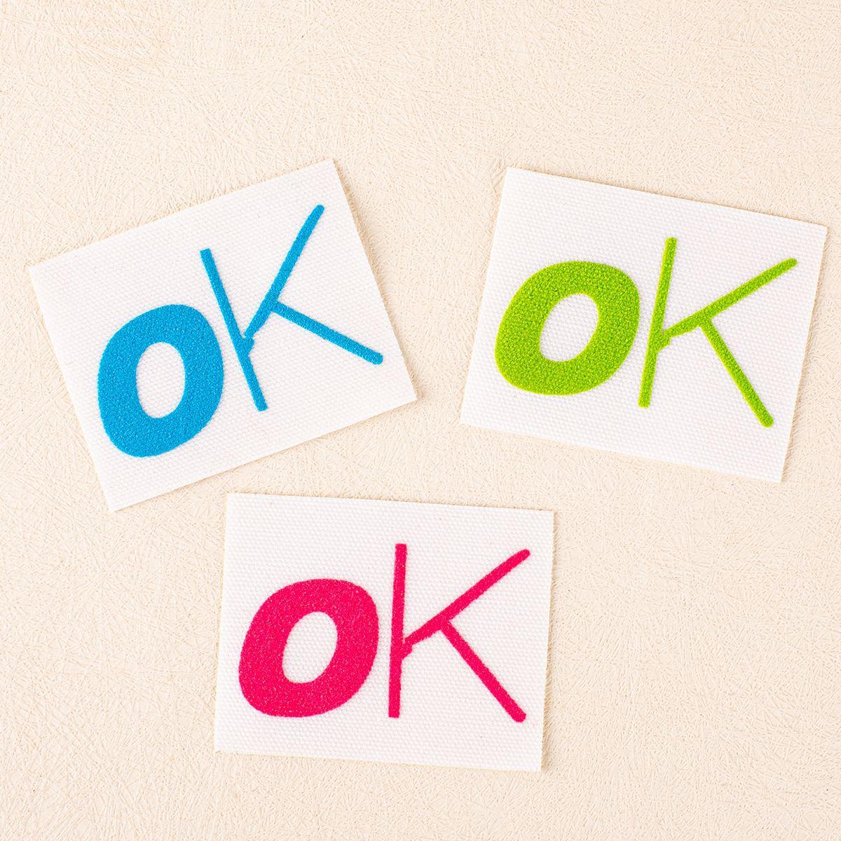 Etiqueta de tela con impresión de letras tridimensionales con nueva flor OK, accesorios de ropa, ropa infantil, abrigo, calcetines, sombrero, etiqueta de tela decorativa