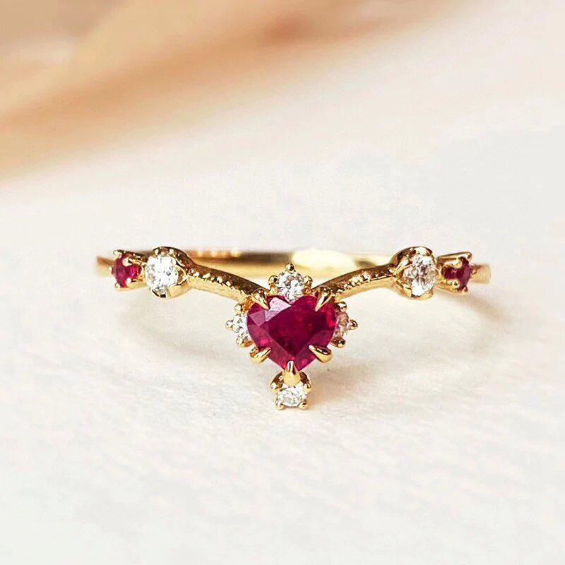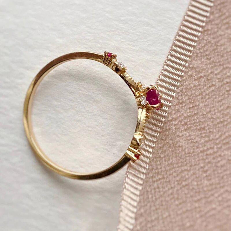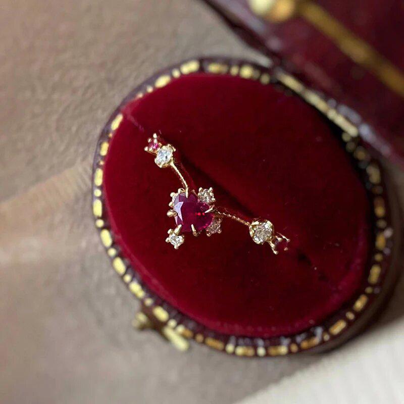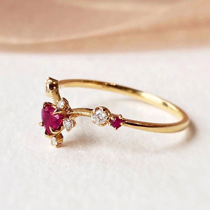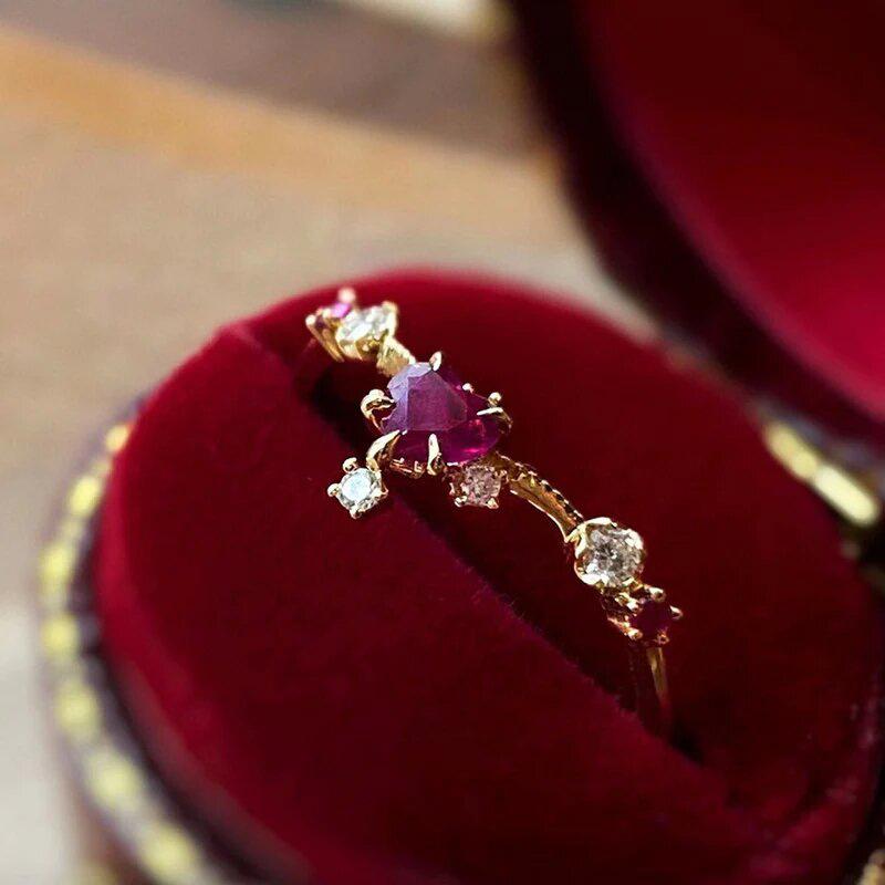 Nuevo anillo con microincrustaciones de Cao Shi para mujer, dulce anillo de estilo francés con diseño de flor, anillo de princesa con forma de amor de alta calidad.