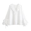 Diseño de Gasa Blanca Cuello Redondo Manga Campana con Volantes Camisa de Mujer 2025 Moda Nueva de Primavera y Verano Europea y Americana Mujer
