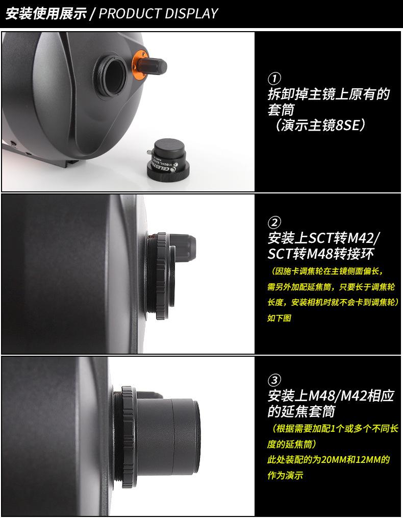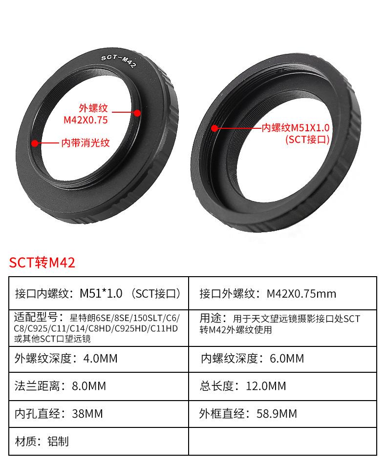 Anillo adaptador de conversión de rosca externa para fotografía de telescopio astronómico SCT a M48/SCT a M42