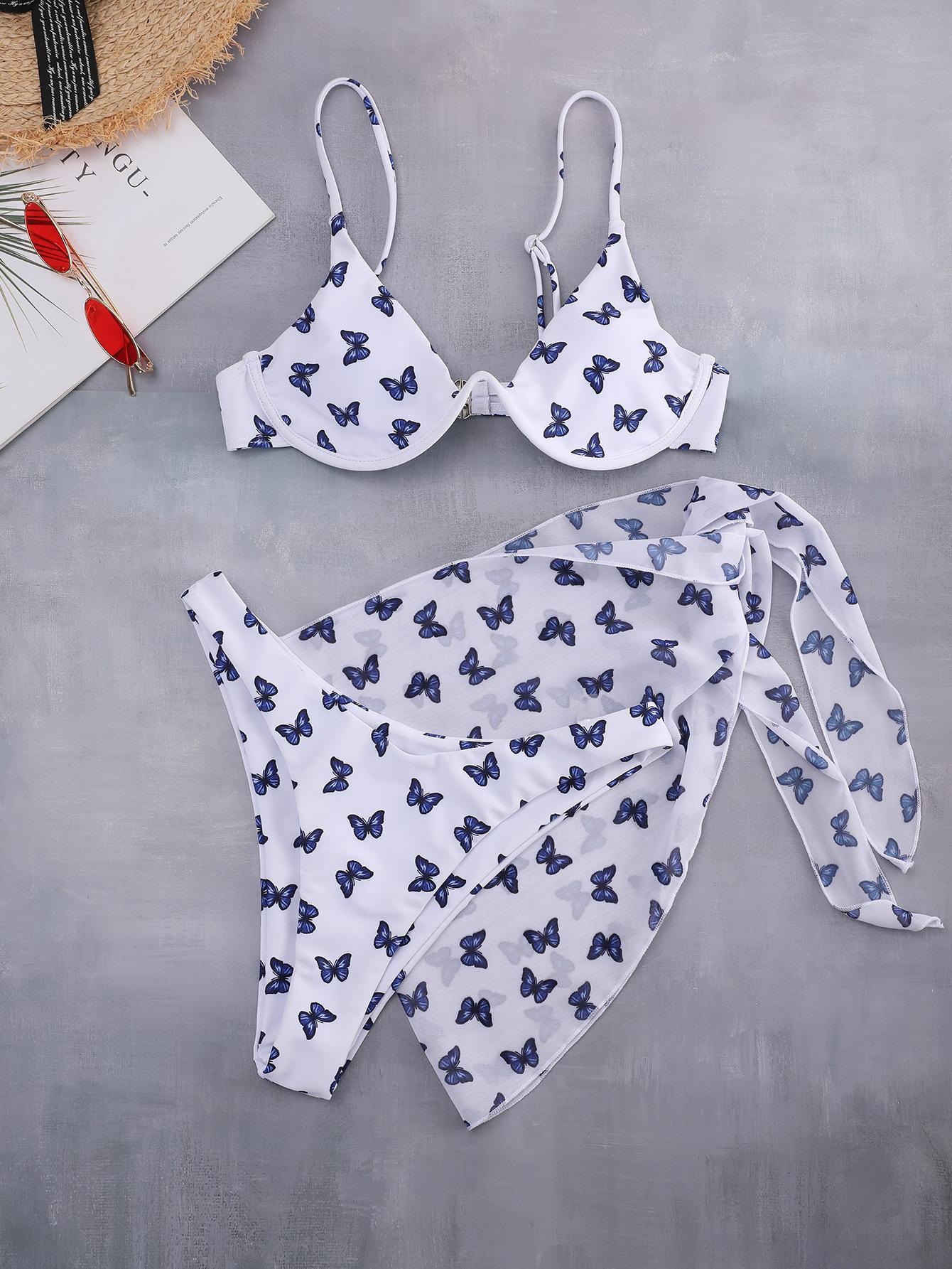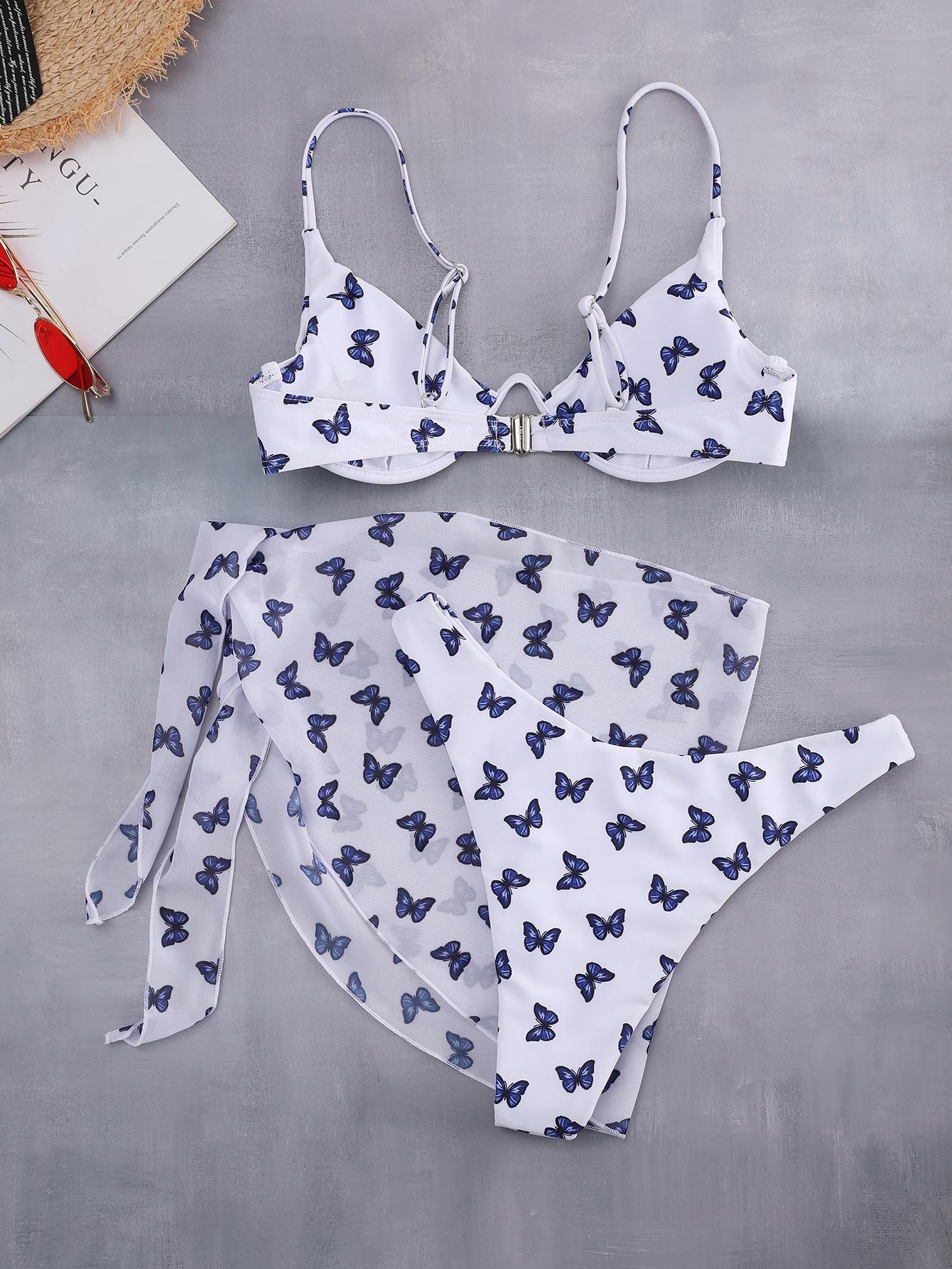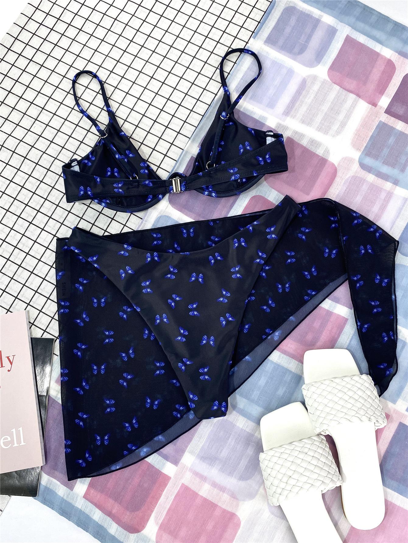 Bañador de comercio exterior europeo y americano de AliExpress Amazon, bikini sexy de tres piezas con fruncido y soporte de acero de mariposa 9943