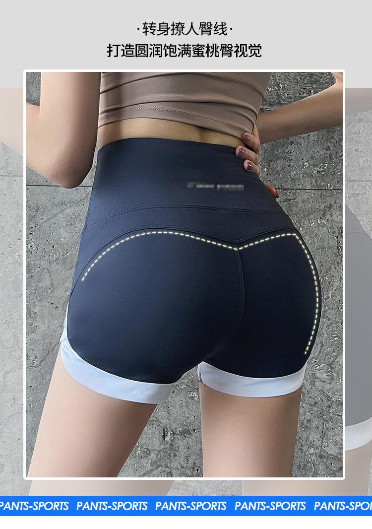 Pantalones cortos deportivos ajustados de yoga para mujer, de verano, con cintura alta, finos y sin costuras, color melocotón, con tres puntos en la cadera, para fitness, con contraste exterior.