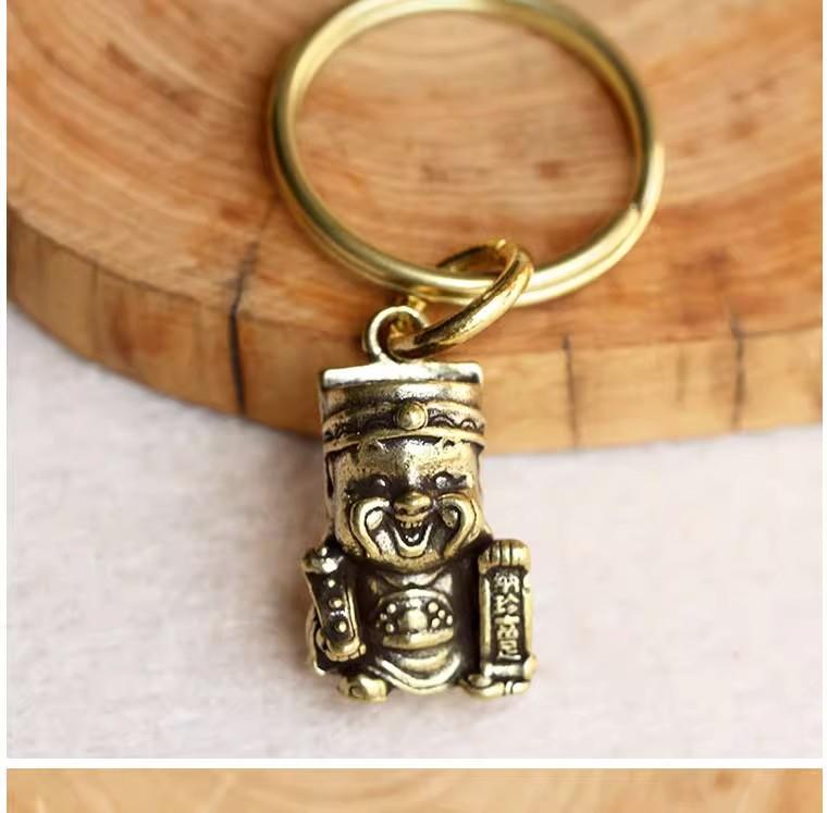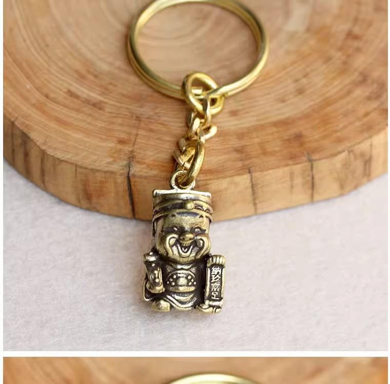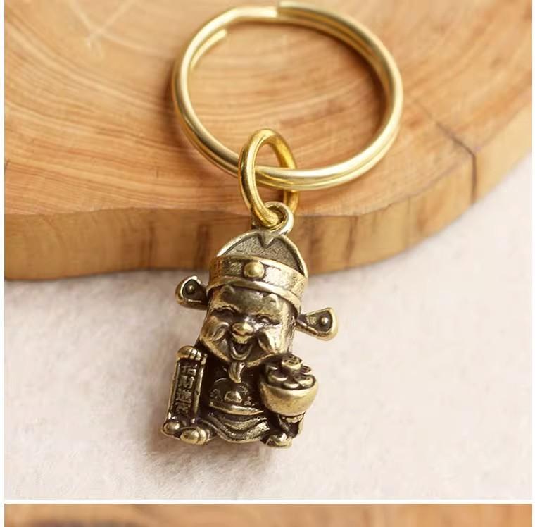 Llavero de Latón Dios de la Riqueza Quíntuple Cobre Hecho a Mano Dios de la Riqueza Pequeño Colgante para Atraer Riqueza Dios de la Riqueza Colgante Llavero para Llaves de Coche
