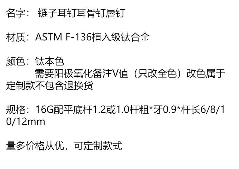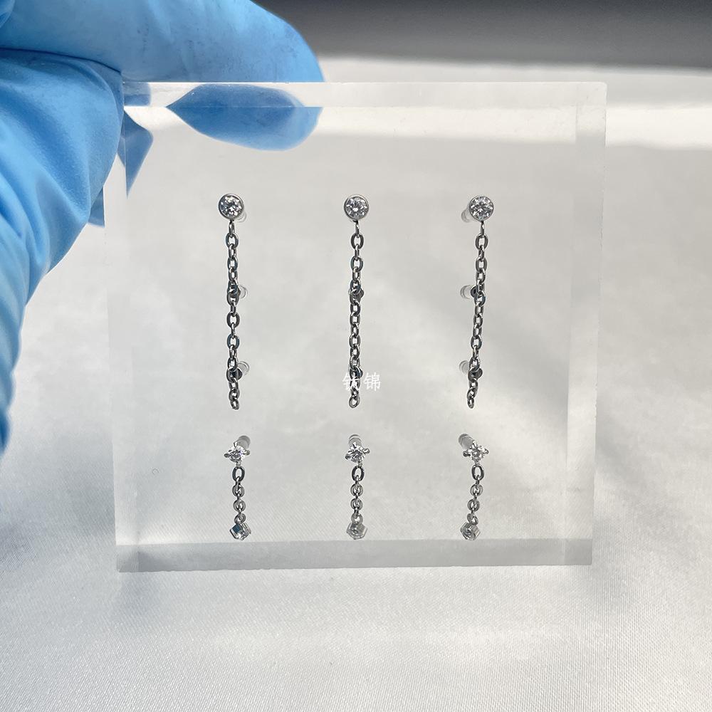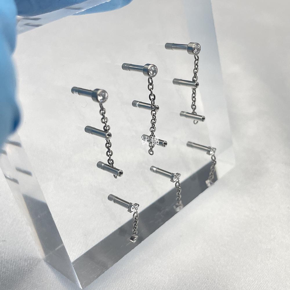Titanio brocado perforación F-136 aleación de titanio colgante cadena aretes de circón uñas labiales 16g rosca interna aretes muy pulidos