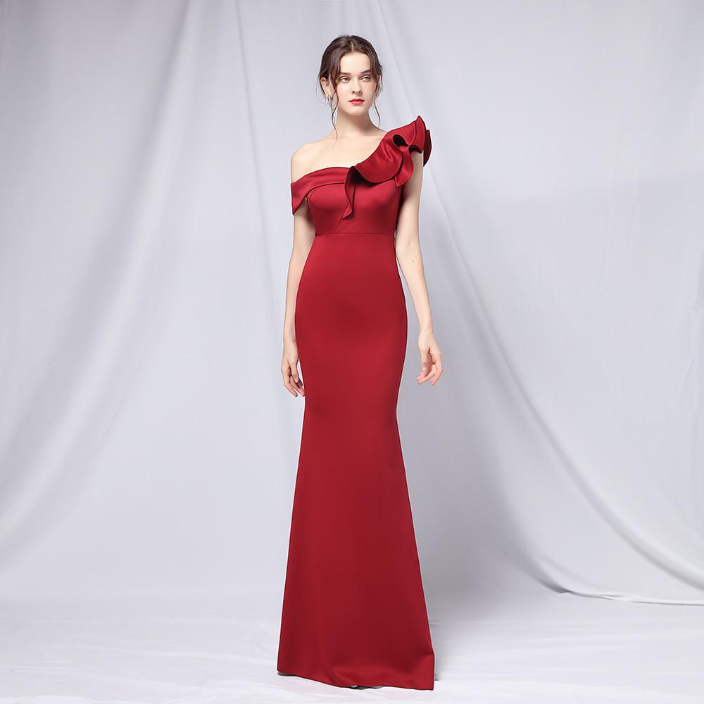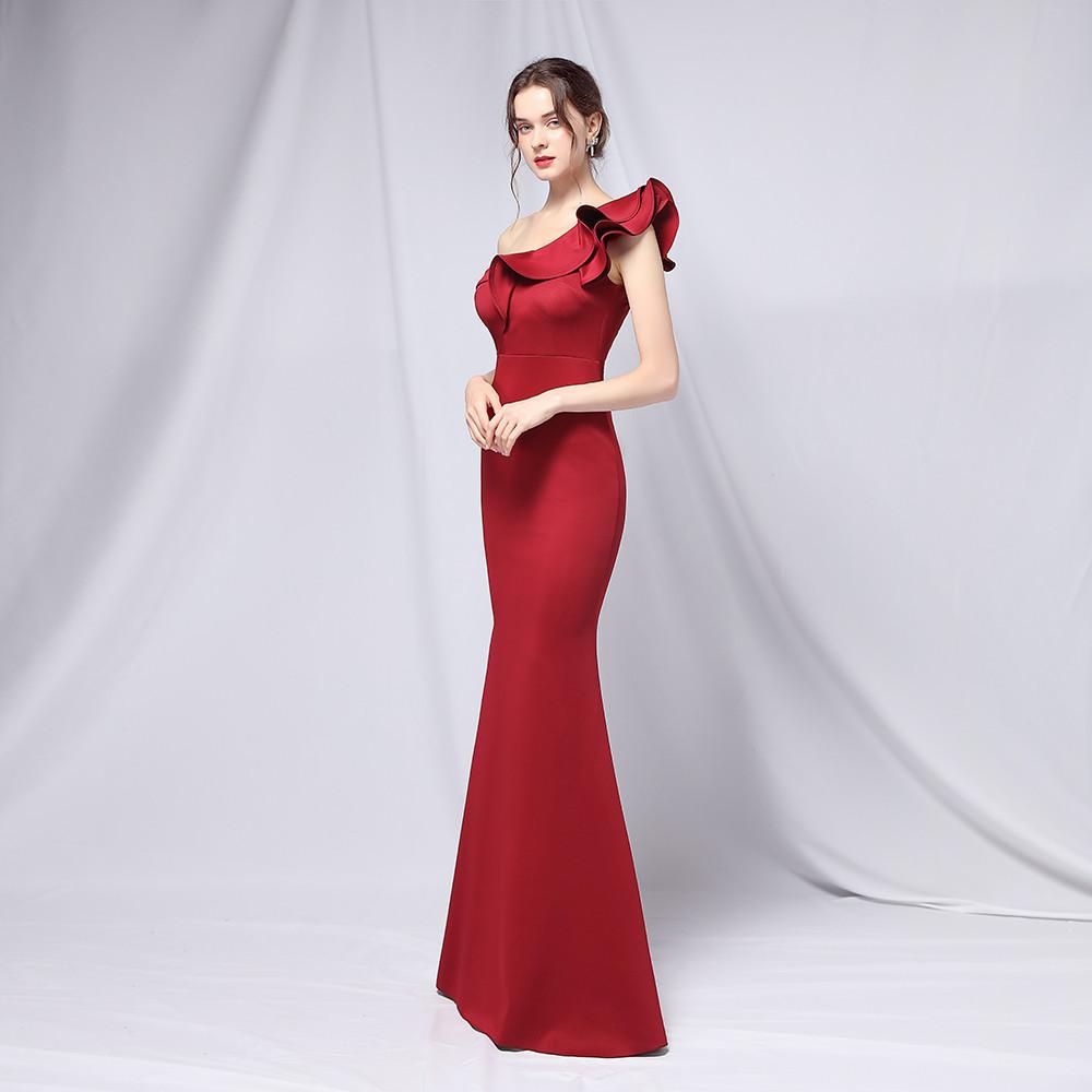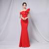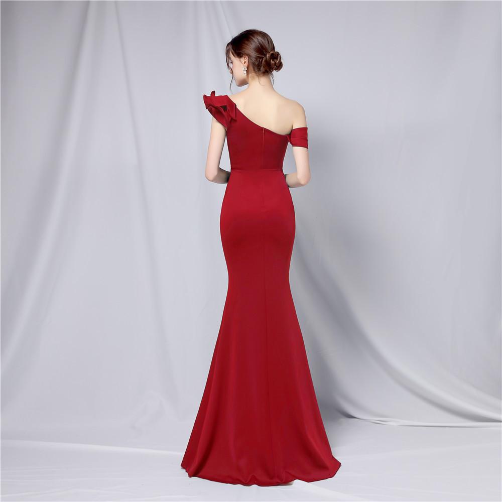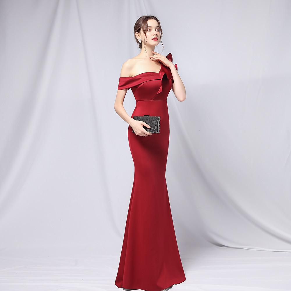 Vestido de brindis para novia con hombros descubiertos 2021 nuevo moda coreana largo sexy cola de pez vestido de noche mujeres rojo ajustado