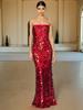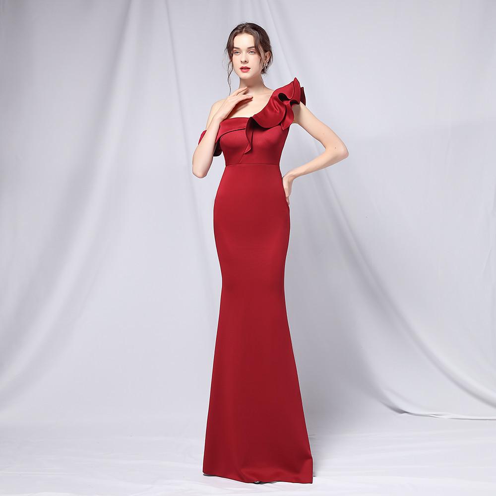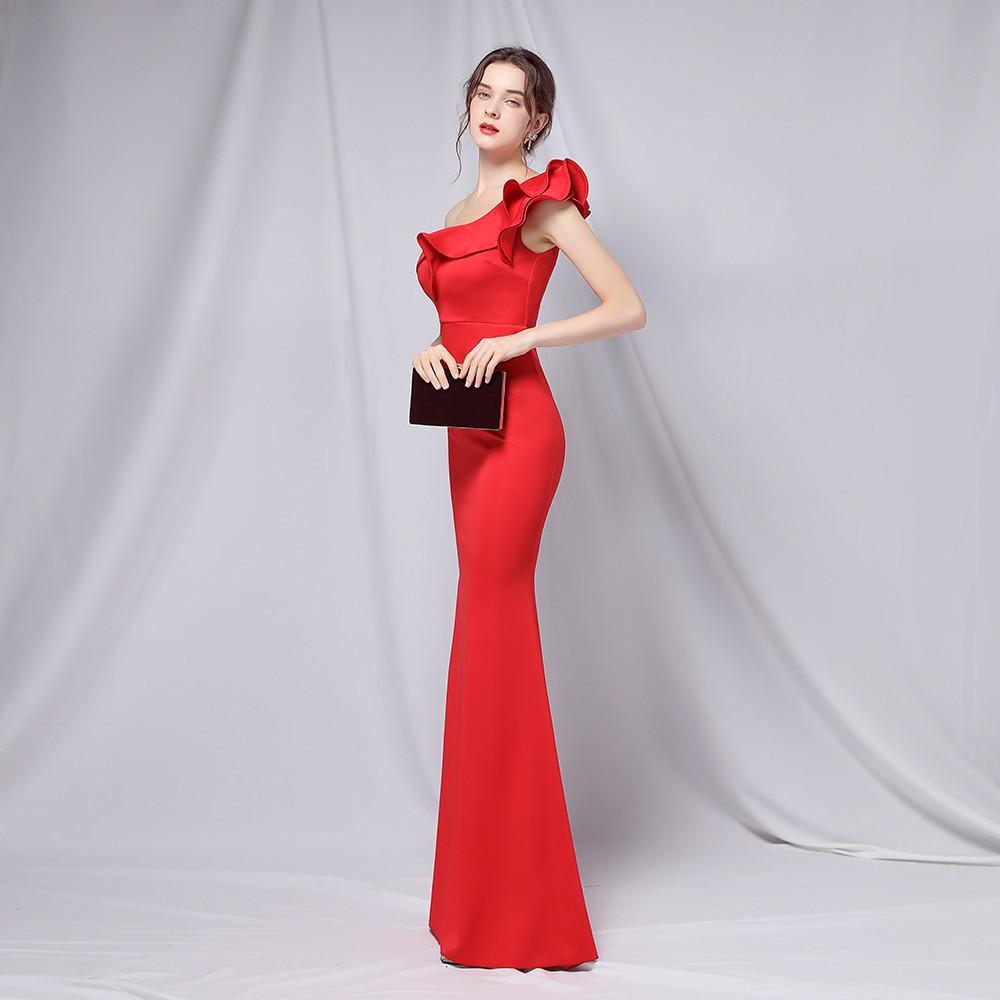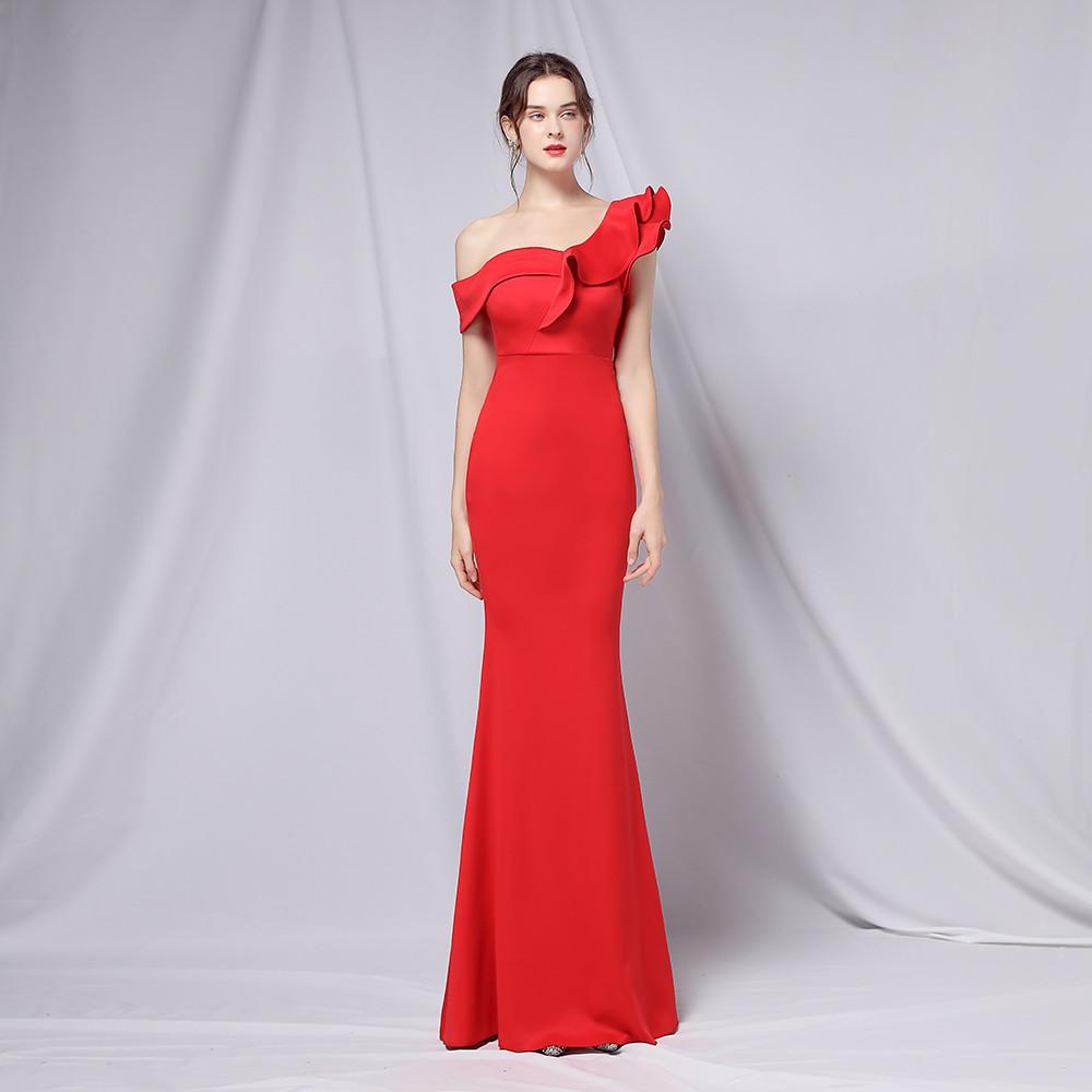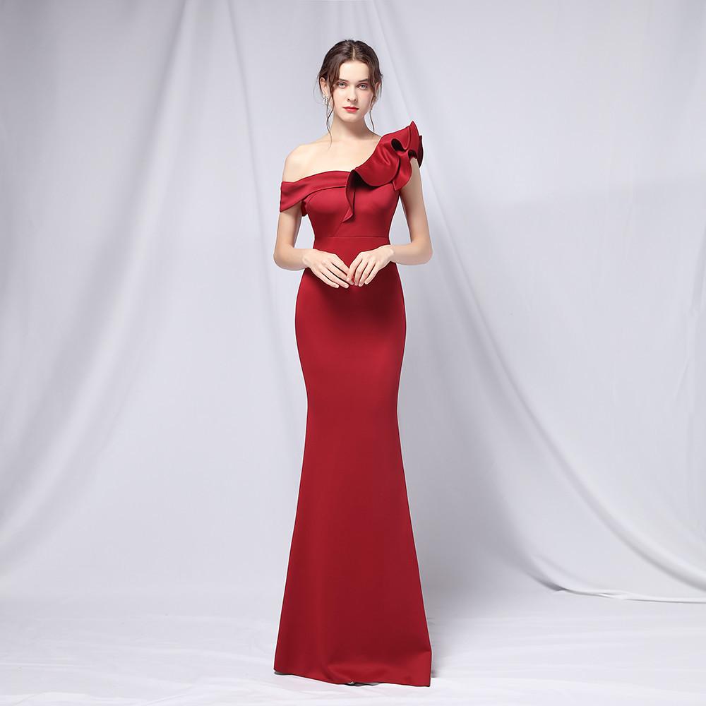 Vestido de brindis para novia con hombros descubiertos 2021 nuevo moda coreana largo sexy cola de pez vestido de noche mujeres rojo ajustado