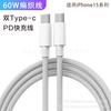 Cable de carga de 60 W para Apple 15, cable de datos trenzado doble tipo C, línea de carga rápida iPhone 16 Pro, doble USB-C