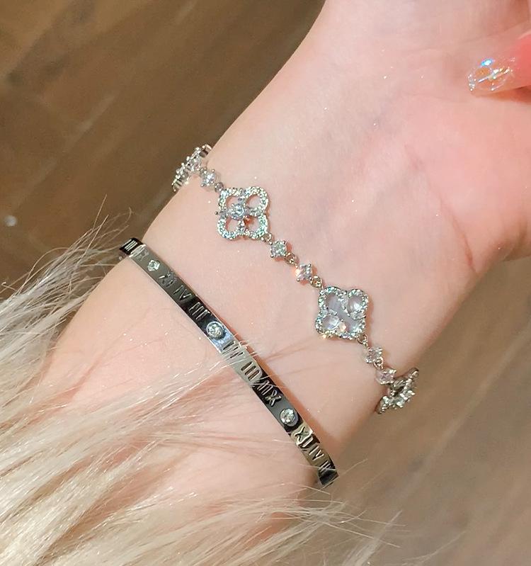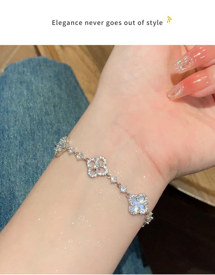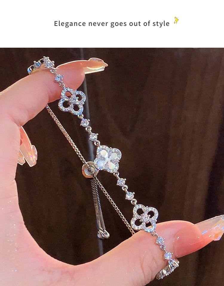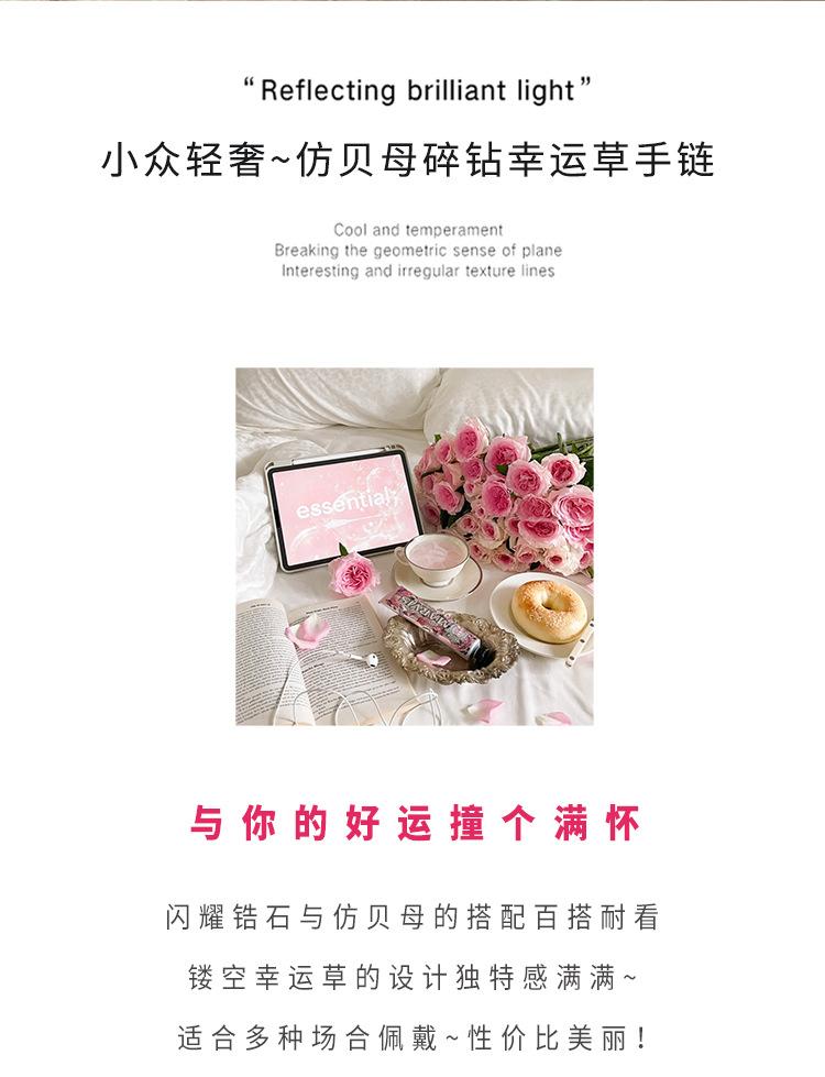 Pulsera de Trébol de Cuatro Hojas de Imitación Nácar de Alta Gama para Mujer, Pulsera de Trébol de la Suerte, Pulsera Nicho de Lujo Ligero, Exquisita Joyería de Mano