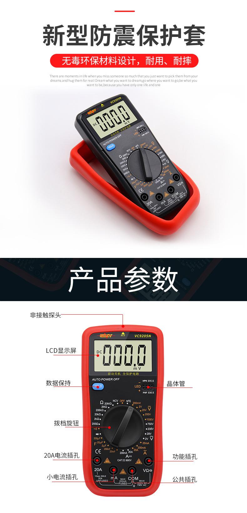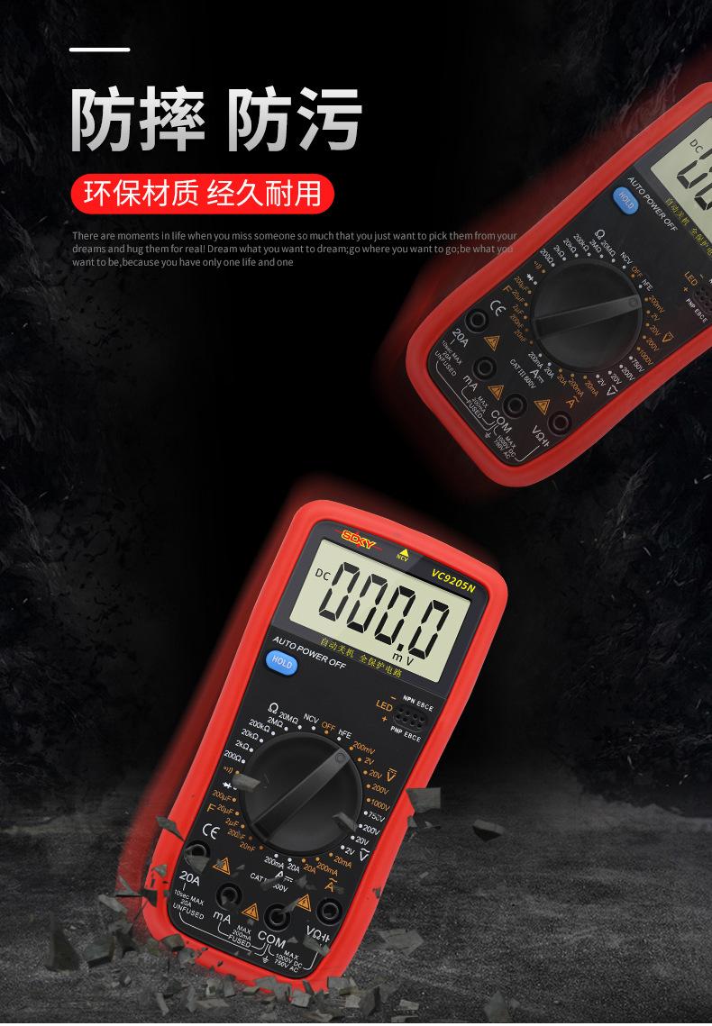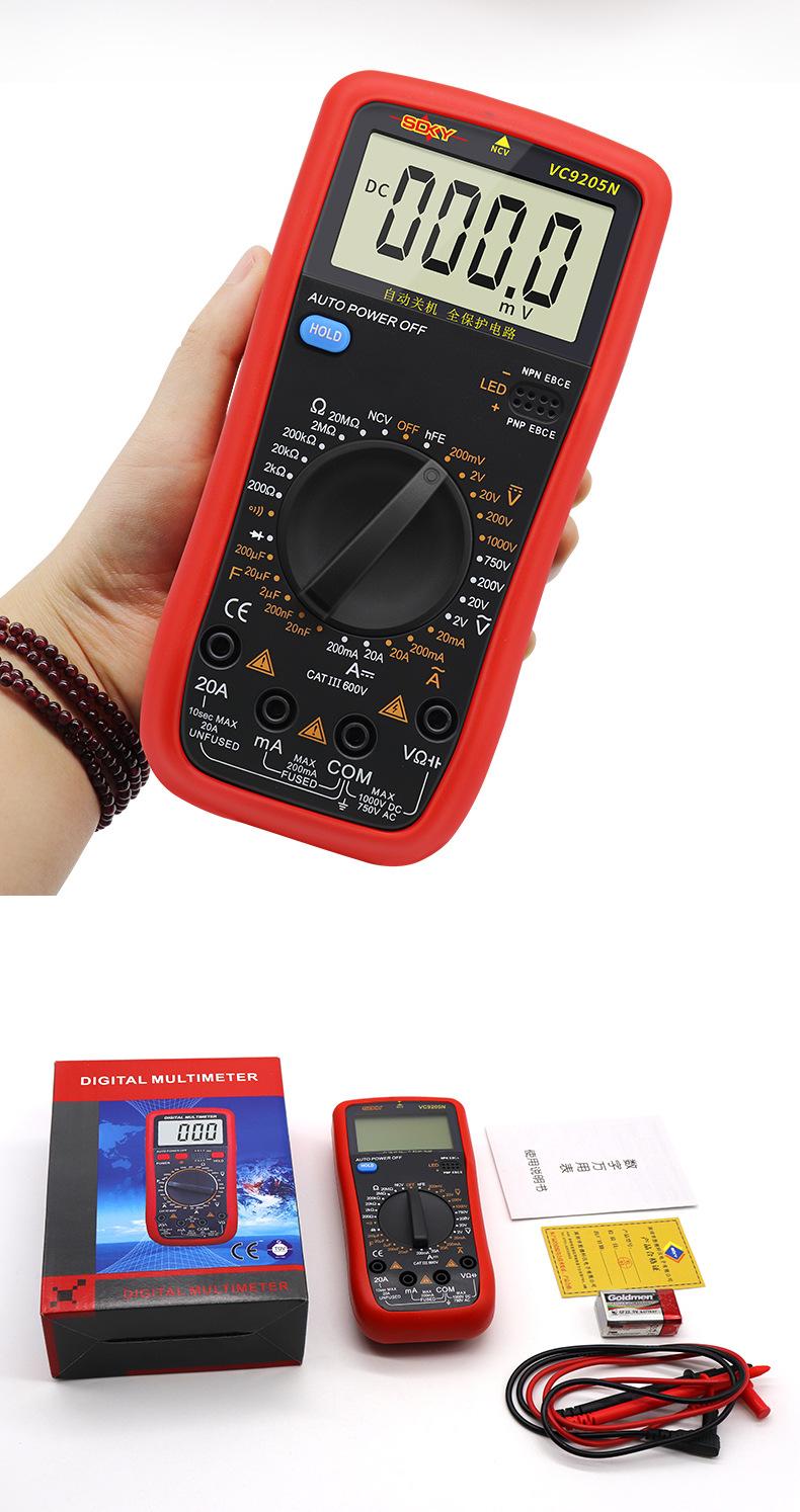 Multímetro electrónico de alta precisión DT9205N, medidor digital anti-quemaduras con apagado automático