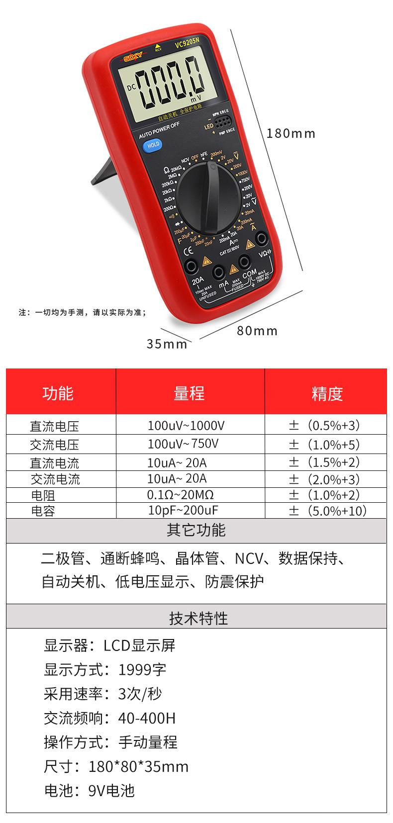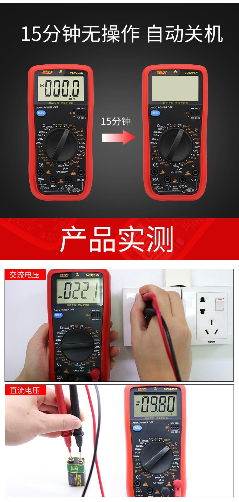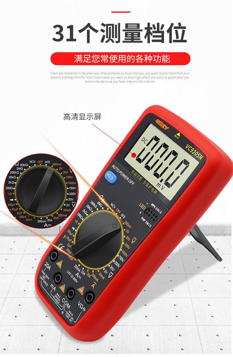 Multímetro electrónico de alta precisión DT9205N, medidor digital anti-quemaduras con apagado automático