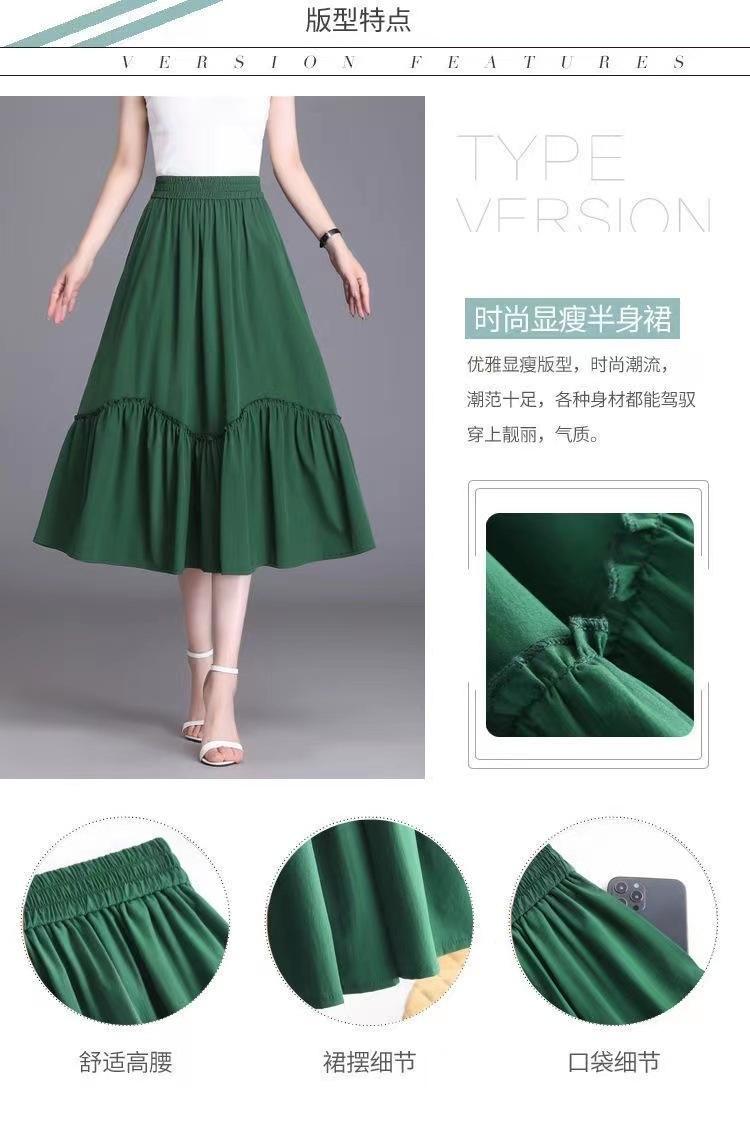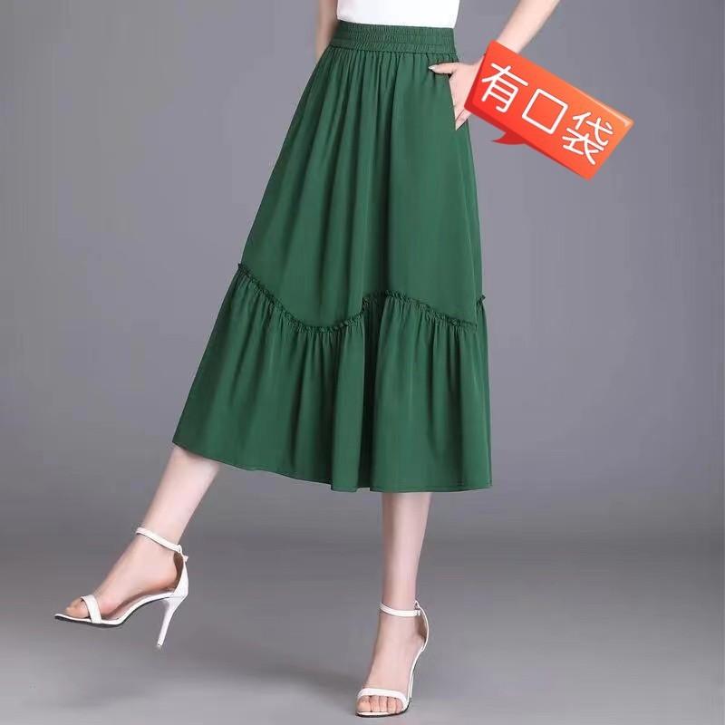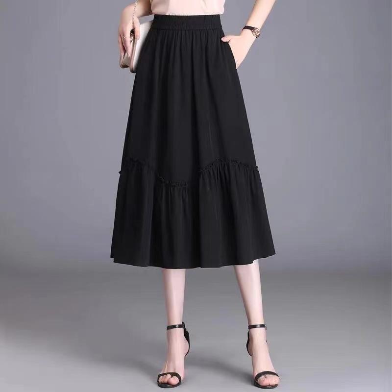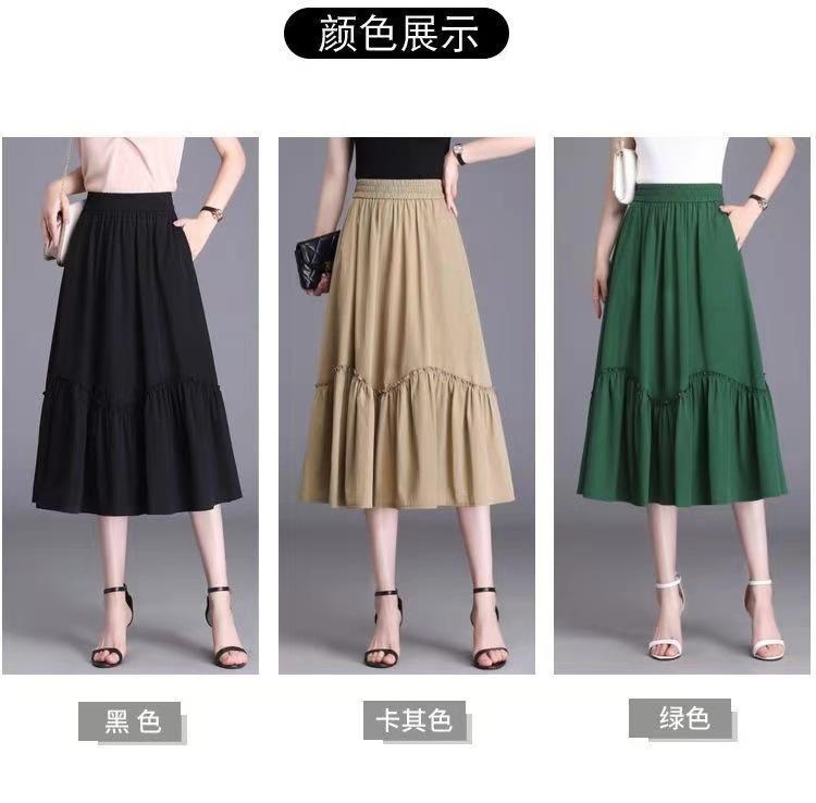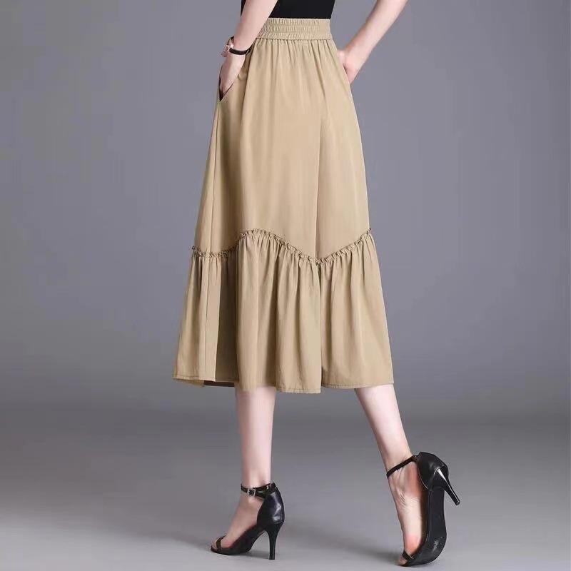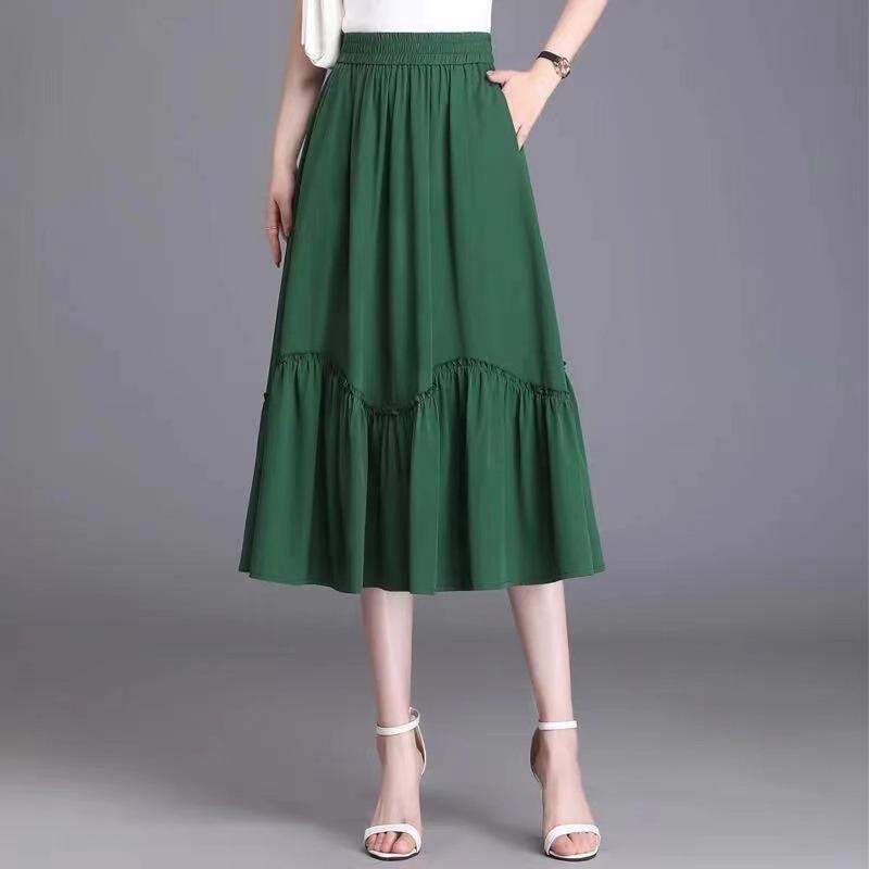 Falda de verano de media longitud, fina, plisada, de una sola capa, de corte A, para madres gorditas, adelgazantes, de cintura alta, falda grande.
