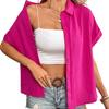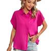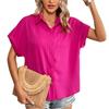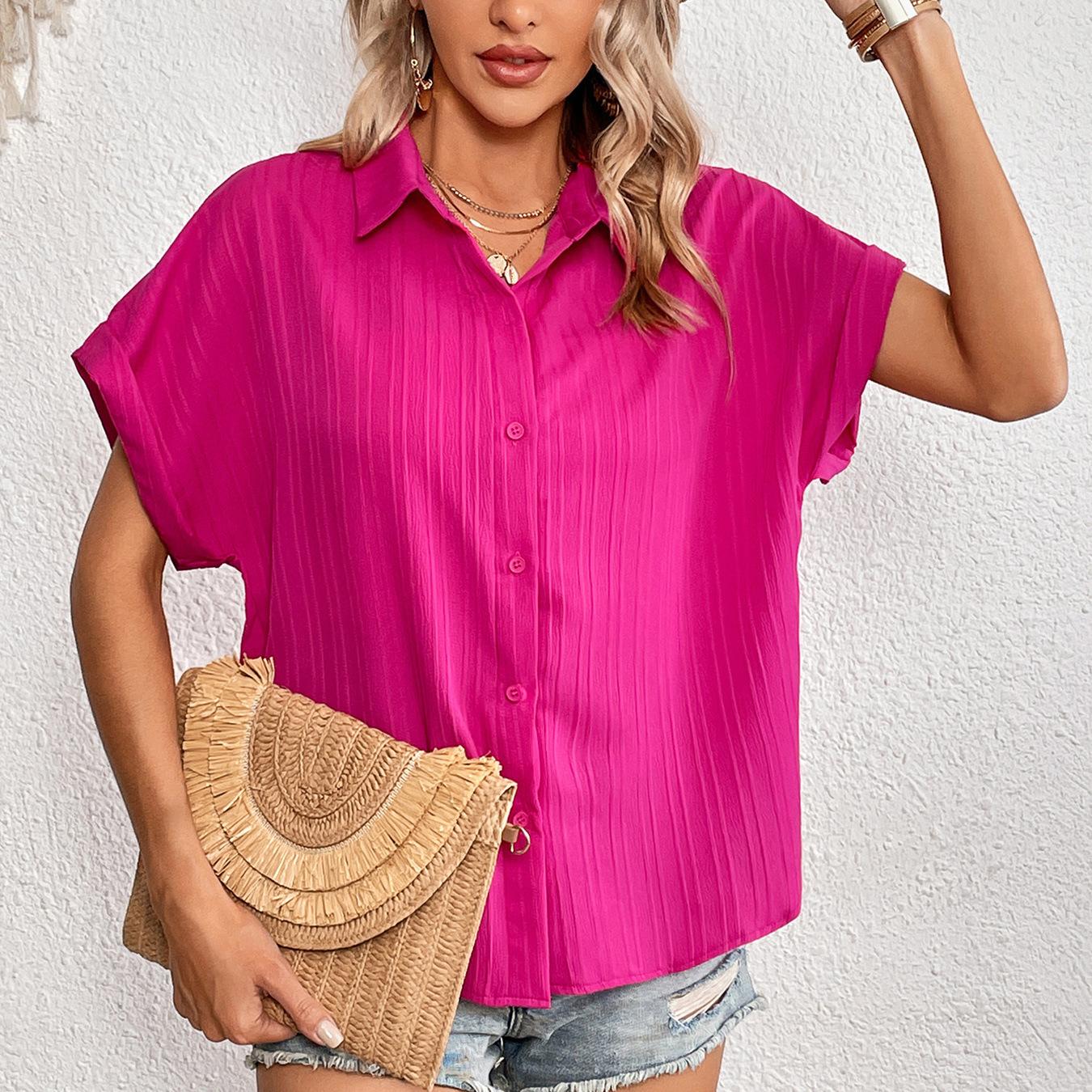 Ropa de Mujer de Exportación Transfronteriza Europea y Americana 2025 Verano Casual Suelta Cuello en V Camisa Abotonada Color Puro Camiseta de Manga Corta Top