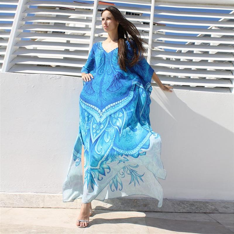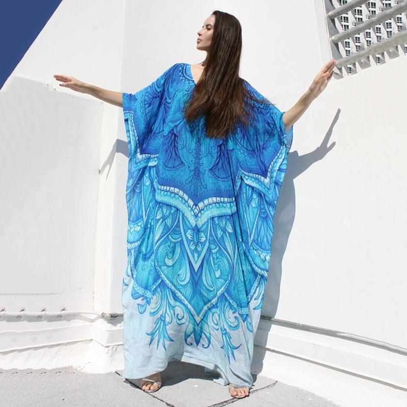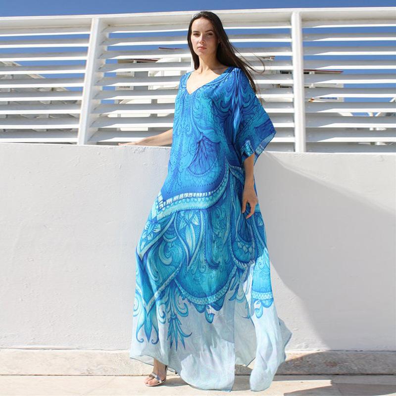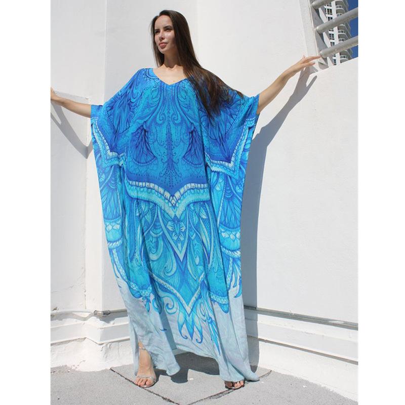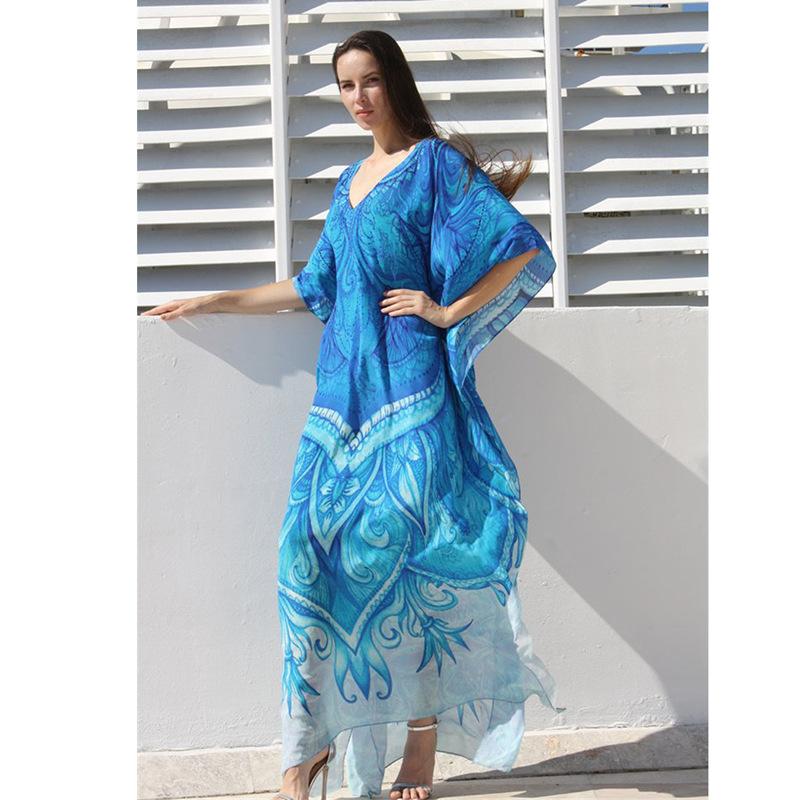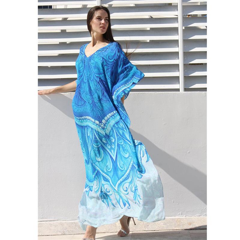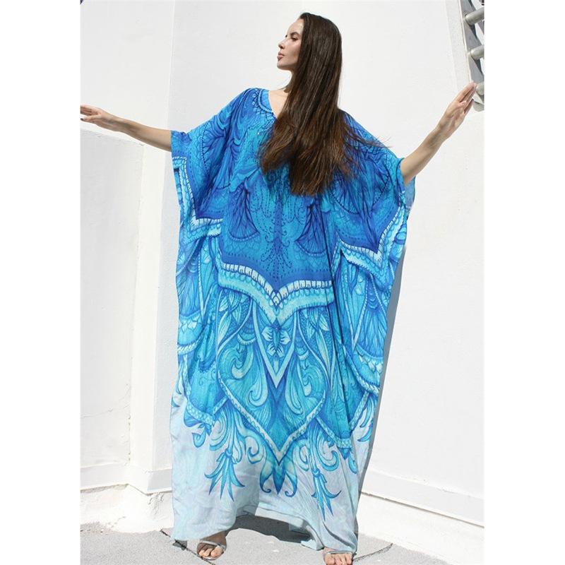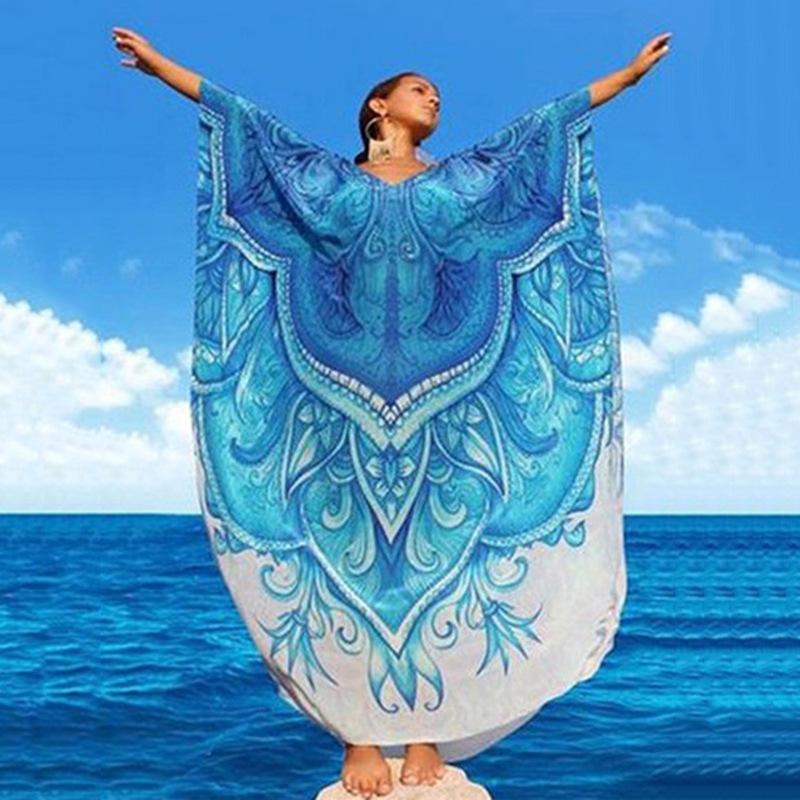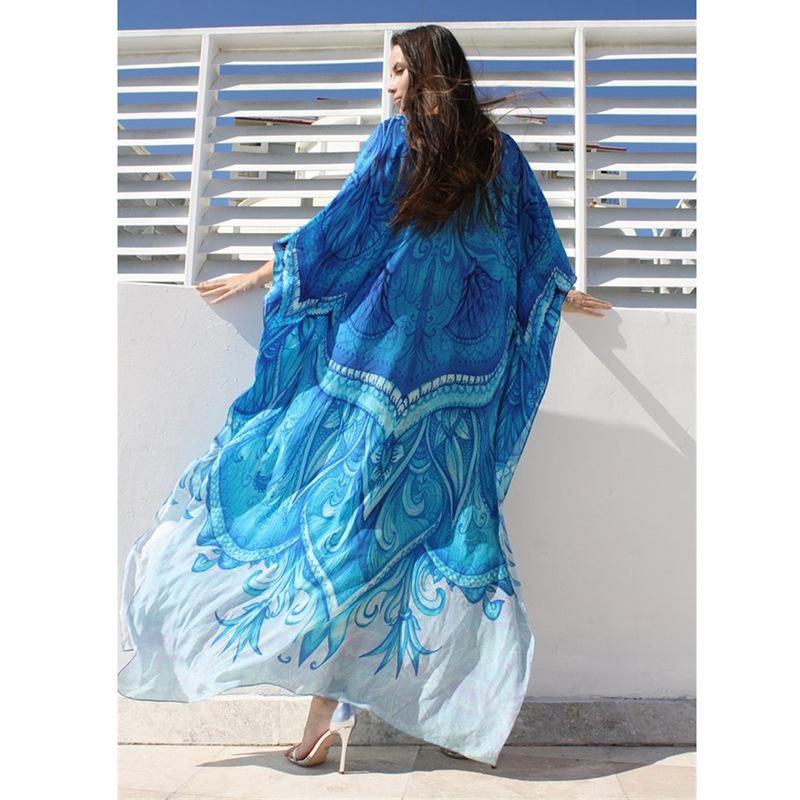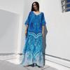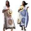 Venta al por Mayor Cobertura de Playa Estampada Transfronteriza Estilo Bata Holgada Vacaciones Protección Solar Camisa Vestido Cobertura para Bikini Traje de Baño