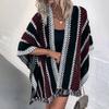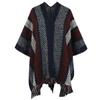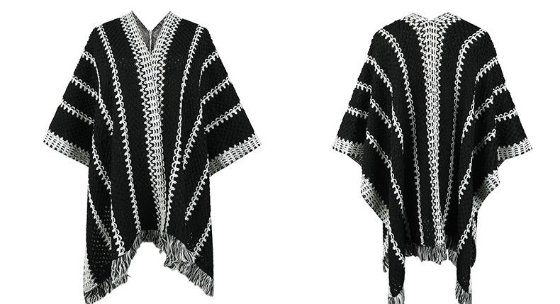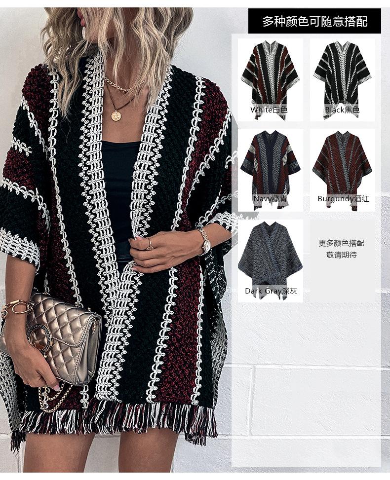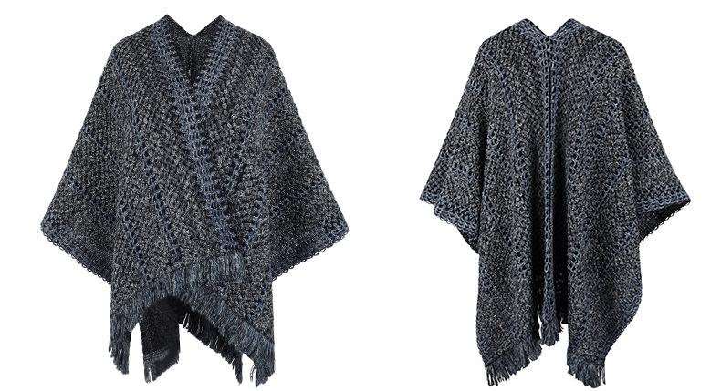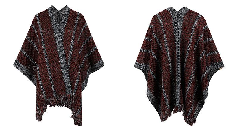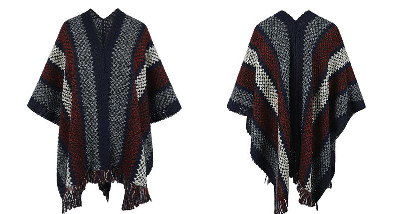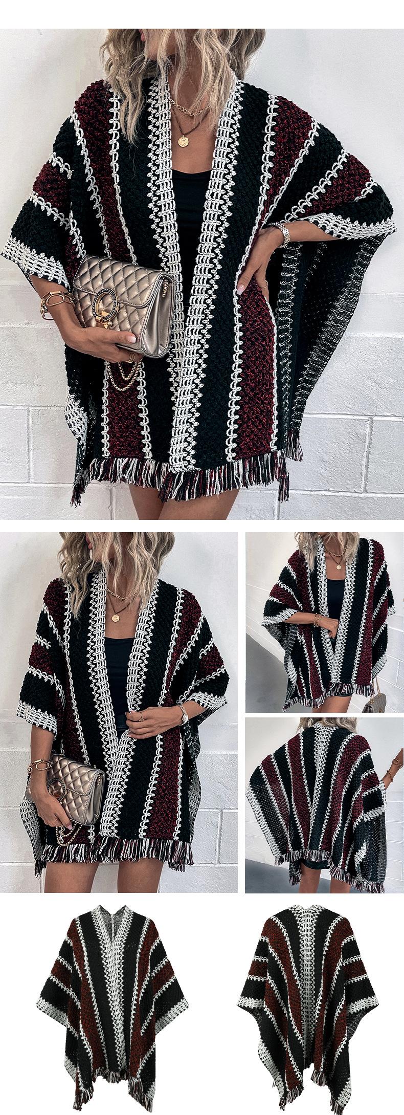 Bufanda tipo capa con borlas y contraste de color lluvia Mao Mao para mujer, otoño e invierno 2023, nuevo chal de punto europeo y americano para mujer
