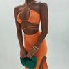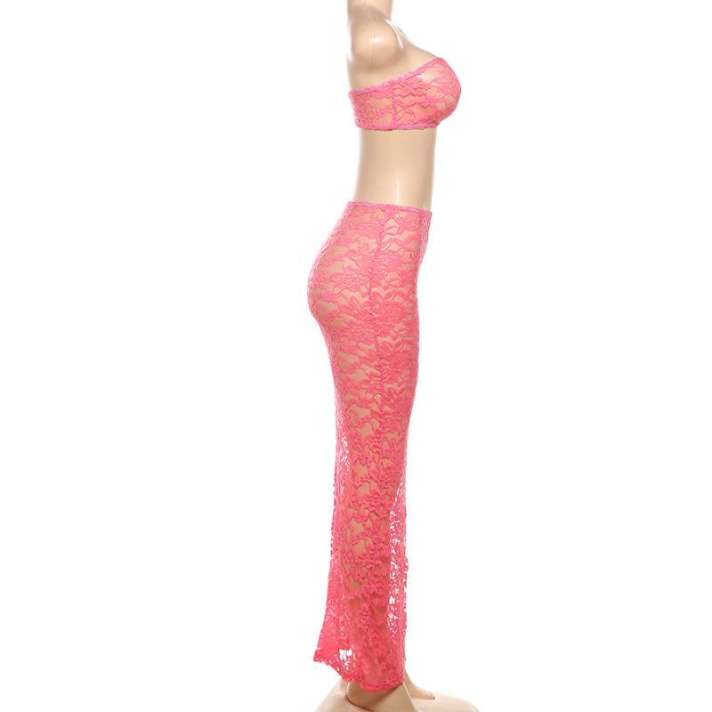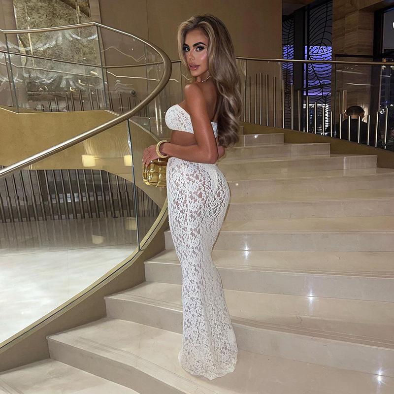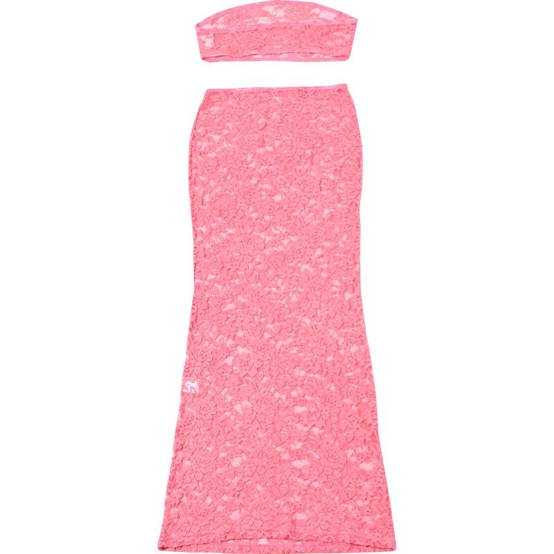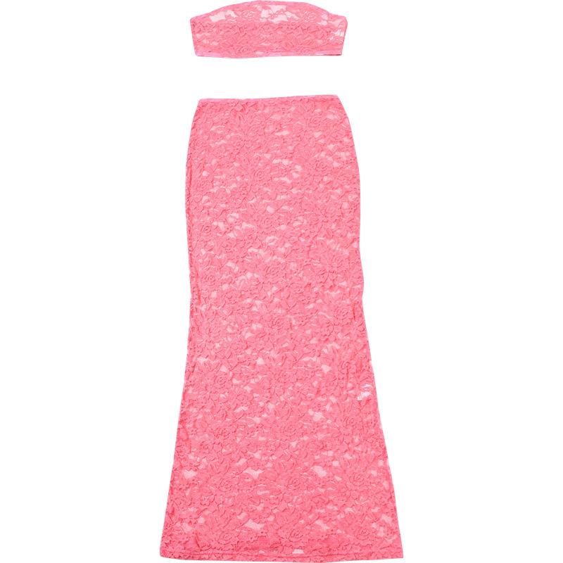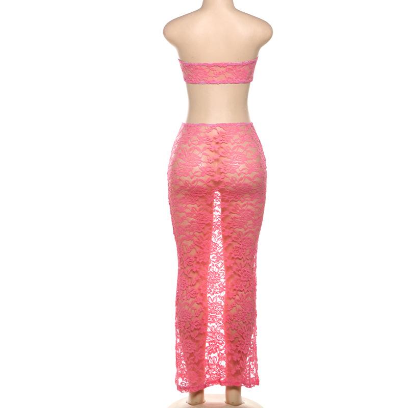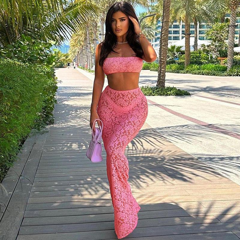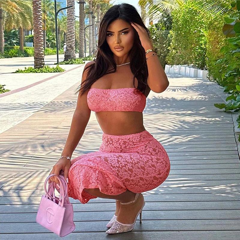 Europeo y Americano 2024 Nuevo Verano Sexy Encaje Tubo Top Chaleco Slim Cintura Alta Recorte Falda Traje para Mujer