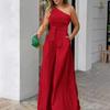 Ropa Europea y Americana 2023 Verano Cuello Inclinado Cordón Asimétrico de un Hombro Cintura Alta Bolsillo Pantalones de Pierna Ancha Mono Casual
