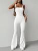 Mono deportivo de estilo europeo y americano para mujer, sexy, con cuello redondo, sin espalda, ajustado, con realce de cadera, color sólido, microtirón, para otoño, 2023