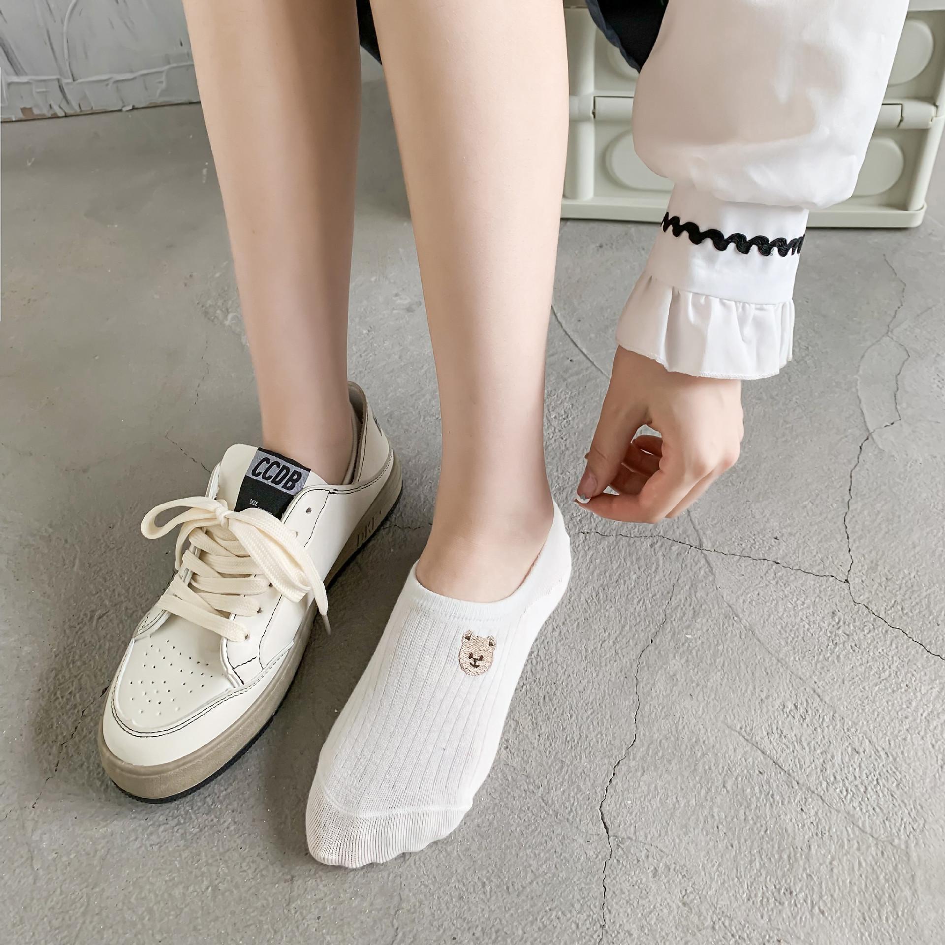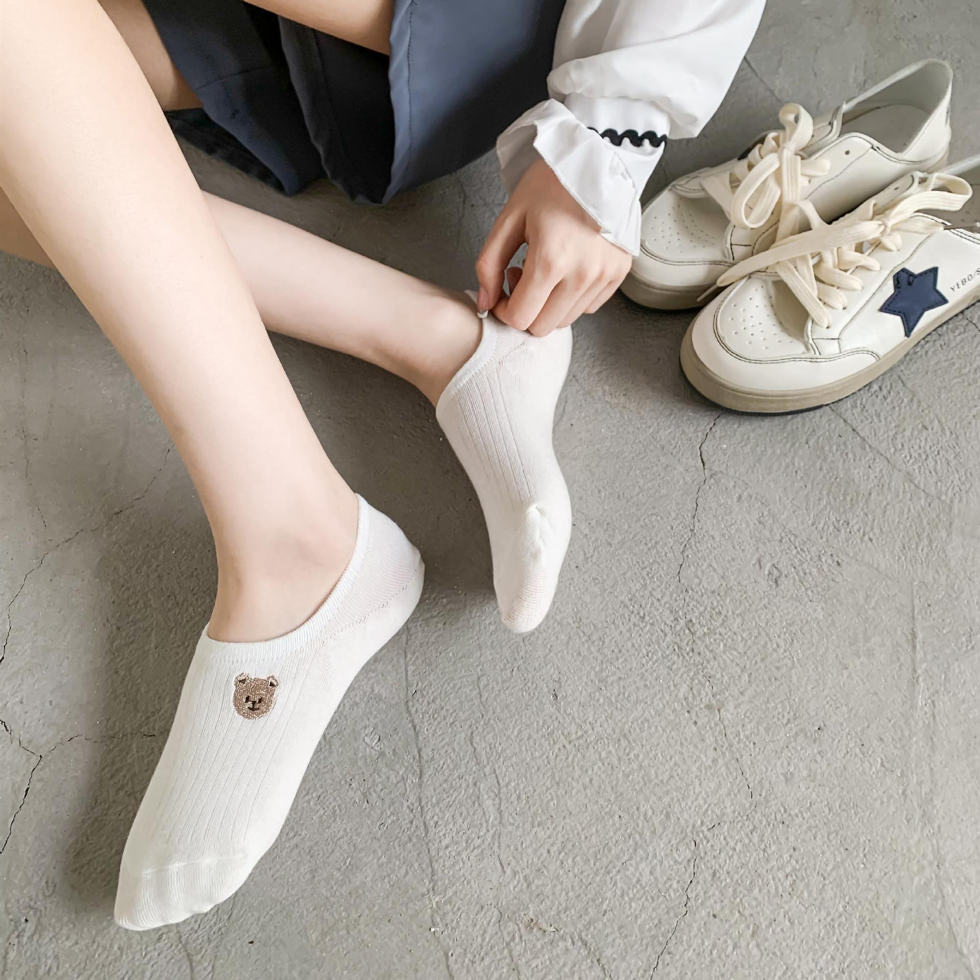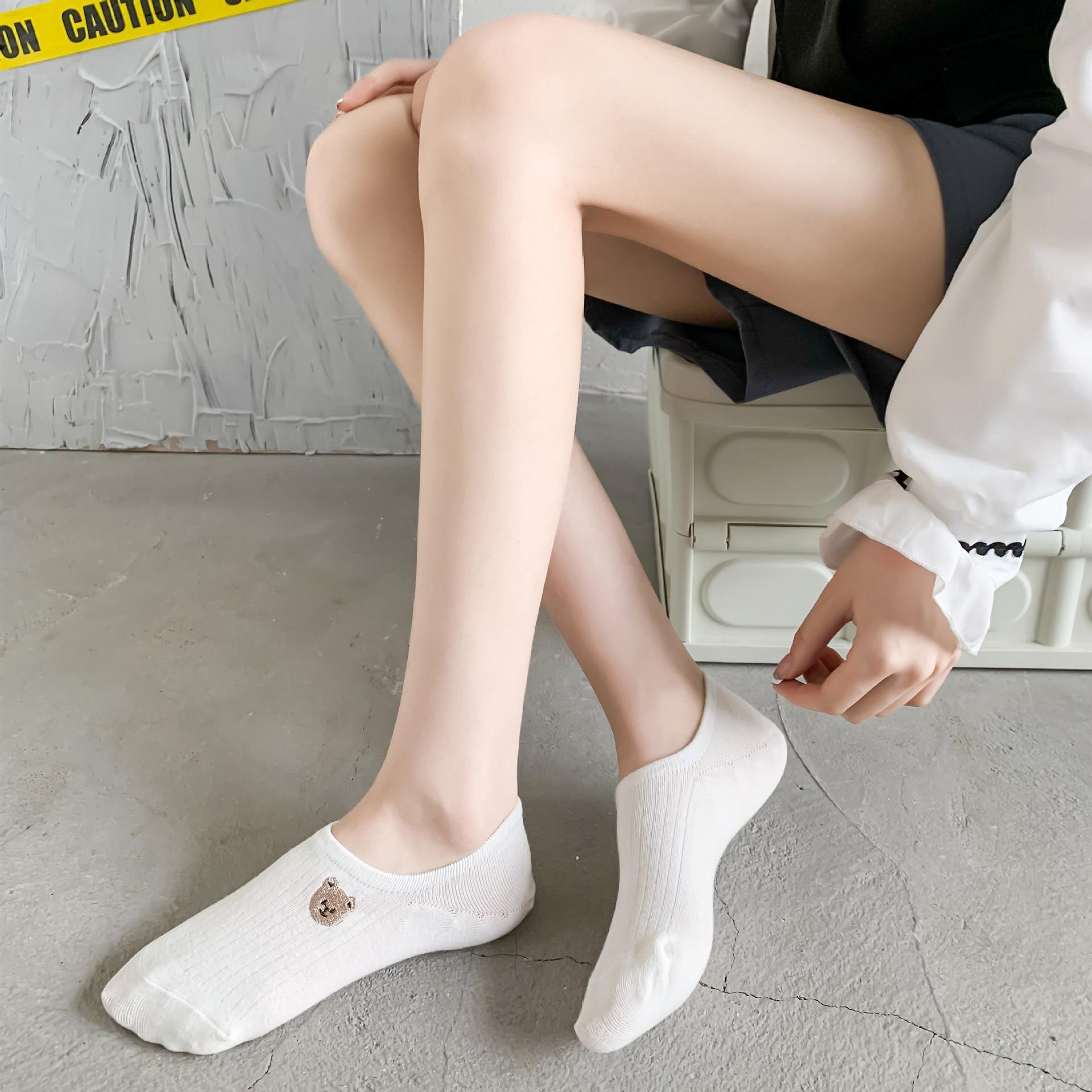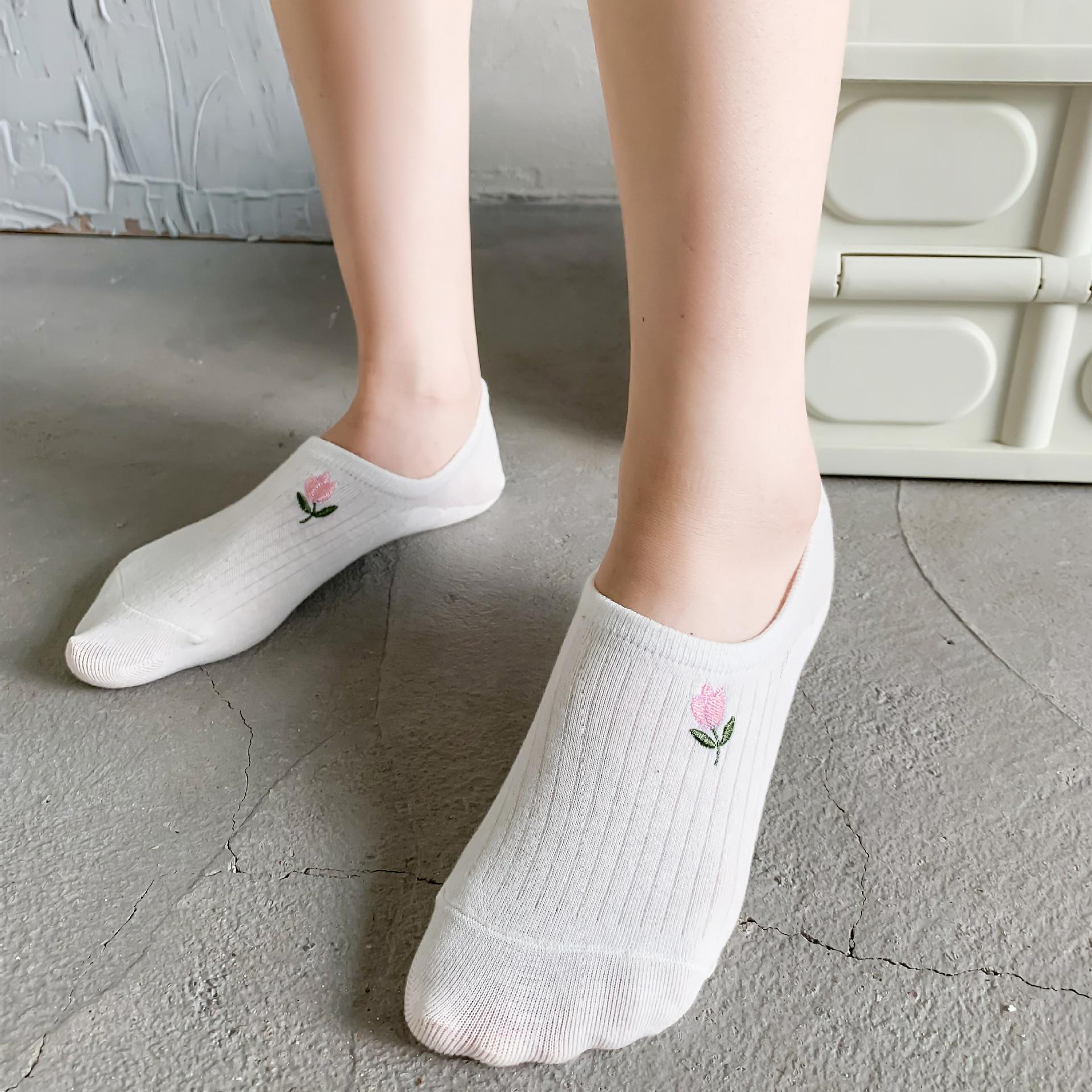 Calcetines Invisibles Bordados Finos de Verano para Mujer Estilo Japonés Calcetines de Barco Bajos Tulipán Antideslizantes Calcetines Blancos