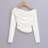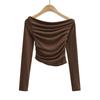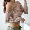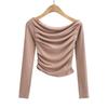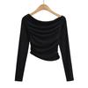 YPFF suéter de moda para mujer manga larga chica hot hombros descubiertos ajuste ceñido manga larga plisada color sólido camiseta top