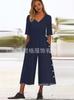 Conjunto de dos piezas de top y pantalón de media manga de satén suave para mujer, moda transfronteriza europea y americana de Amazon AliExpress 2024 |