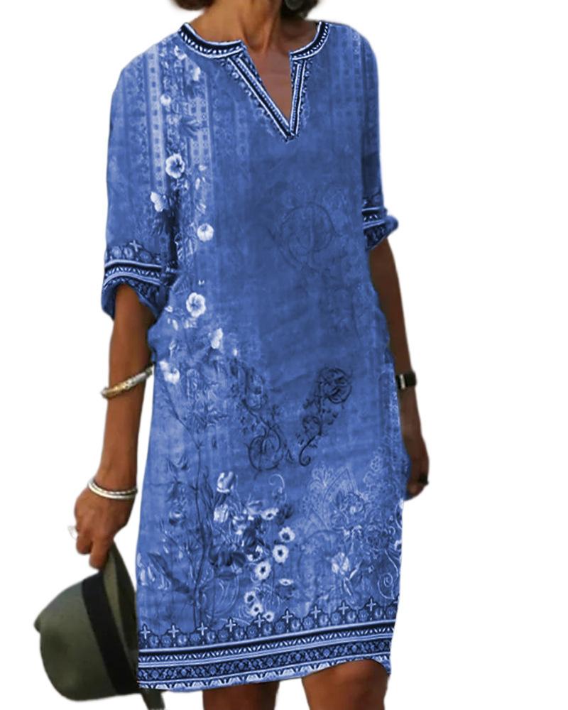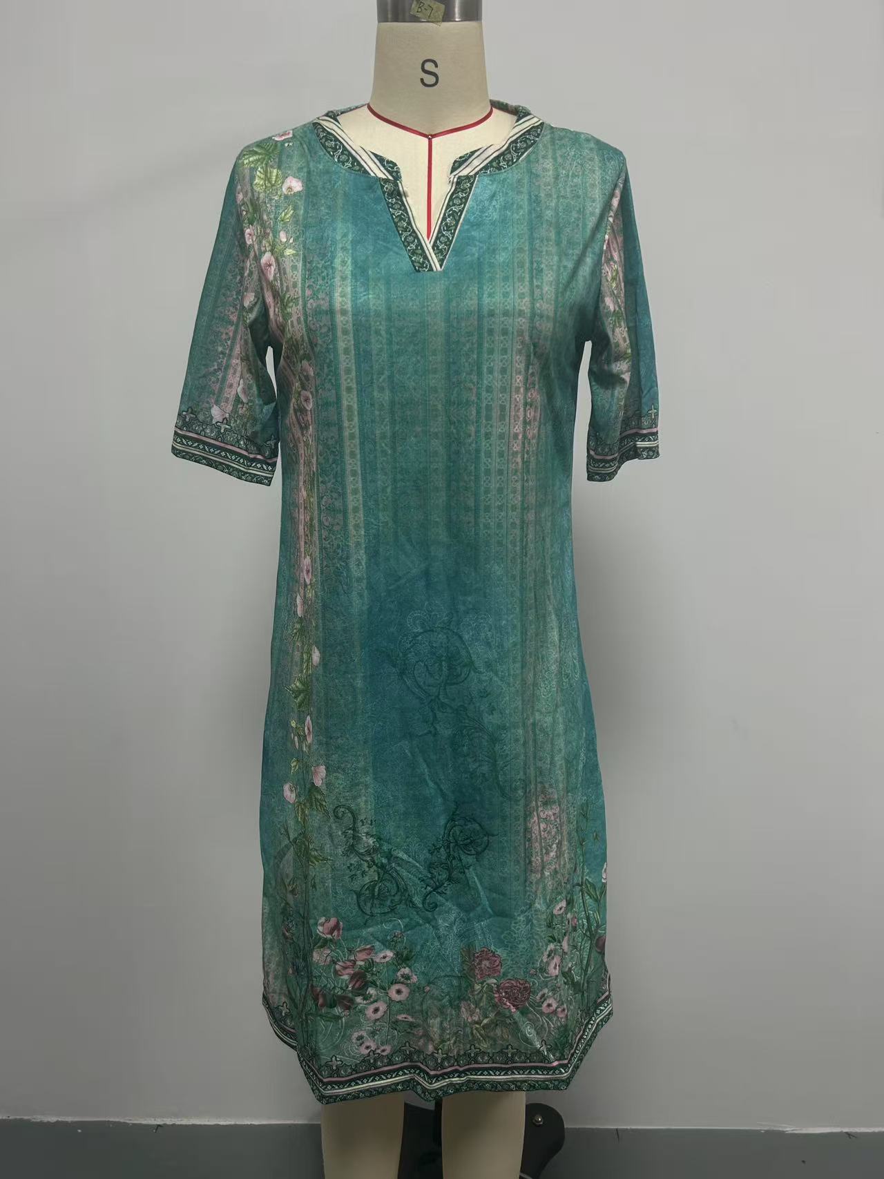 2024 nueva ropa de mujer, falda transfronteriza europea y americana de Amazon, ropa de mujer de talla grande, vestido holgado de manga larga con estampado de colores en contraste |