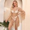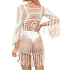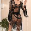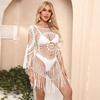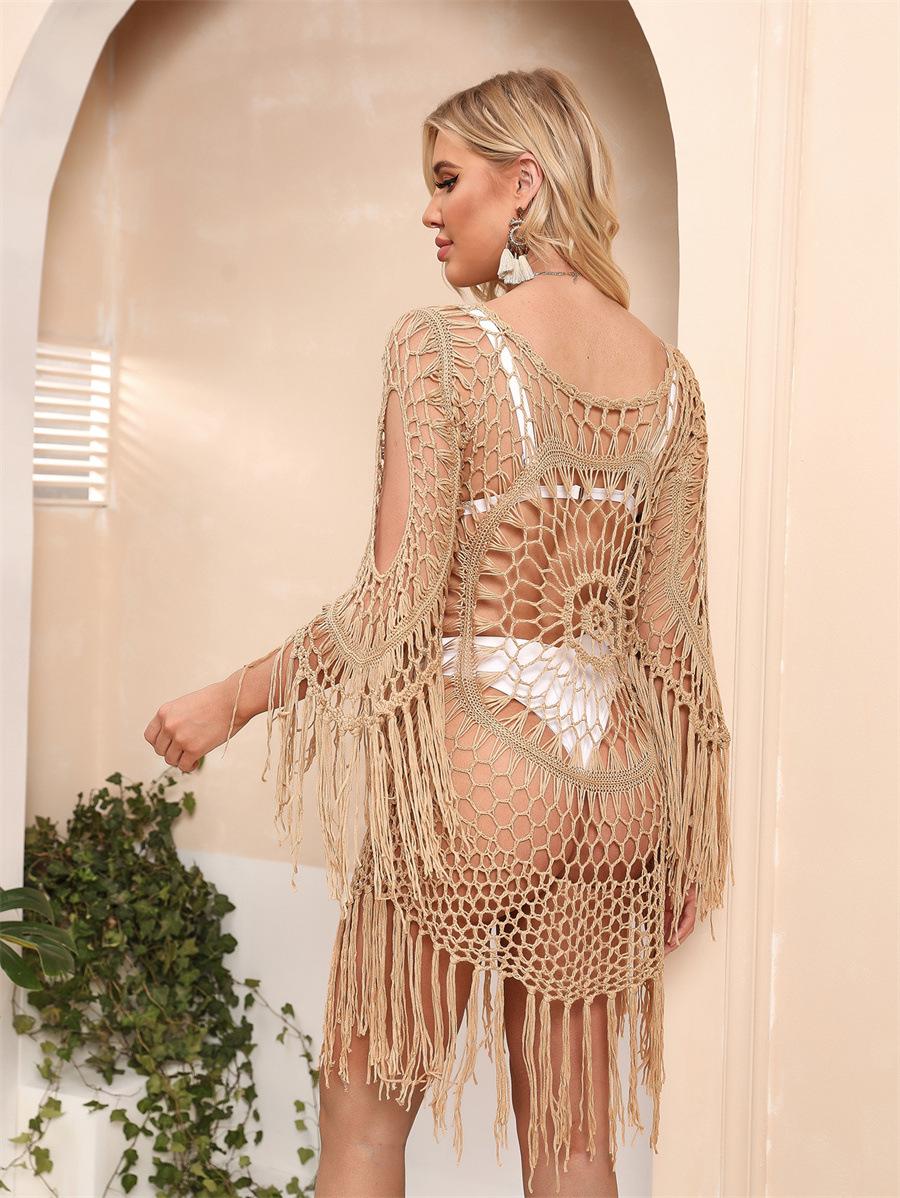 Estilo Vacacional Europeo y Americano Hecho a Mano Crochet Hombro Manga Larga Blusa de Playa Hueca Suelta Bikini Traje de Baño Blusa 876