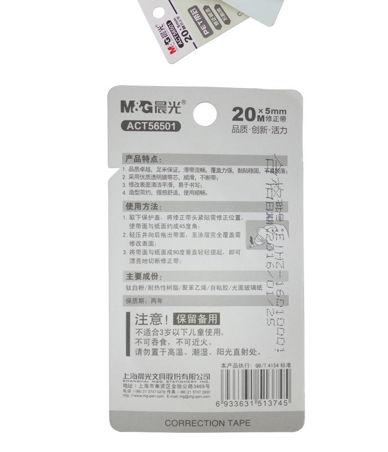 Cinta correctora Chenguang ACT56501 de 20 m continua con núcleo de cinta PET, transparente, de gran capacidad, venta al por mayor de papelería