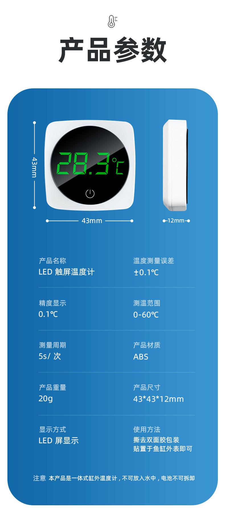 Termómetro de pecera con cilindro electrónico, medidor de temperatura del agua, termómetro LED para acuario