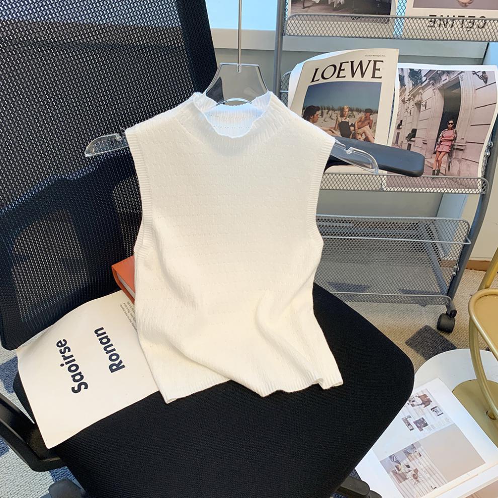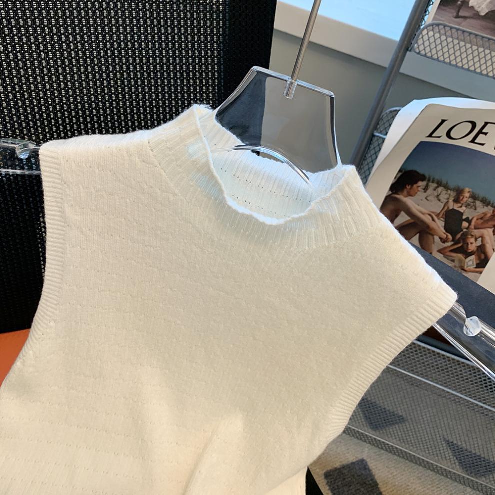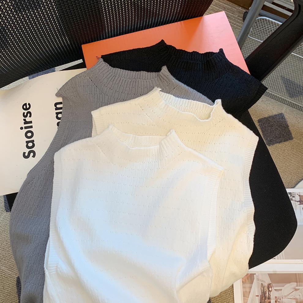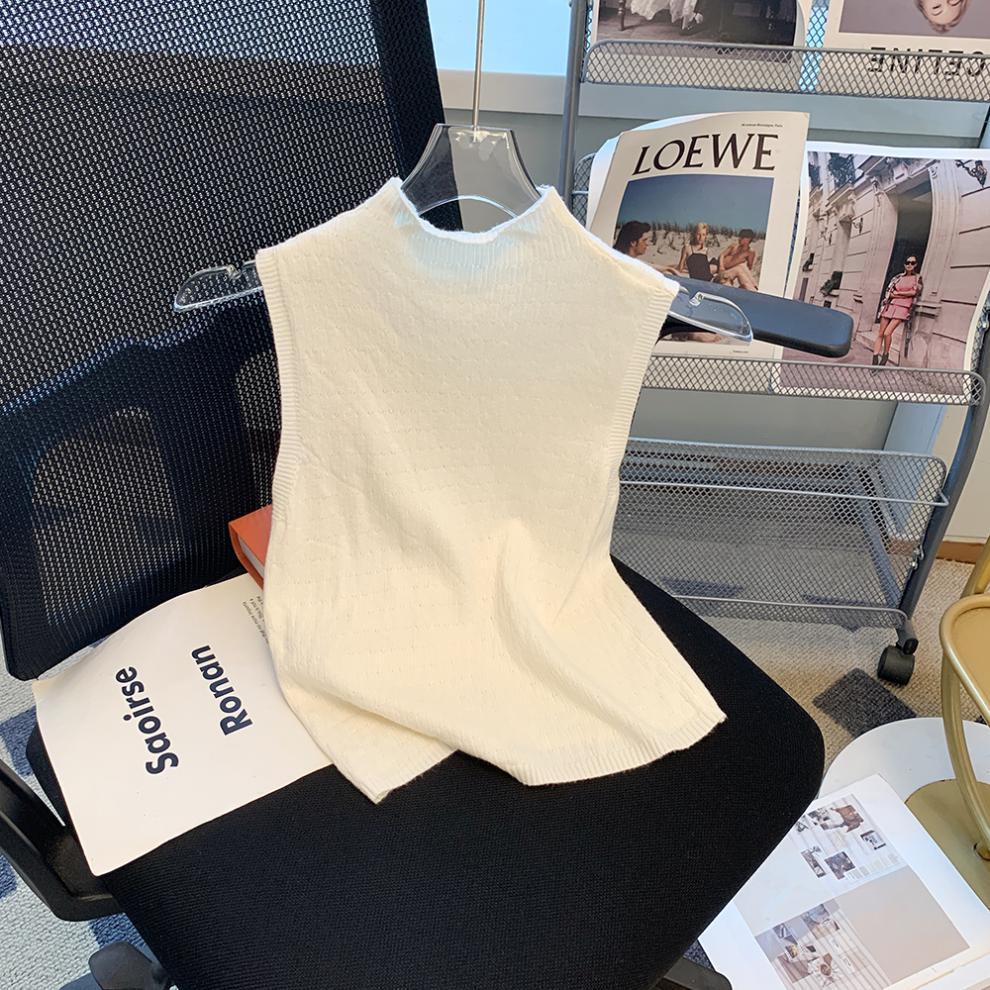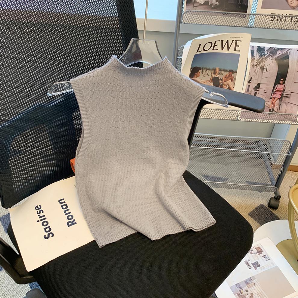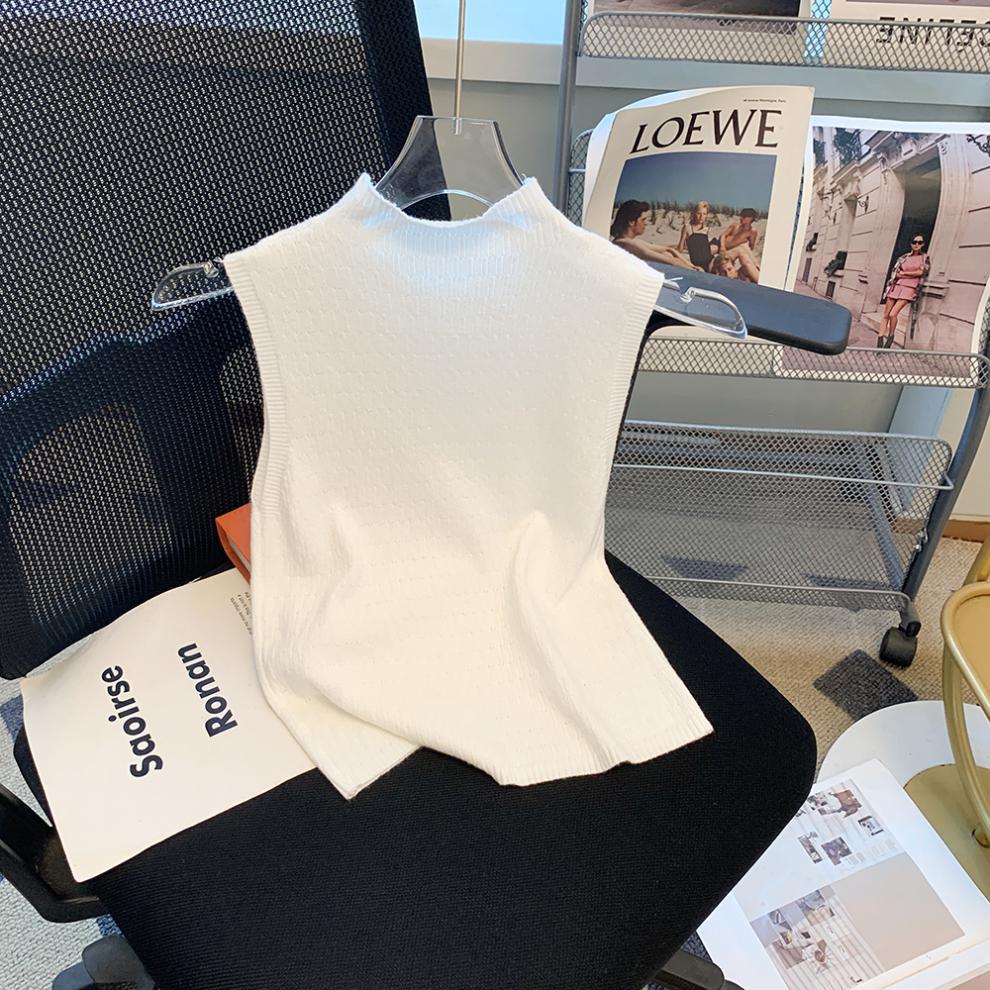 Foto real del diseño, Elegante cuello medio alto, Chaleco tejido texturizado chic