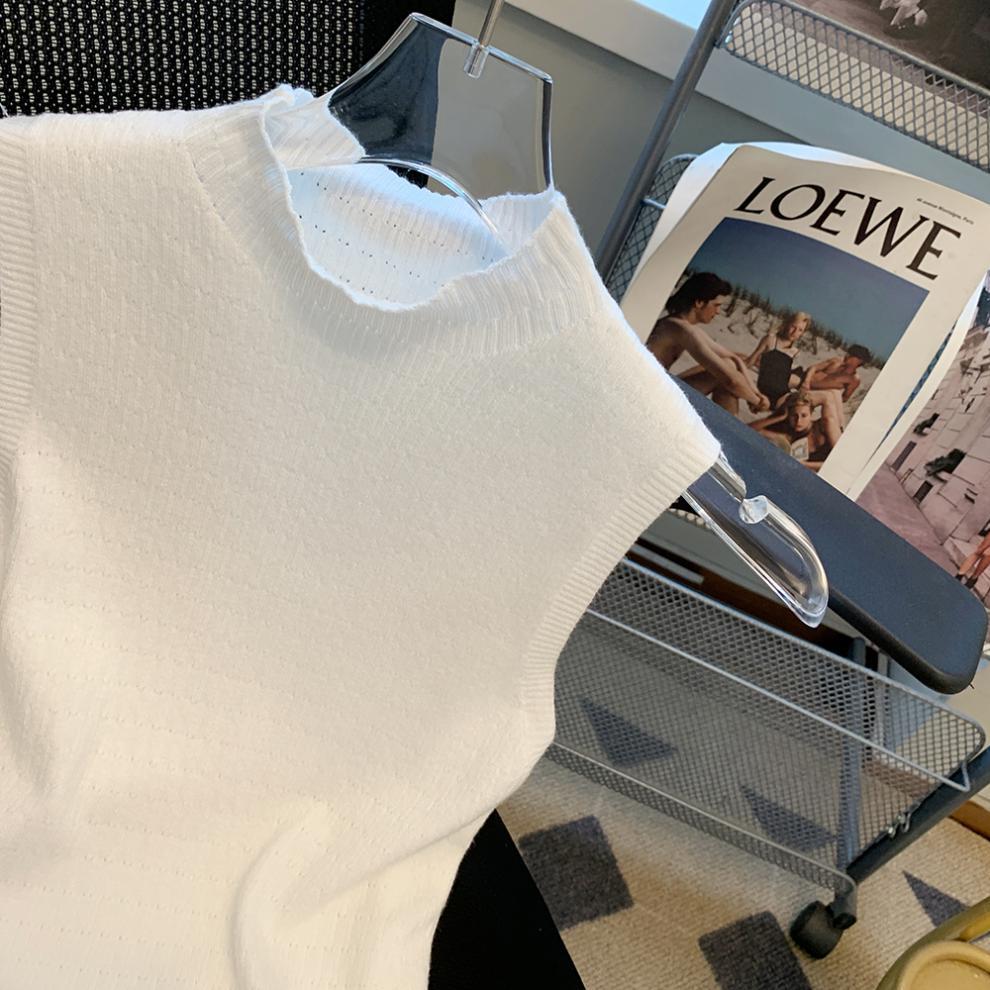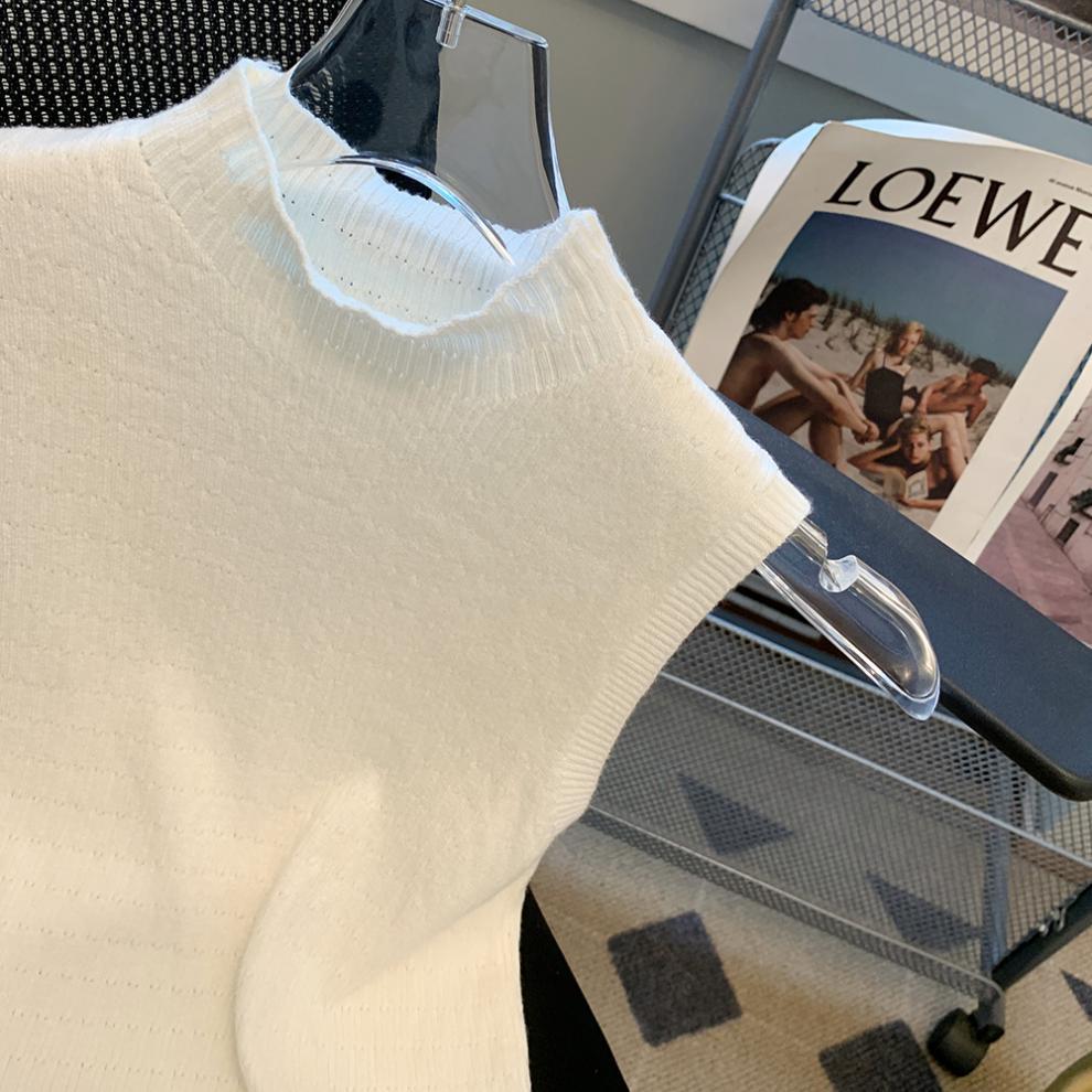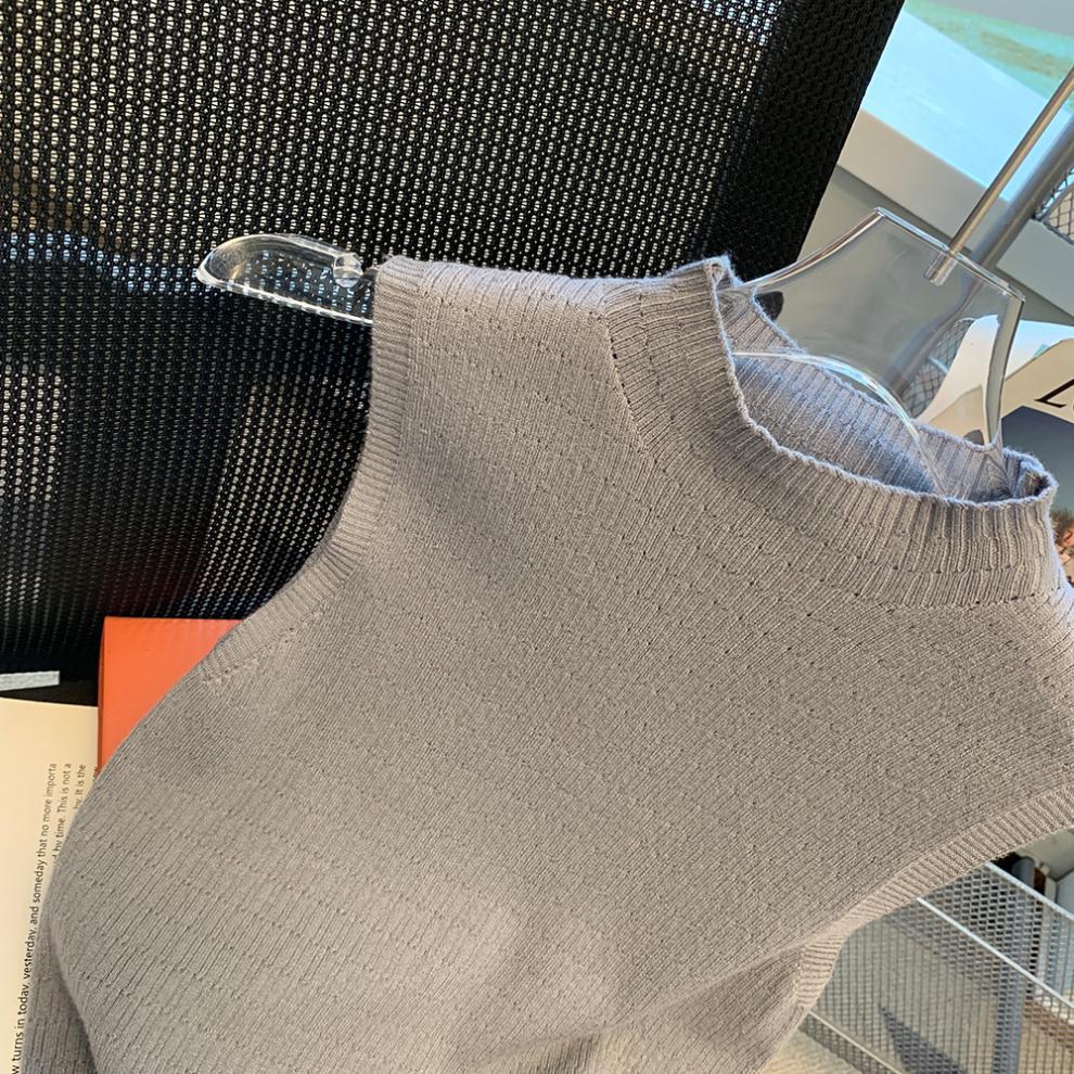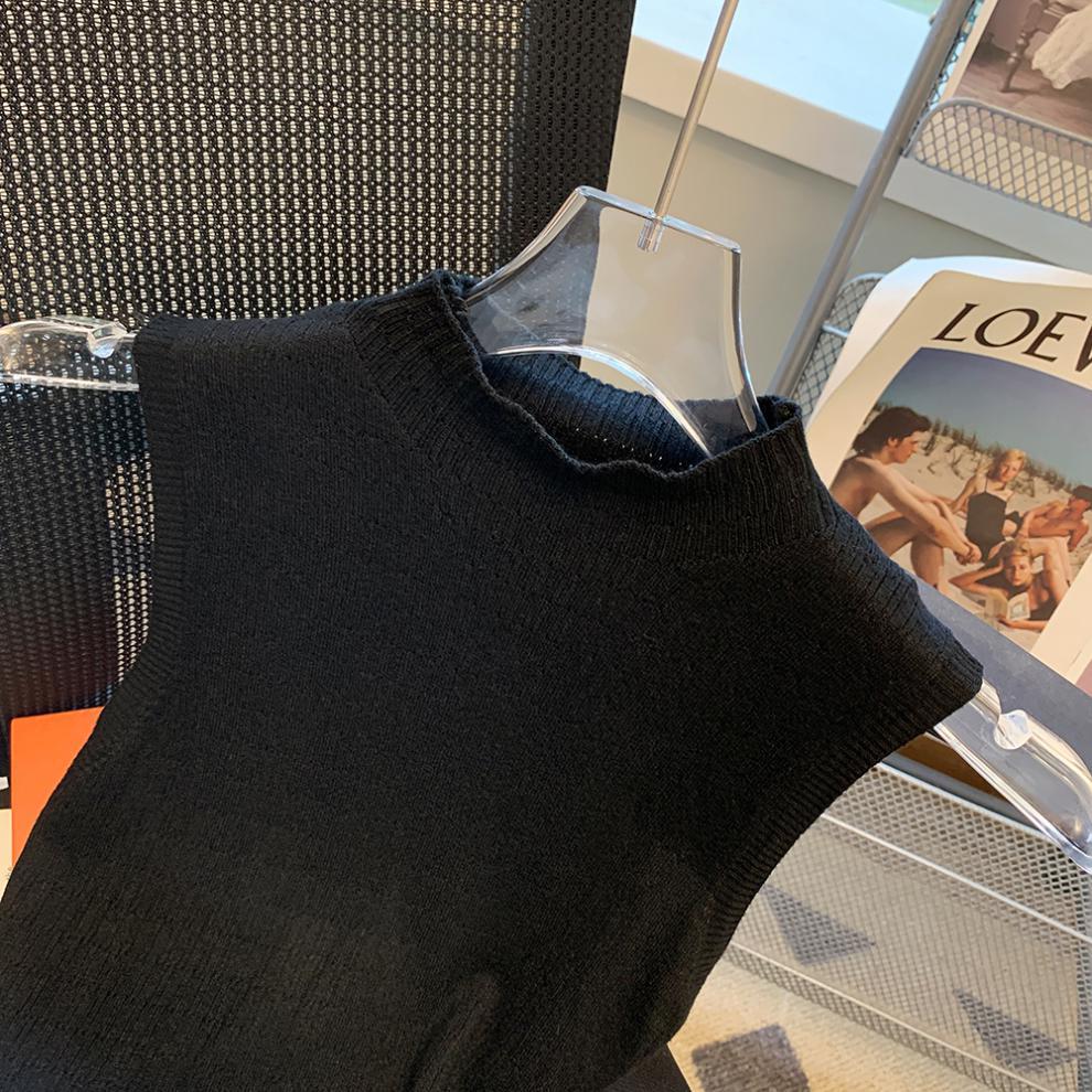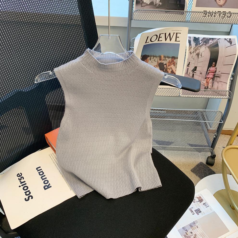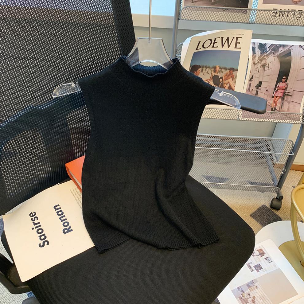 Foto real del diseño, Elegante cuello medio alto, Chaleco tejido texturizado chic