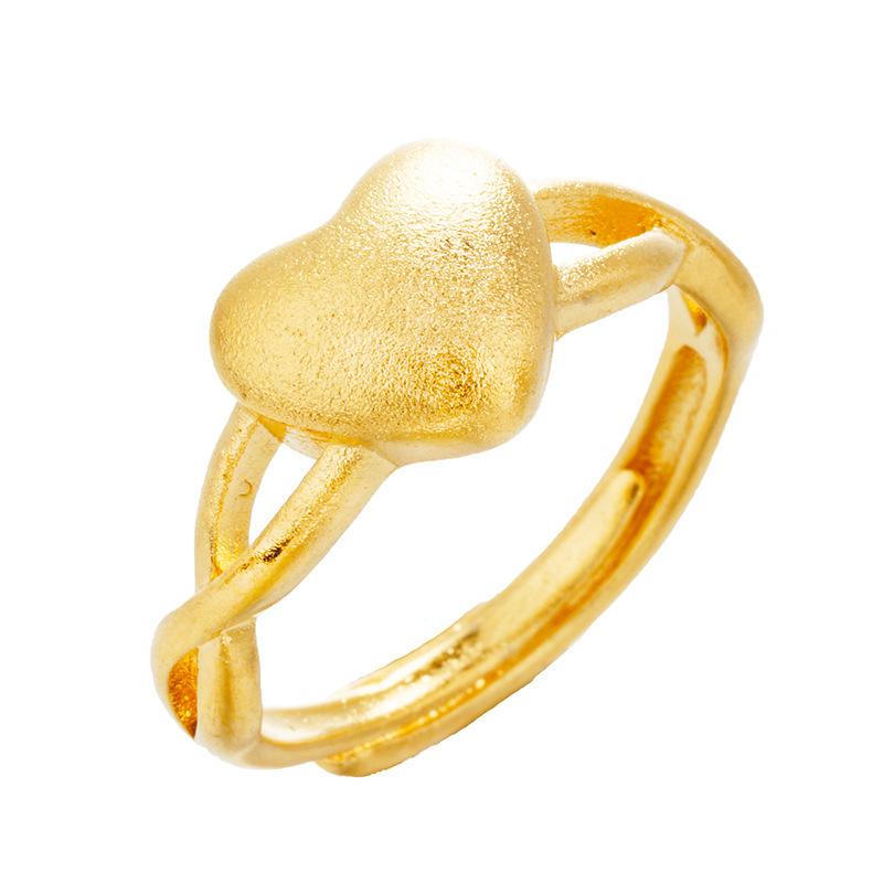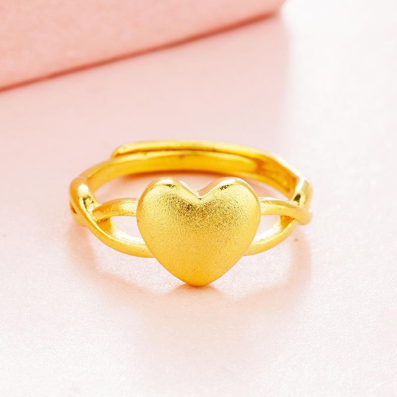Anillo ajustable de corazón dulce de oro arena de Vietnam para mujer, cobre chapado en oro, anillo de corazón duradero, suministro al por mayor