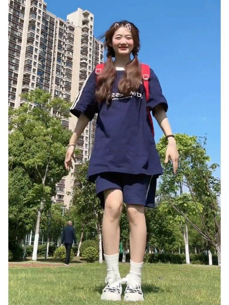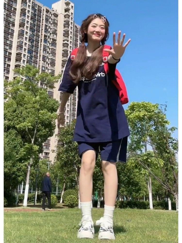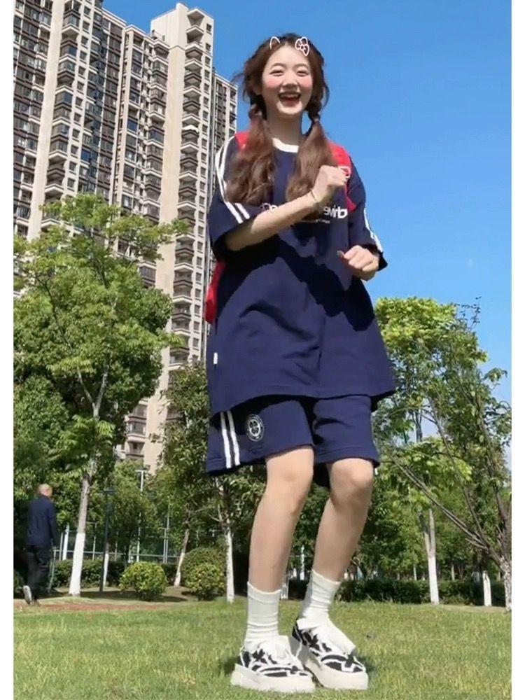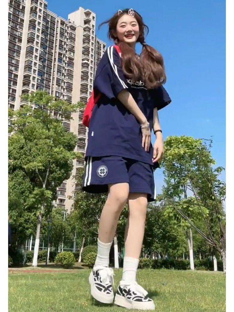 Traje estilo universitario para mujer, ropa deportiva informal de verano para chicas, pantalones cortos holgados de manga corta para correr, conjunto de dos piezas a la moda