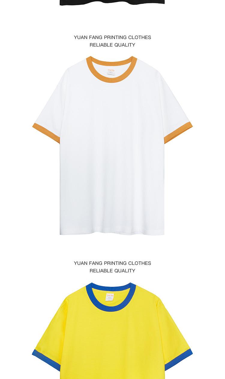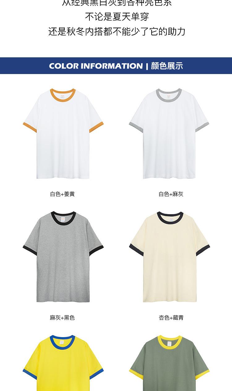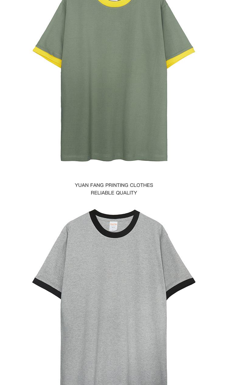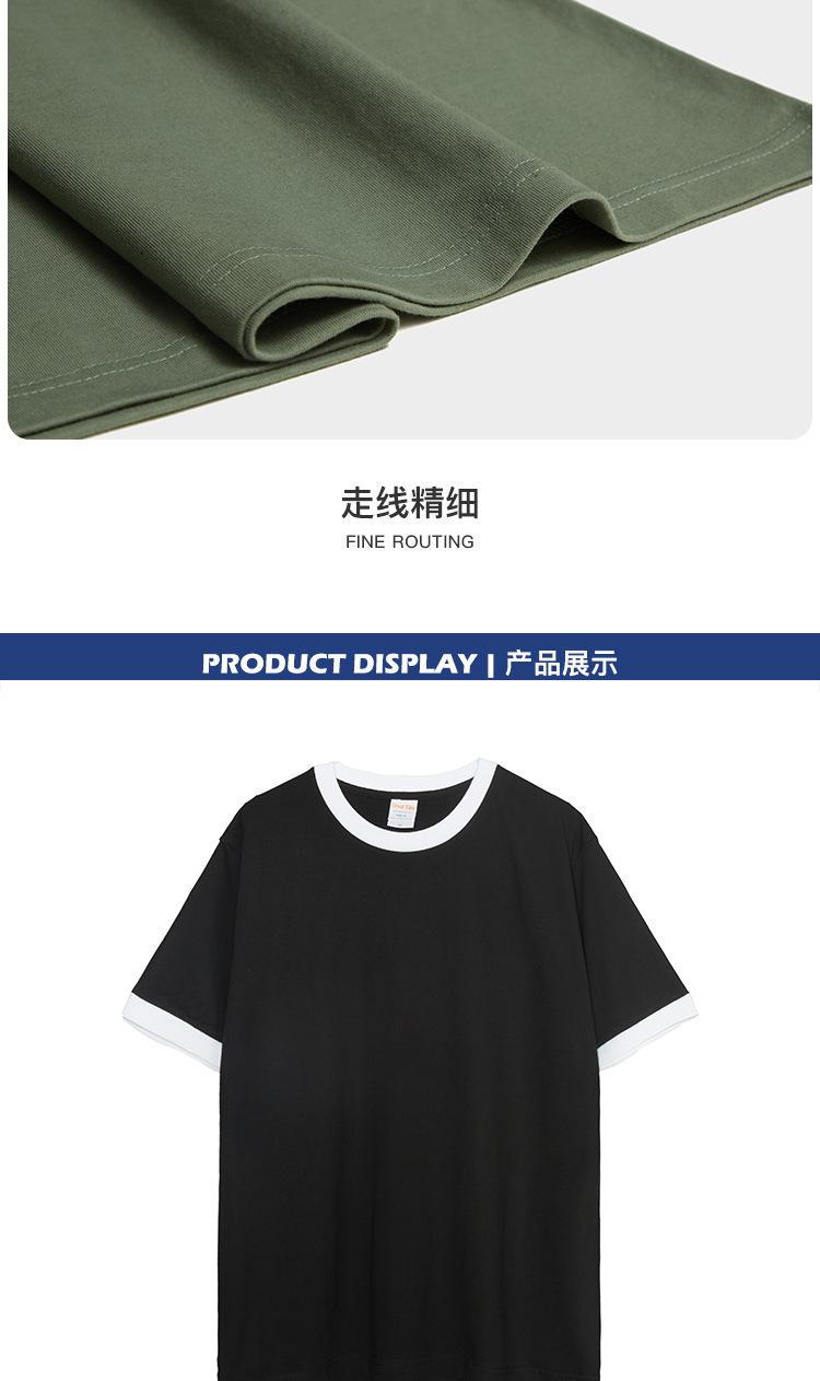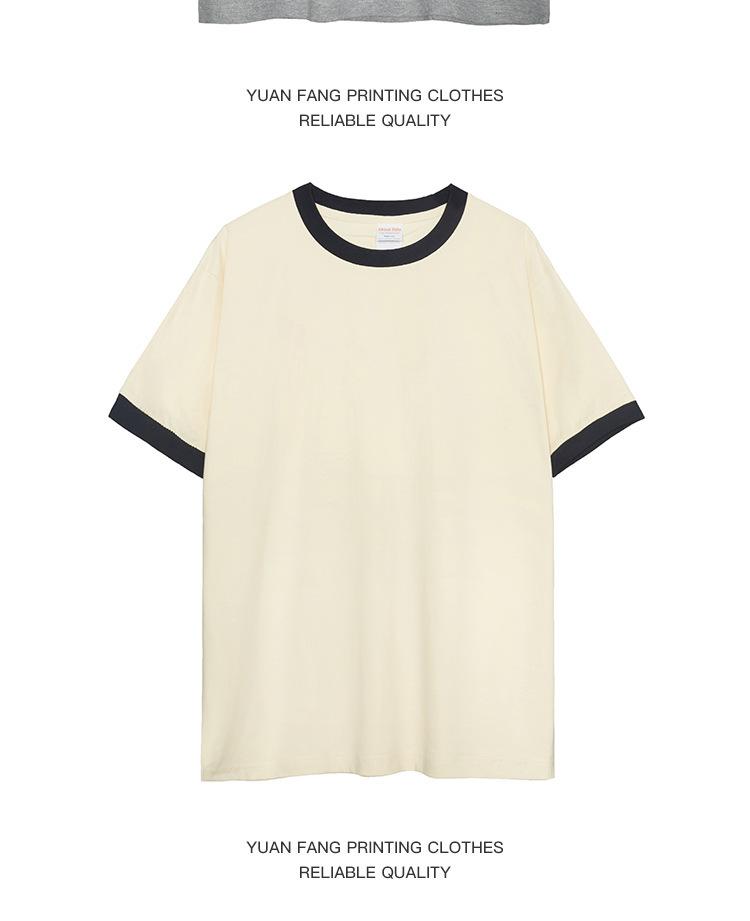 Camiseta de manga corta de algodón grueso de 230 g con borde cosido y contraste de color, para hombre y mujer.