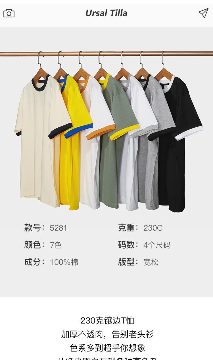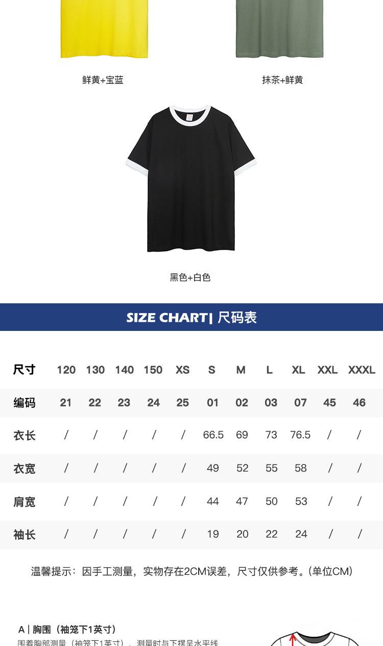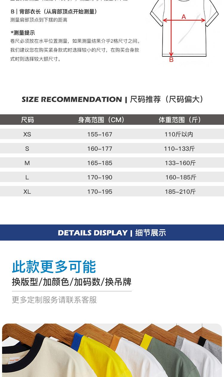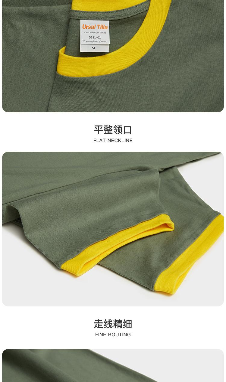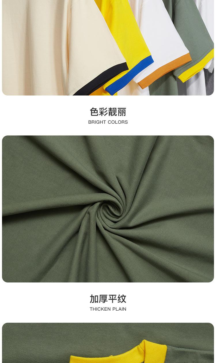 Camiseta de manga corta de algodón grueso de 230 g con borde cosido y contraste de color, para hombre y mujer.