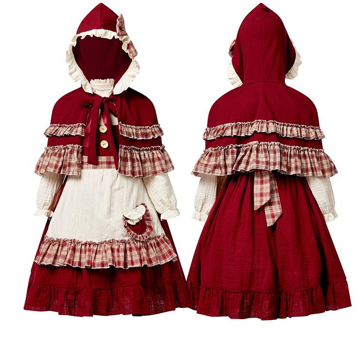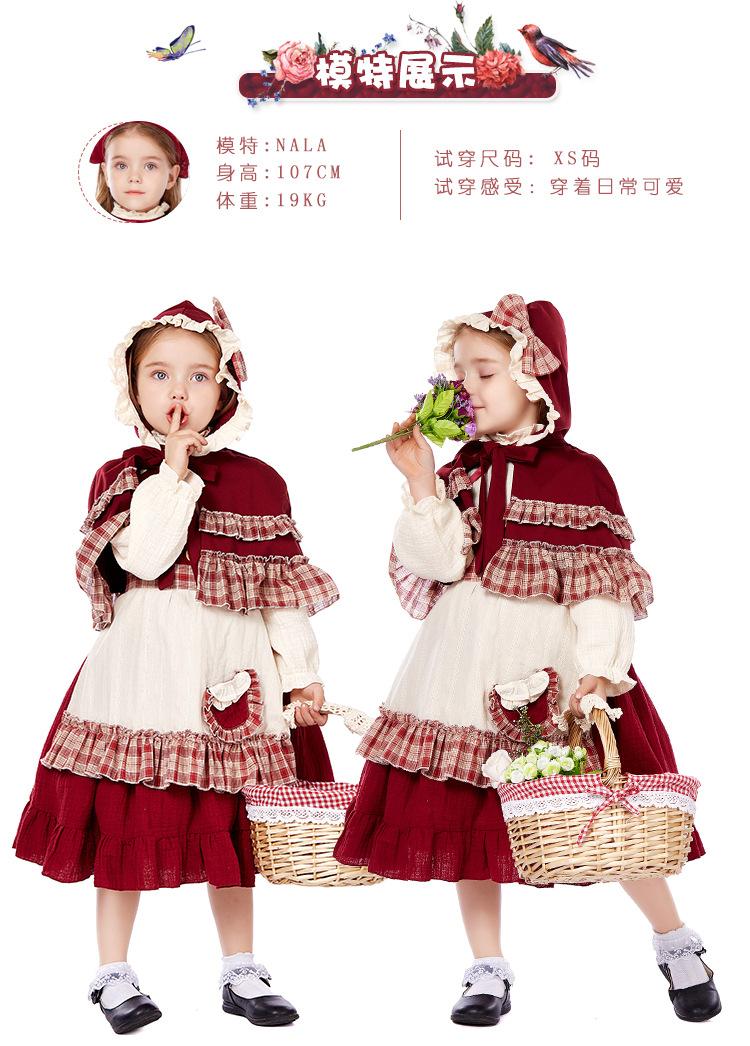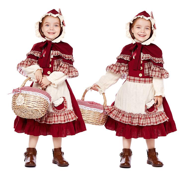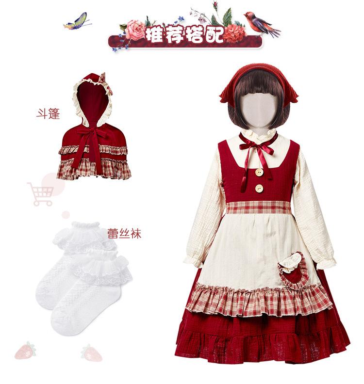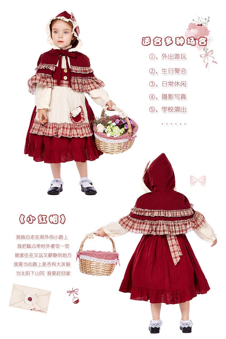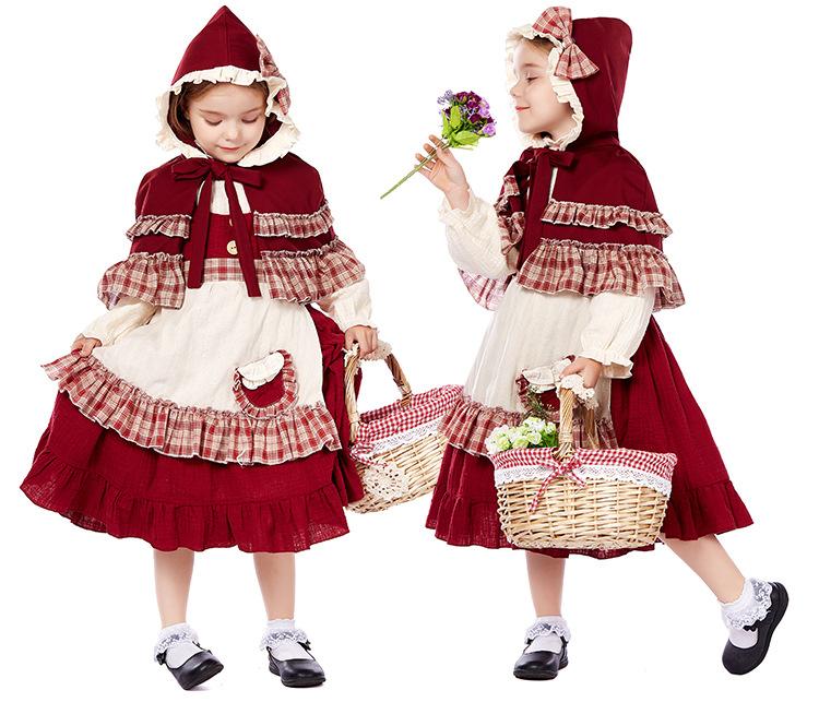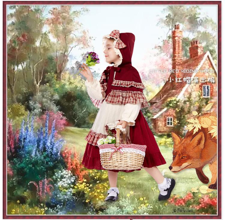 Disfraz infantil de Caperucita Roja Día del Niño Actuación Escénica Lolita Chica Suave Estilo Navideño Encaje Ropa de Caperucita Roja