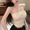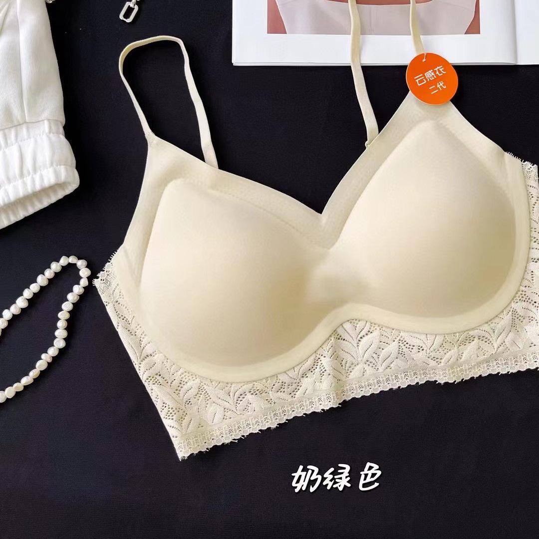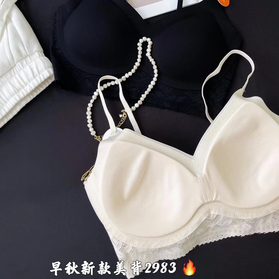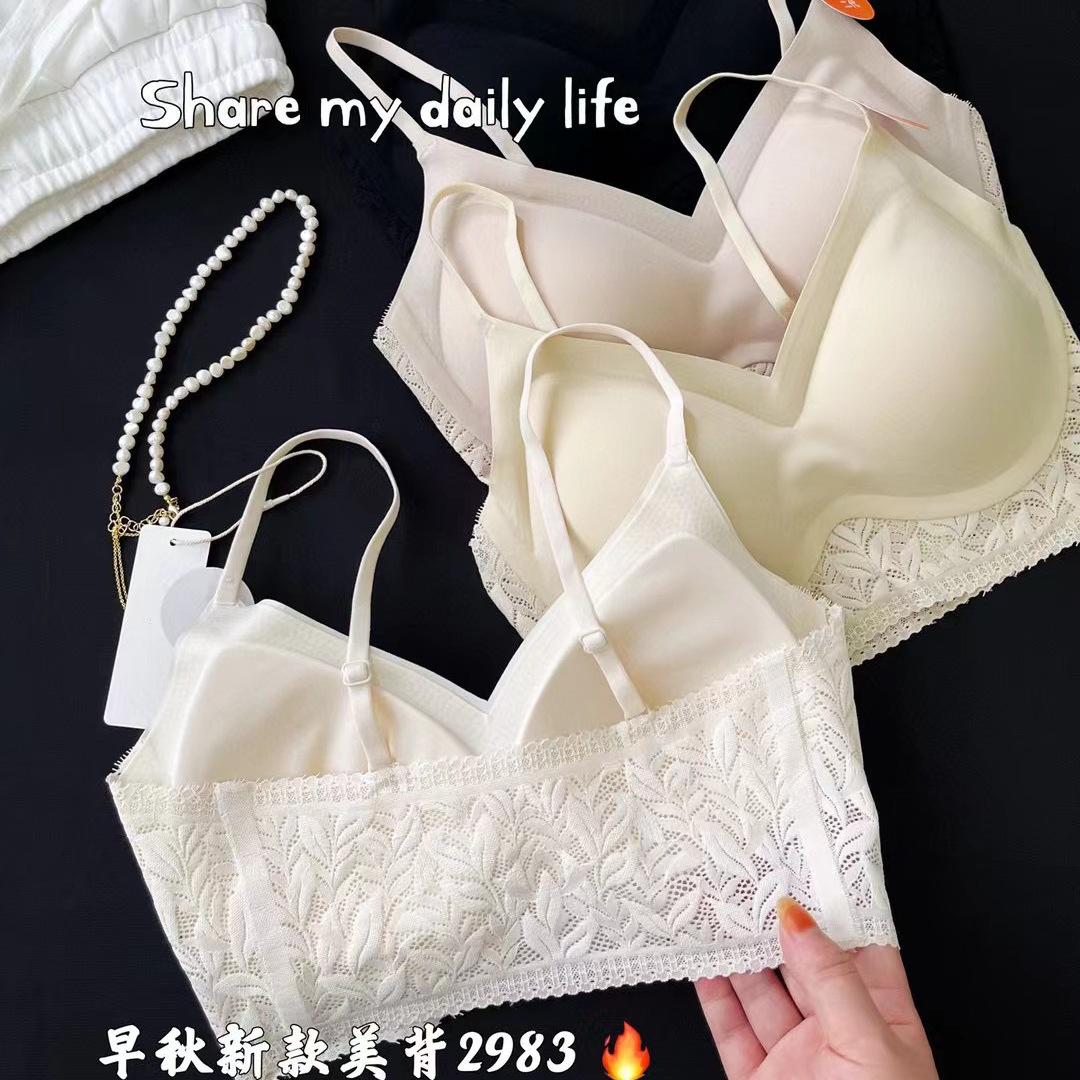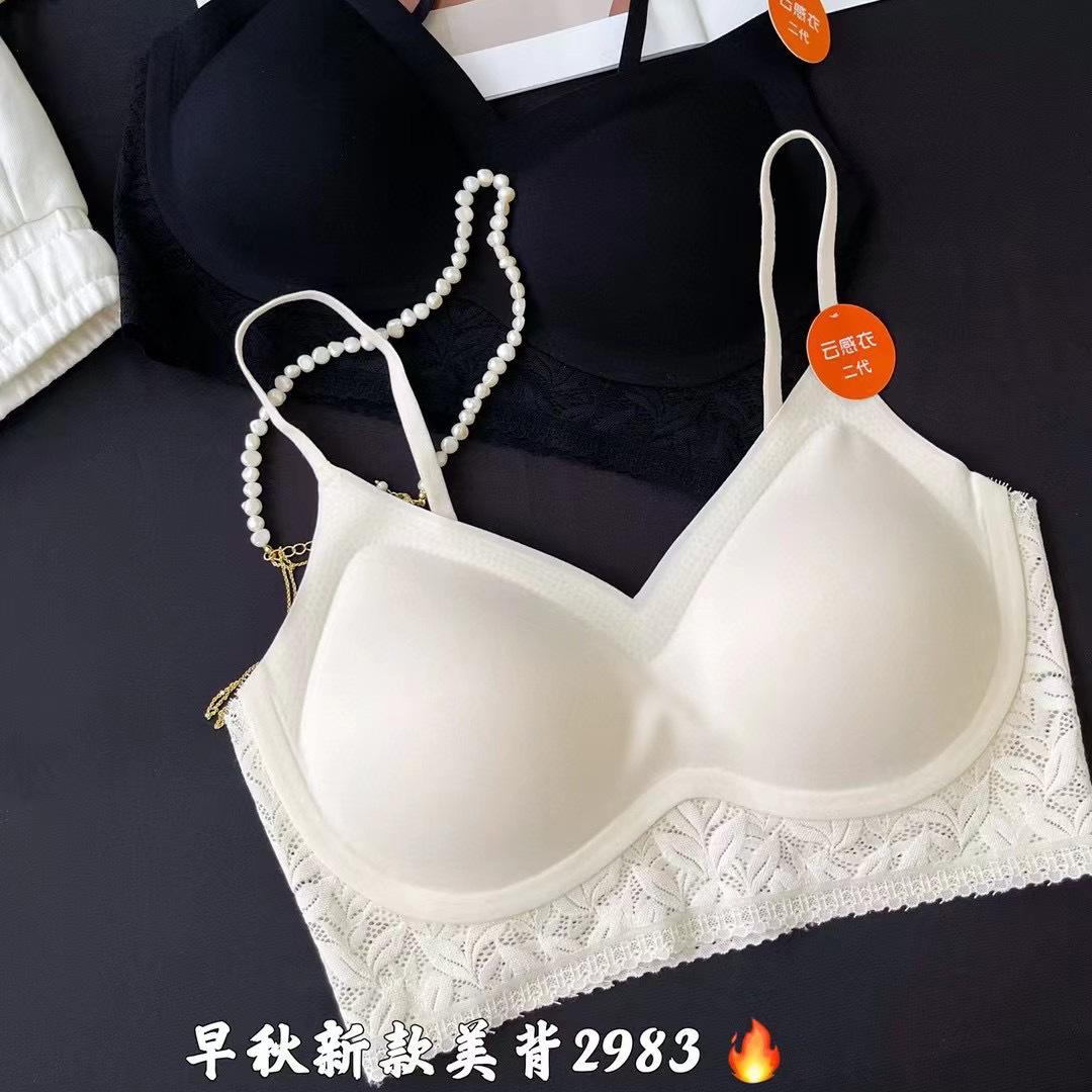 Camisola de encaje con escote en V, tirantes finos y espalda hermosa, de principios de otoño, con copa fija de una pieza, sin tirantes, 2983