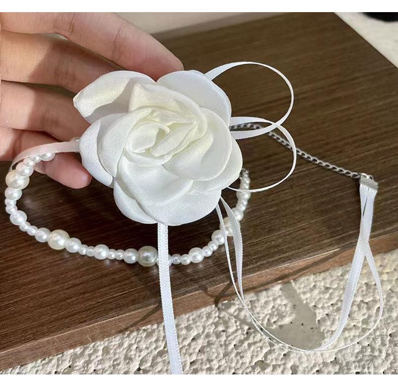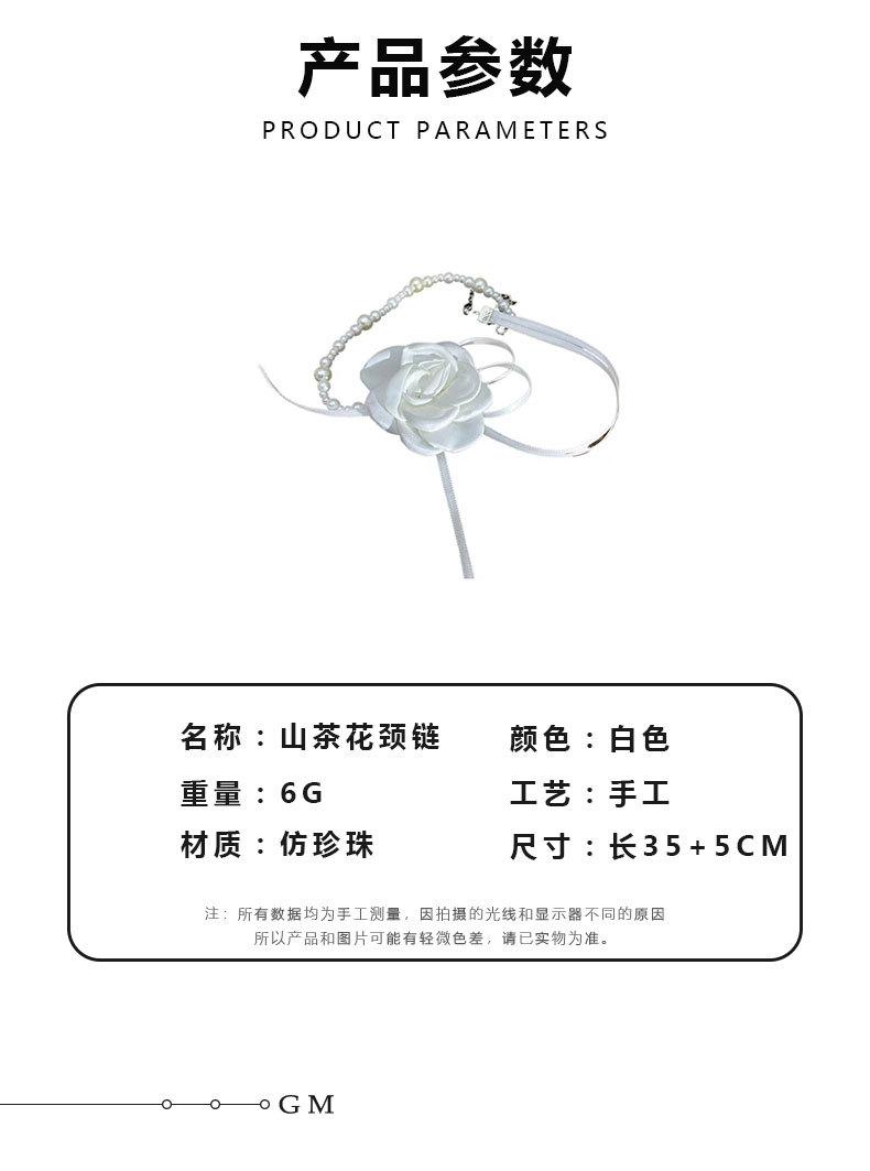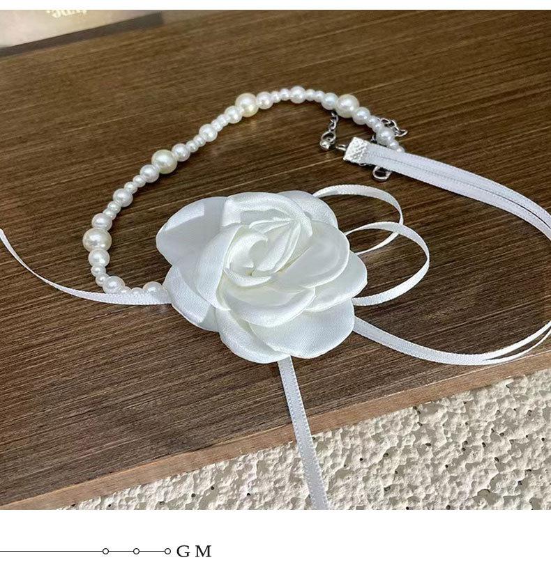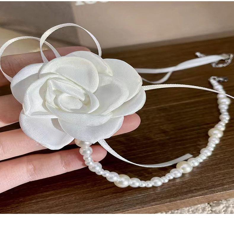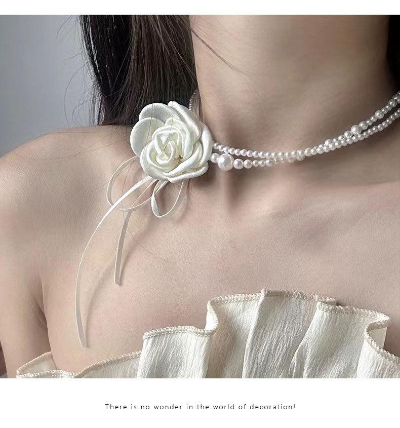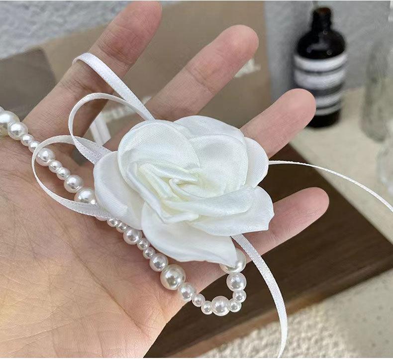 Collar de Camelia Lazo Gargantilla Rosa Blanca Hecho a Mano Cinta Collar de Perlas Cadena Clavícula Vintage Accesorios para Mujer