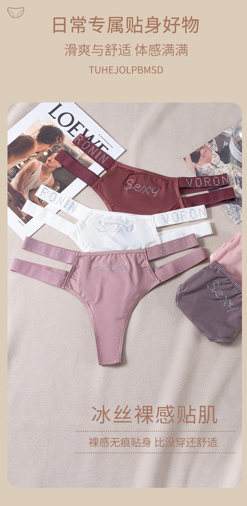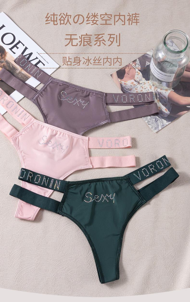 Ropa interior sexy y divertida con forma de T para mujer, con perforaciones calientes, de seda helada y sin viento, para mujer, calzoncillos europeos y americanos para mujer.