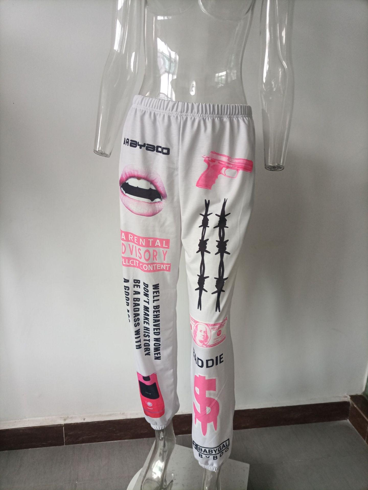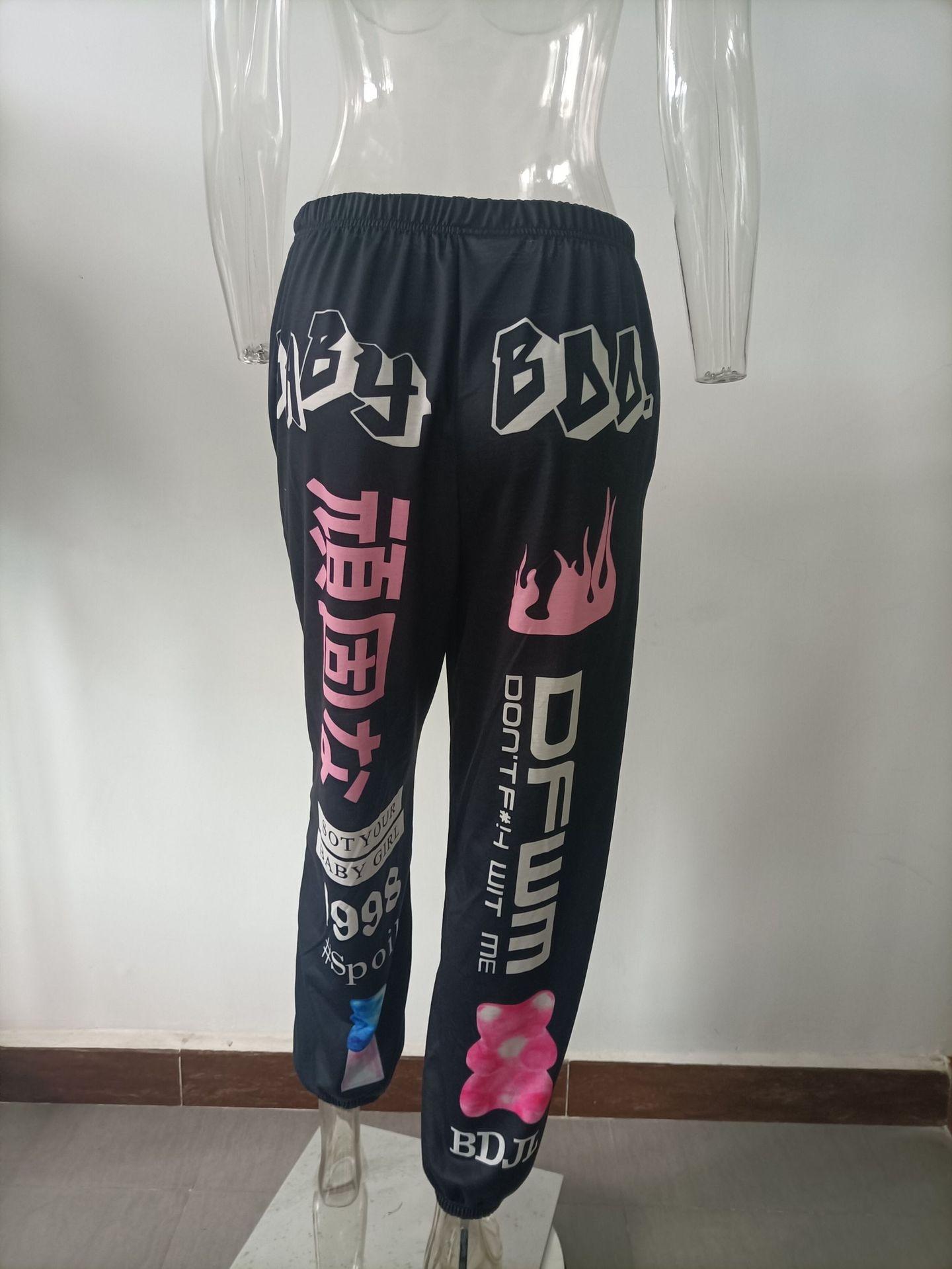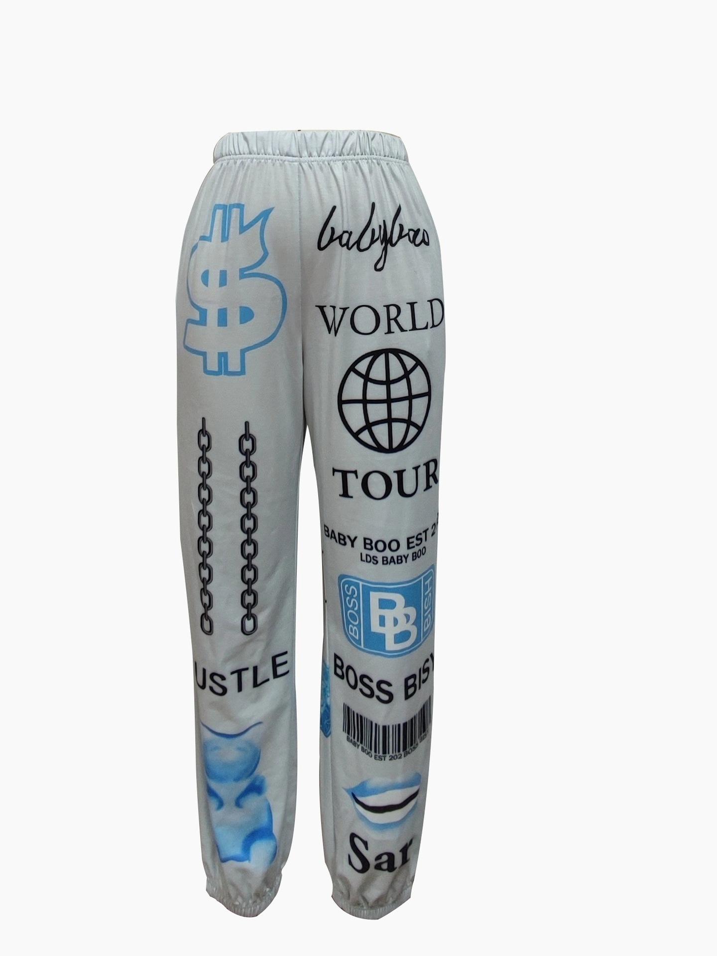 Ropa Popular Transfronteriza Europea y Americana de Otoño e Invierno 2025 Nueva Moda Estampada Cintura Elástica Deportiva Casual Pantalones Harem para Mujer