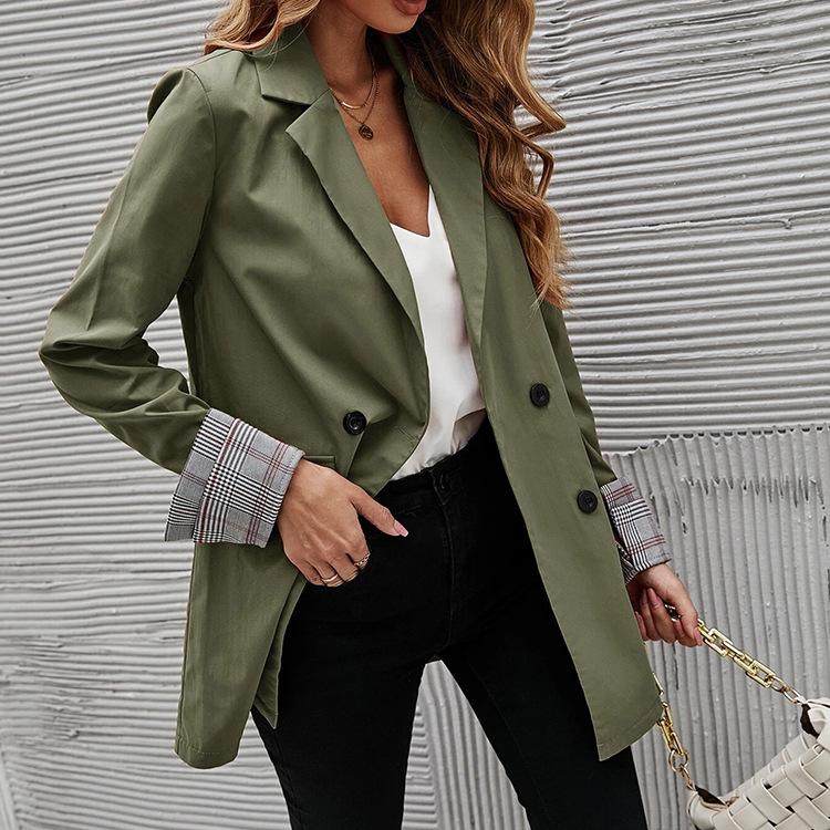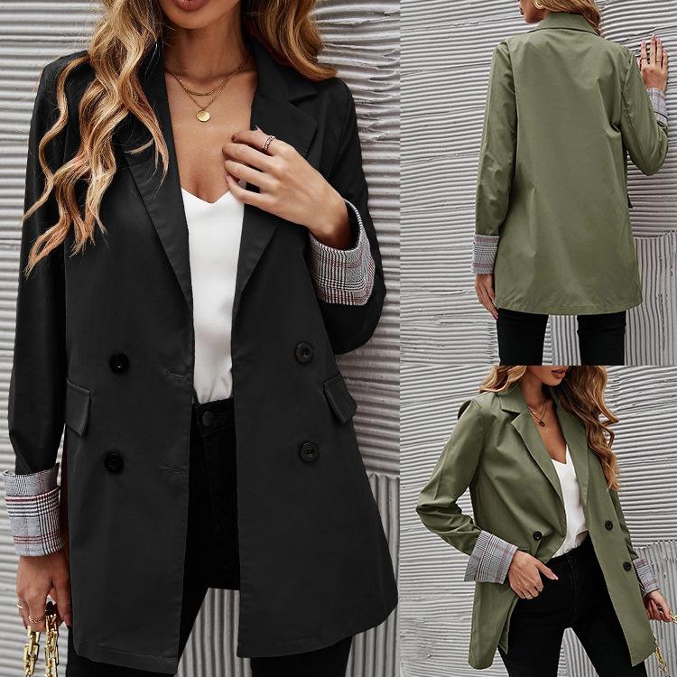 2025 Otoño e Invierno Nuevo Ropa de Mujer Transfronteriza Estación Independiente de Amazon Color Puro Solapa Botón Ajustado Chaqueta de Traje