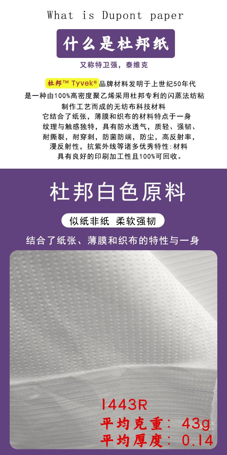 Papel Especial Papel DuPont Tyvek 1443R Blanco Impermeable Transpirable Ligero A prueba de polvo Reciclable Material de Papel Respetuoso con el Medio Ambiente