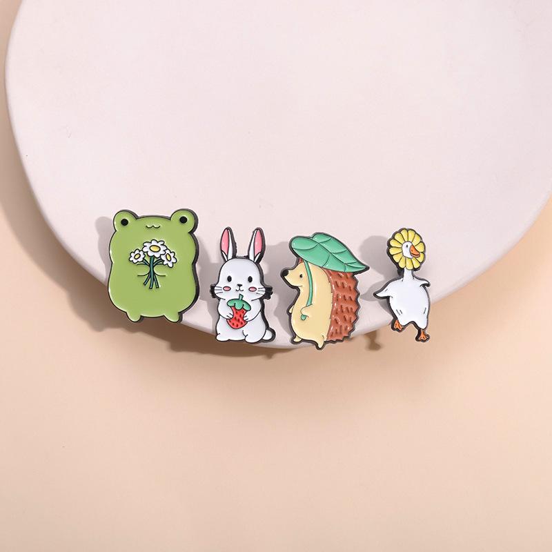 Broche de combinación multiestilo de modelado lindo de animal pequeño de dibujos animados abeja girasol pato rana gato