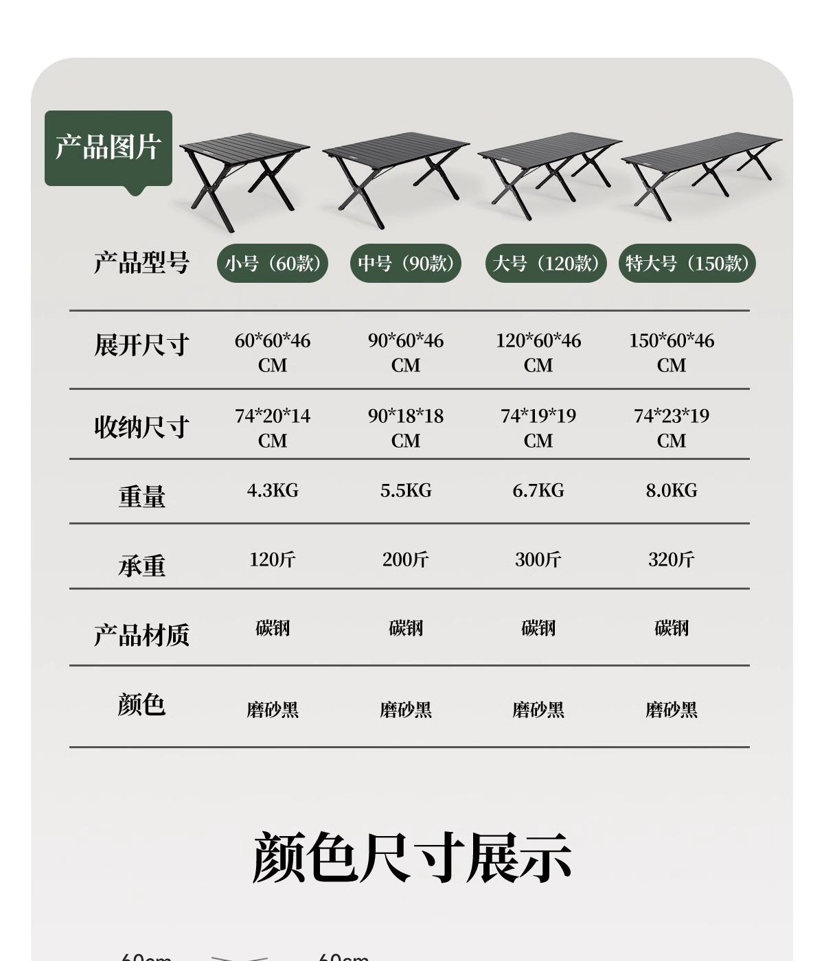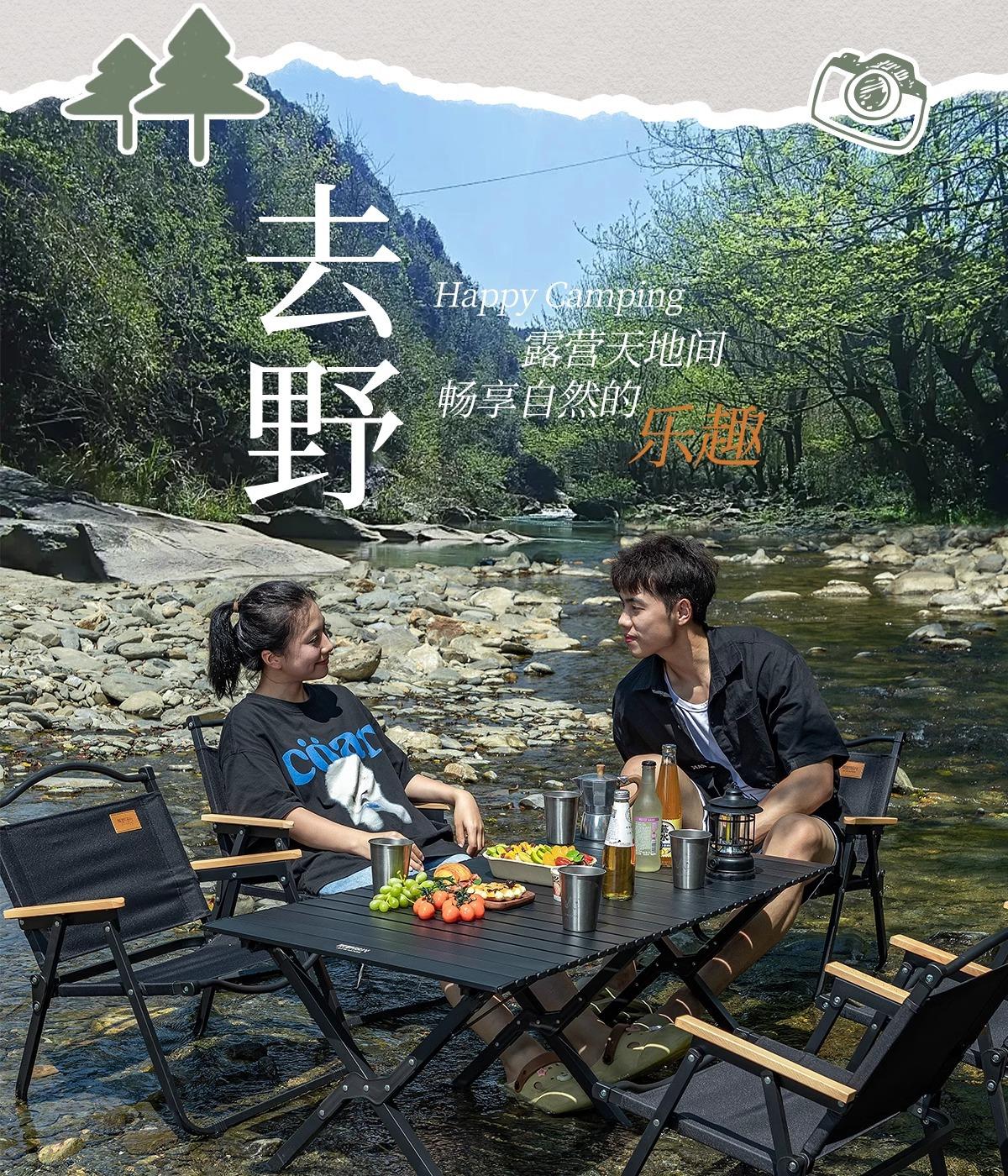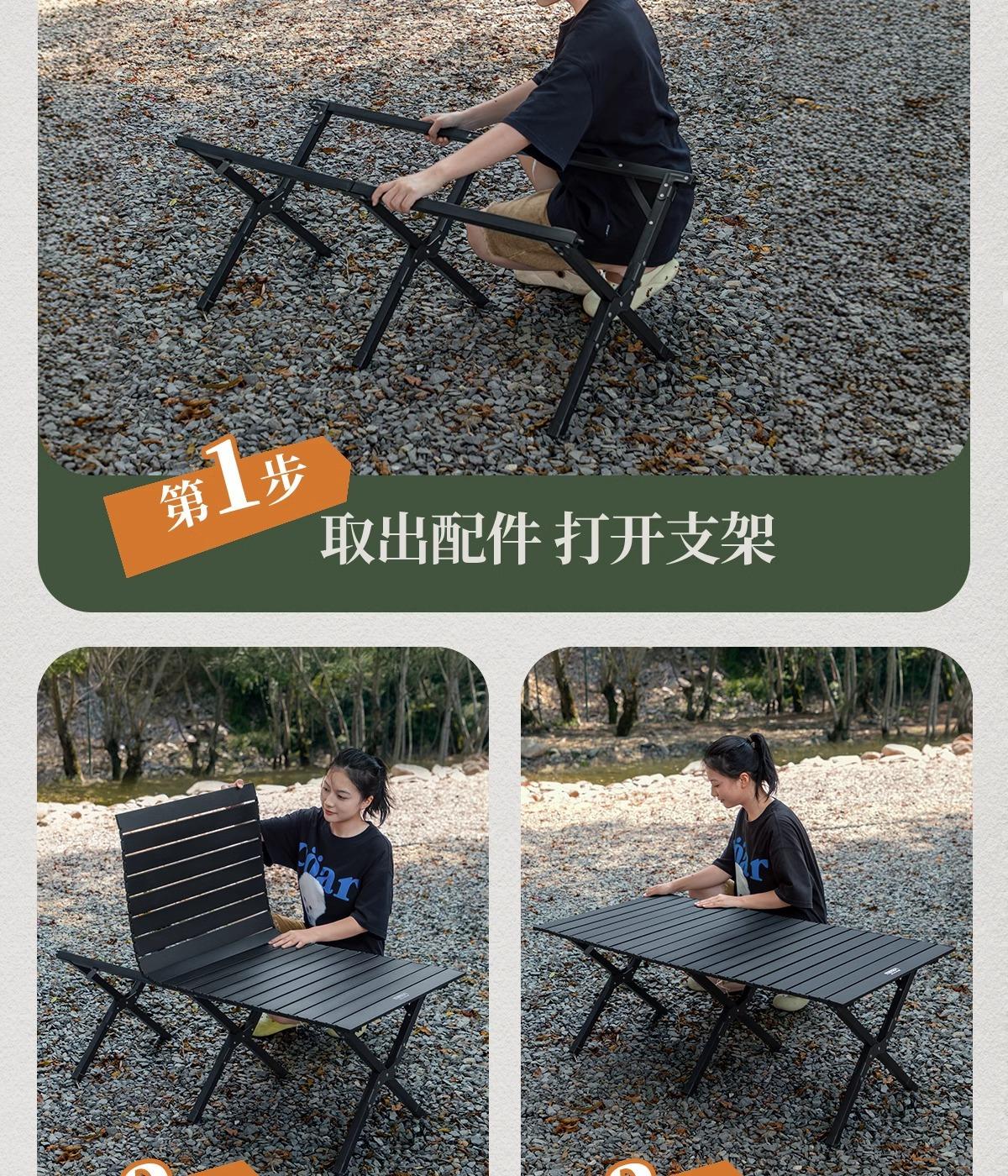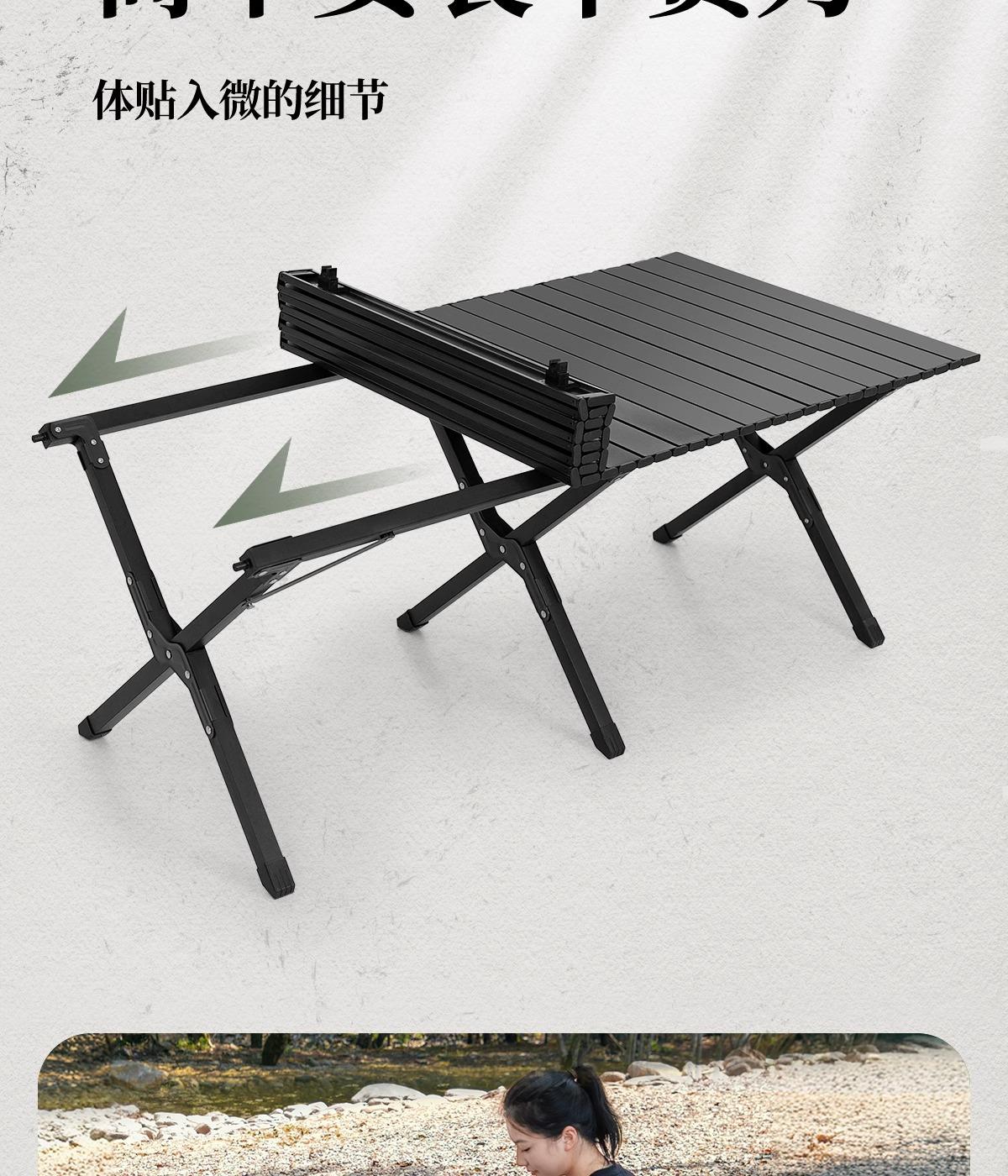 Juego de Mesa y Sillas de Camping Picnic al Aire Libre Mesa Plegable Tipo Rollo de Huevo Portátil Mesa y Sillas Plegables para Puestos