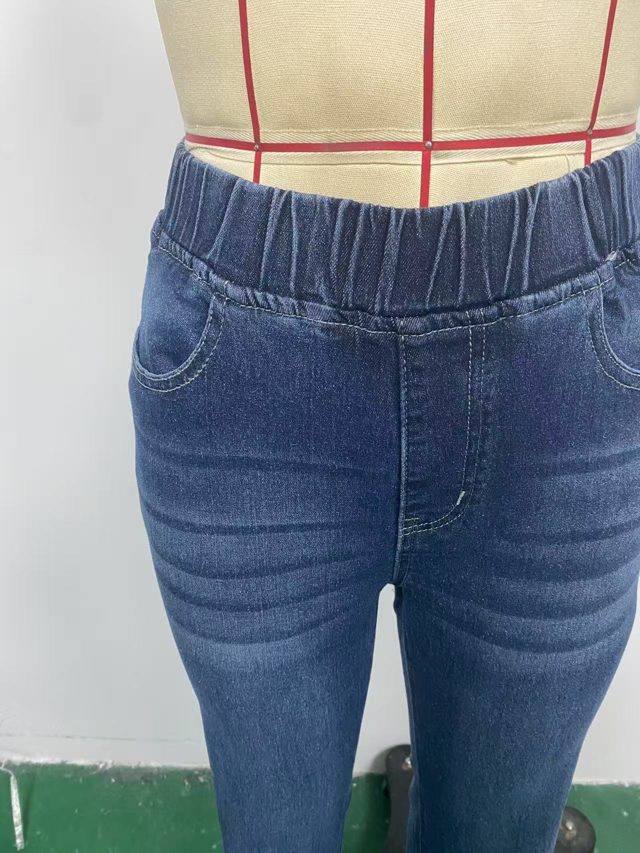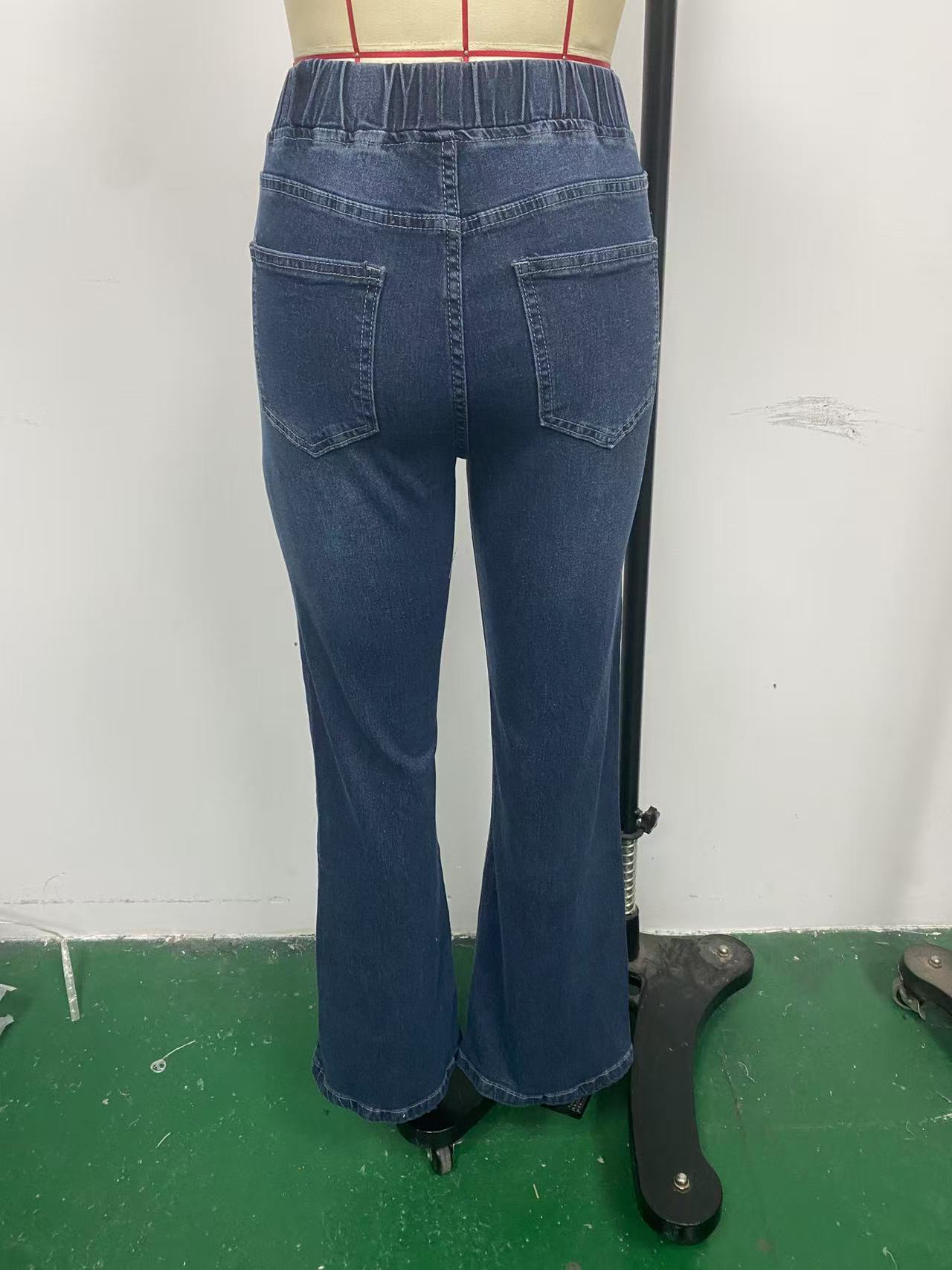 Exclusivo Transfronterizo para Amazon Estación Independiente Jeans de Cintura Elástica de Alta Calidad y Alta Elasticidad para Mujer Pantalones Boot-Cut Ajustados que Levantan los Glúteos