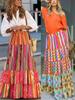 Falda larga con volantes y estampado de celebridades de Internet de Amazon para mujer, otoño 2024, transfronteriza europea y americana