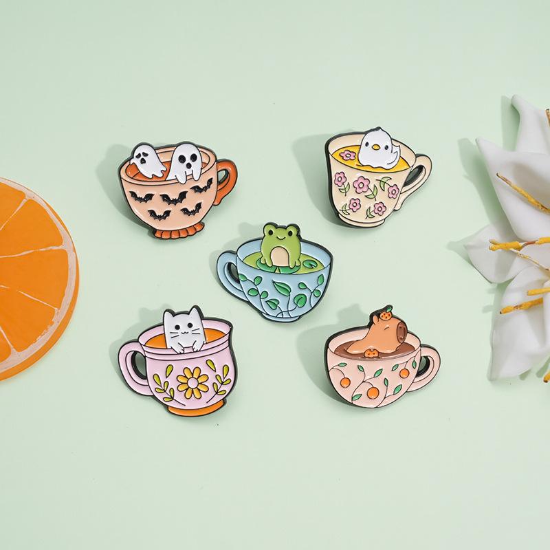 Nuevo broche divertido y divertido de dibujos animados con diseño de rana, gato y capibara, personalizado, estilo divertido