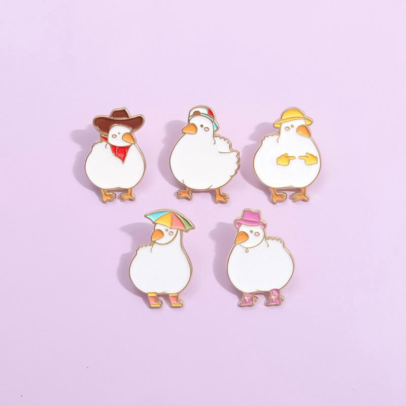 Broche de metal con forma de pato gordo blanco pequeño con forma de dibujos animados japoneses, bonito accesorio creativo