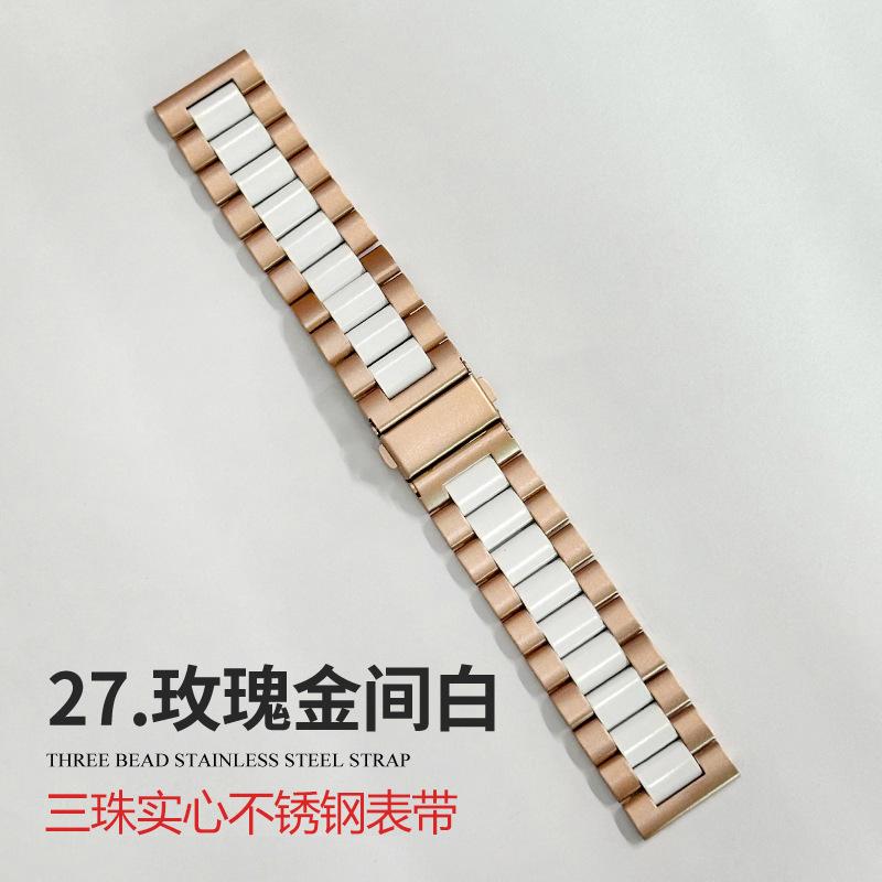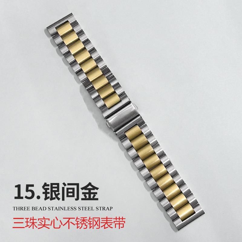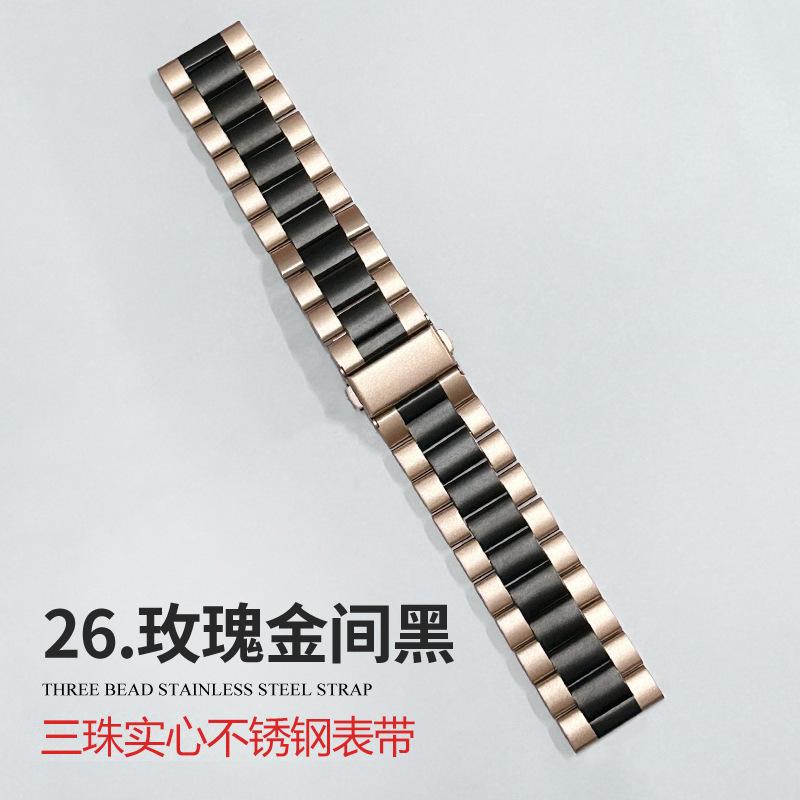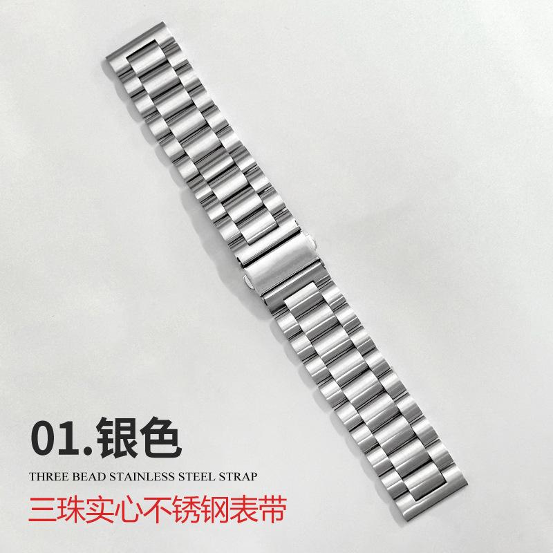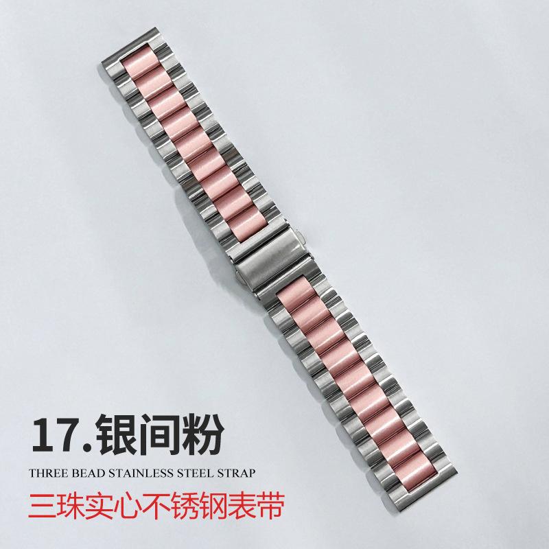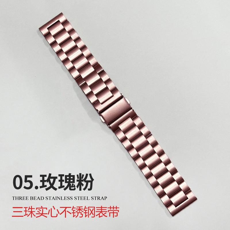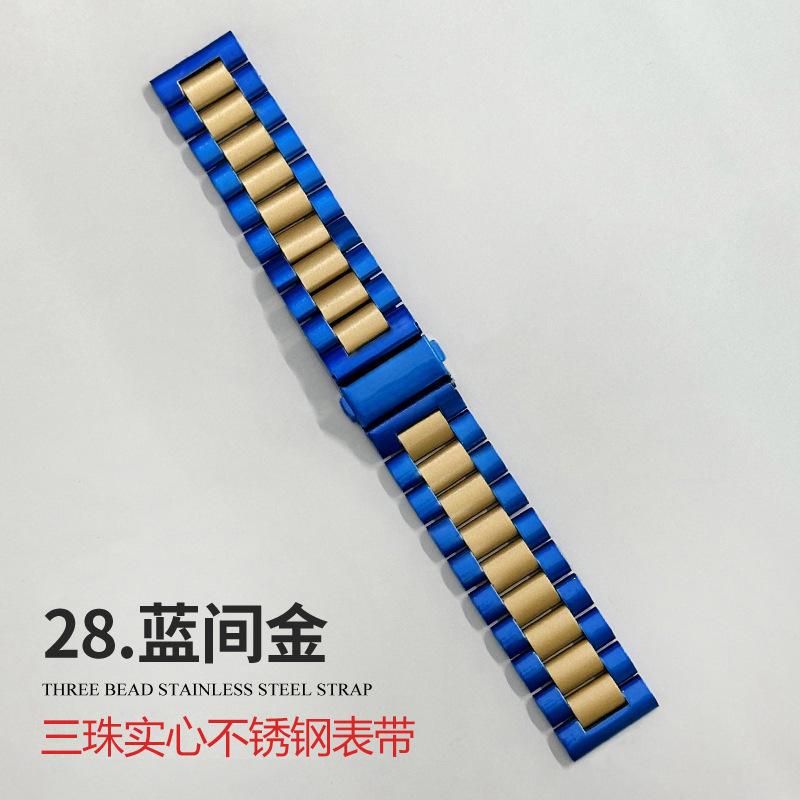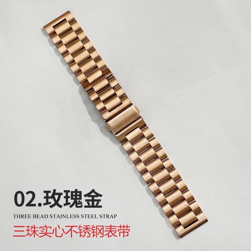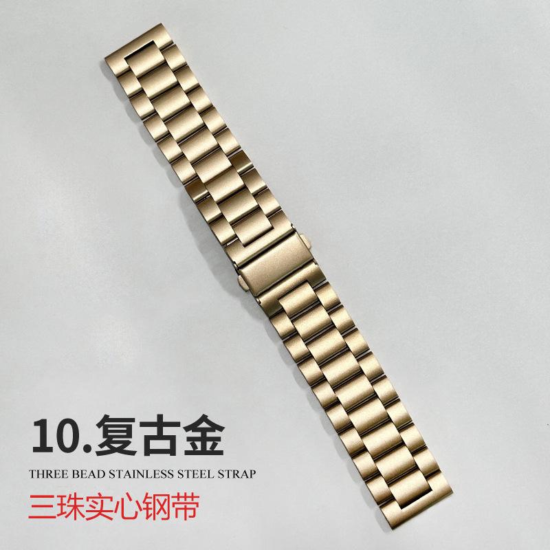 Correa de acero inoxidable macizo de tres cuentas para Apple iWatch, compatible con Samsung y Huawei GT.